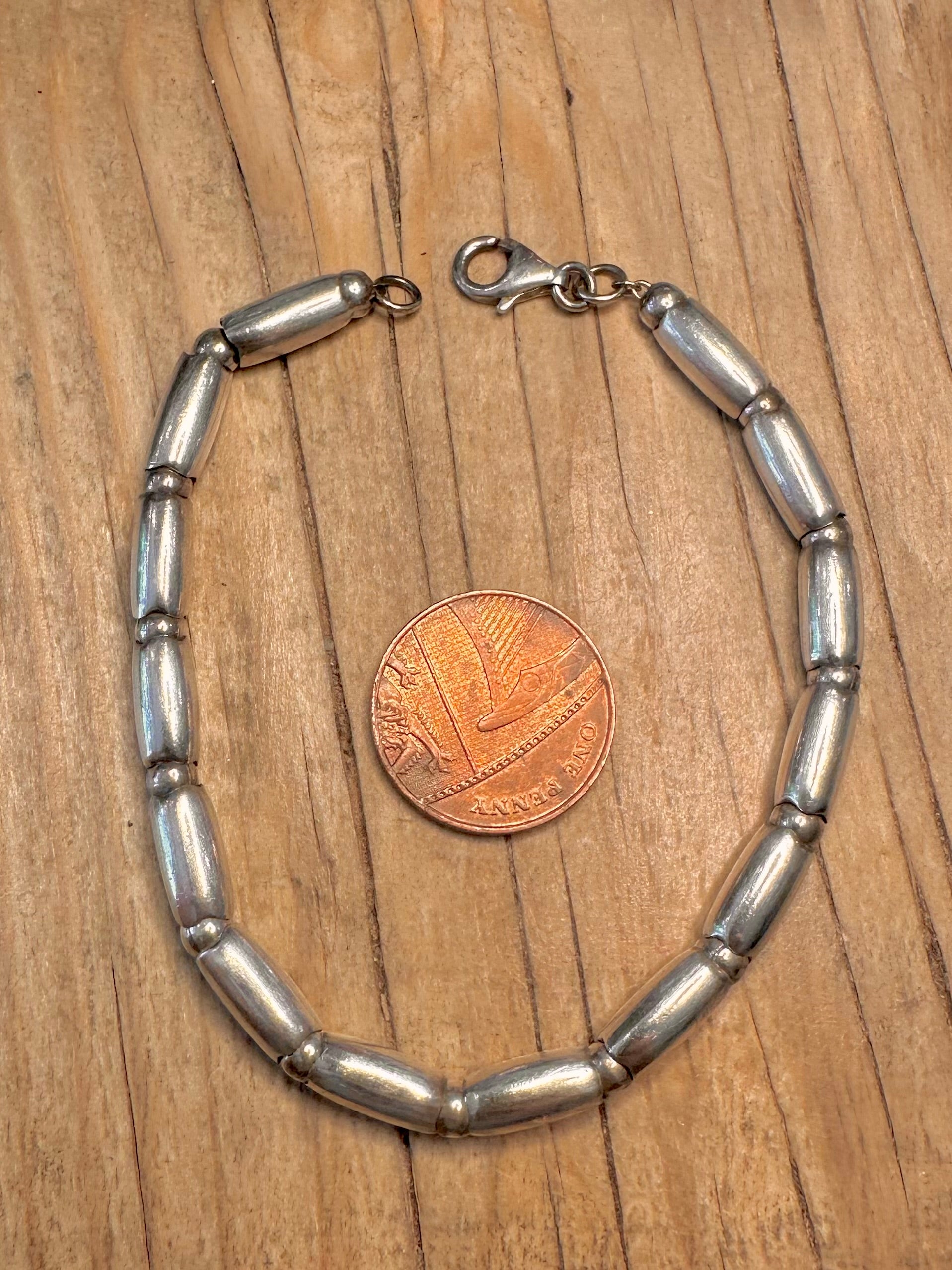 Abstract Pipe Bead Chain 925 Sterling Silver 7.8 Inch Bracelet