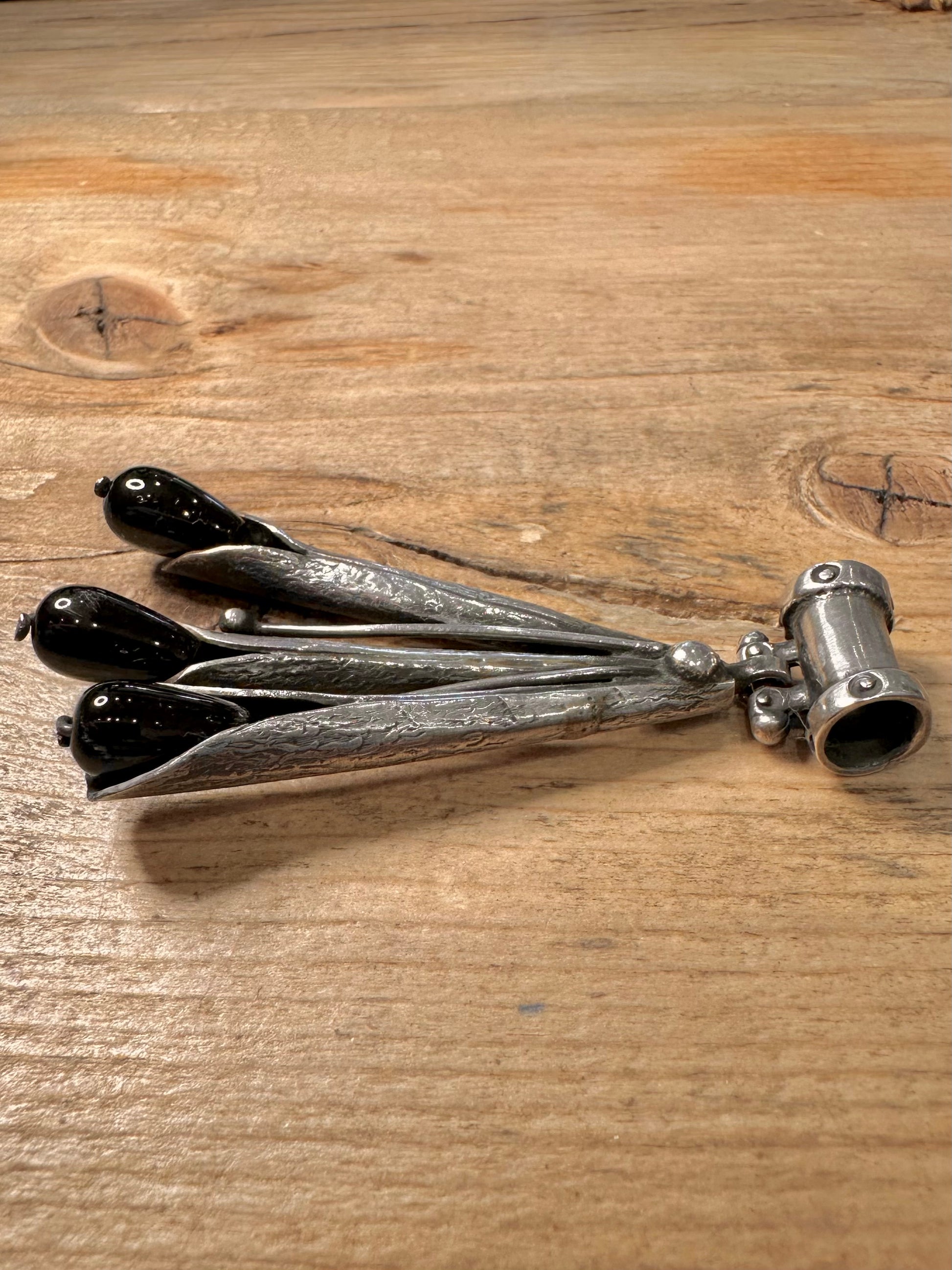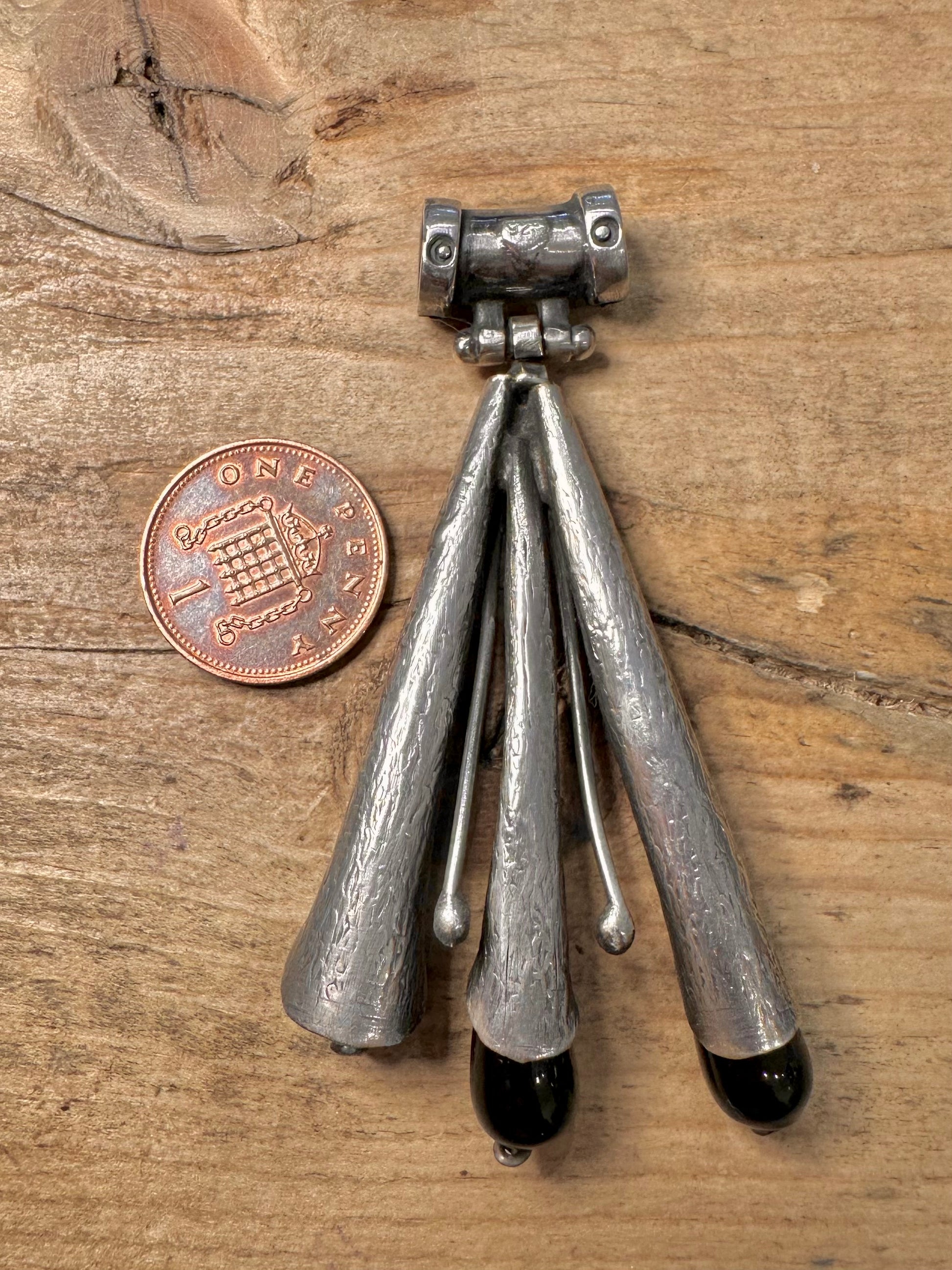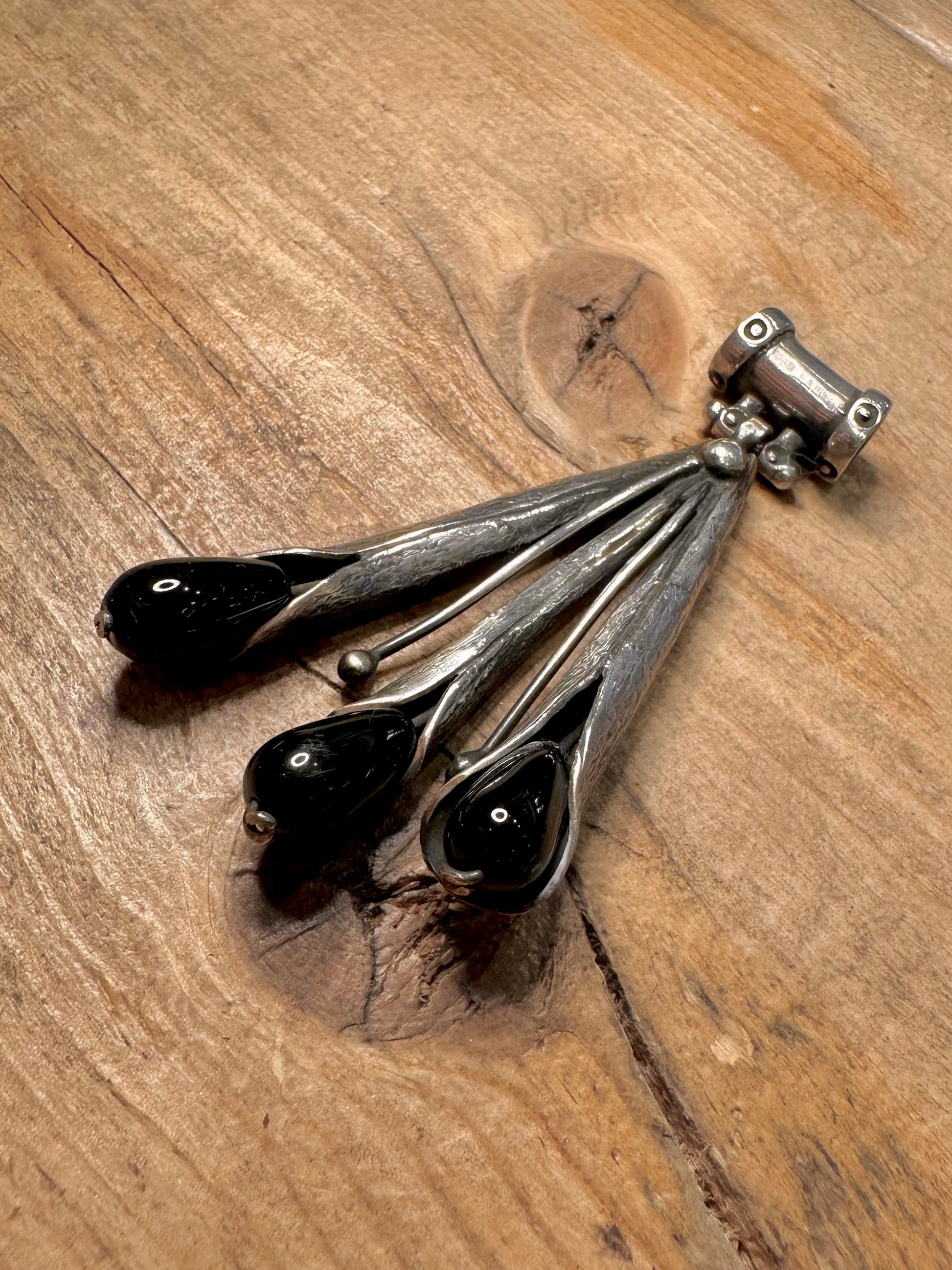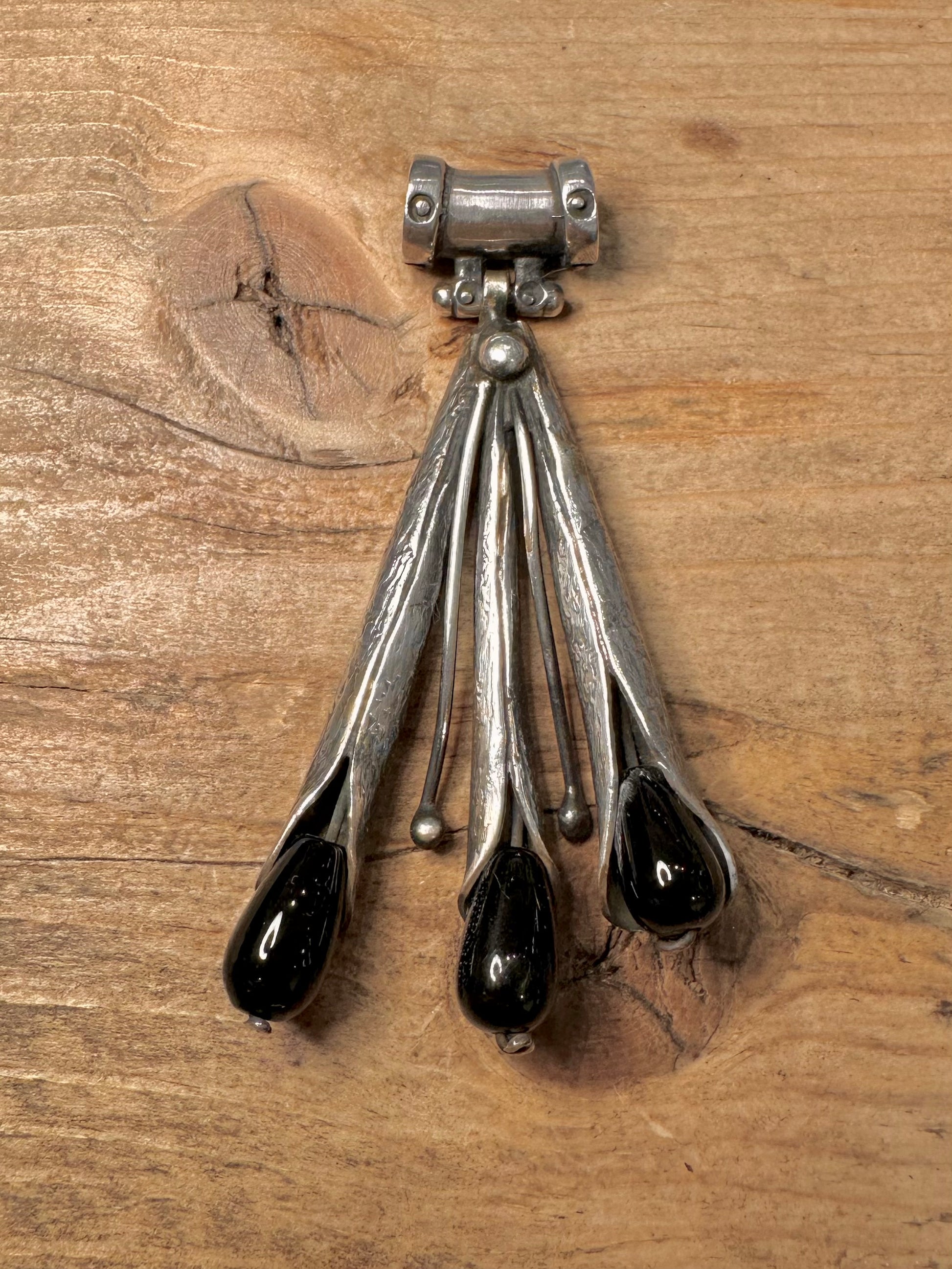 Abstract Plant Style Black Stone 925 Silver Pendant