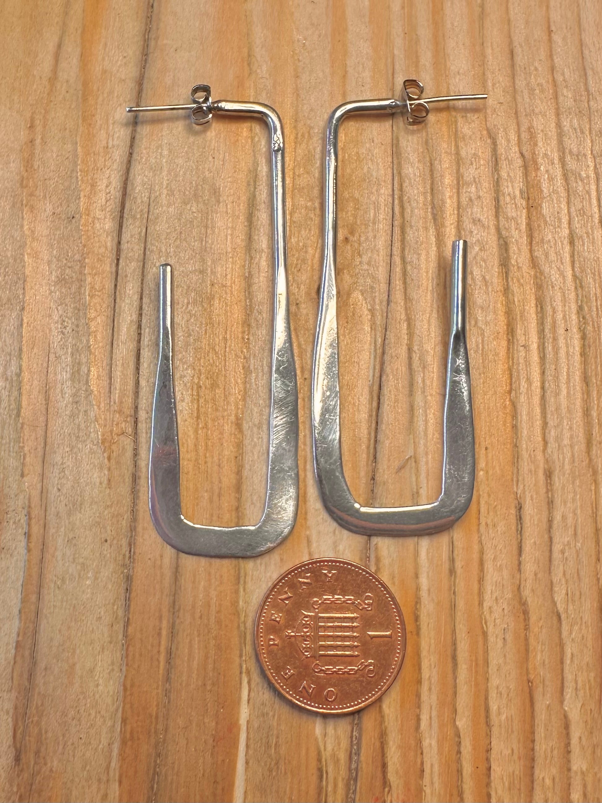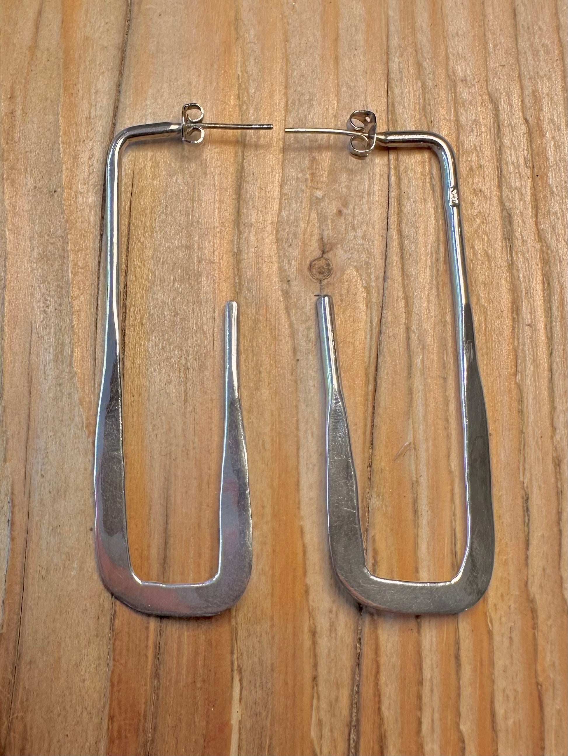 Abstract Rectangle Hoop 925 Sterling Silver Earrings