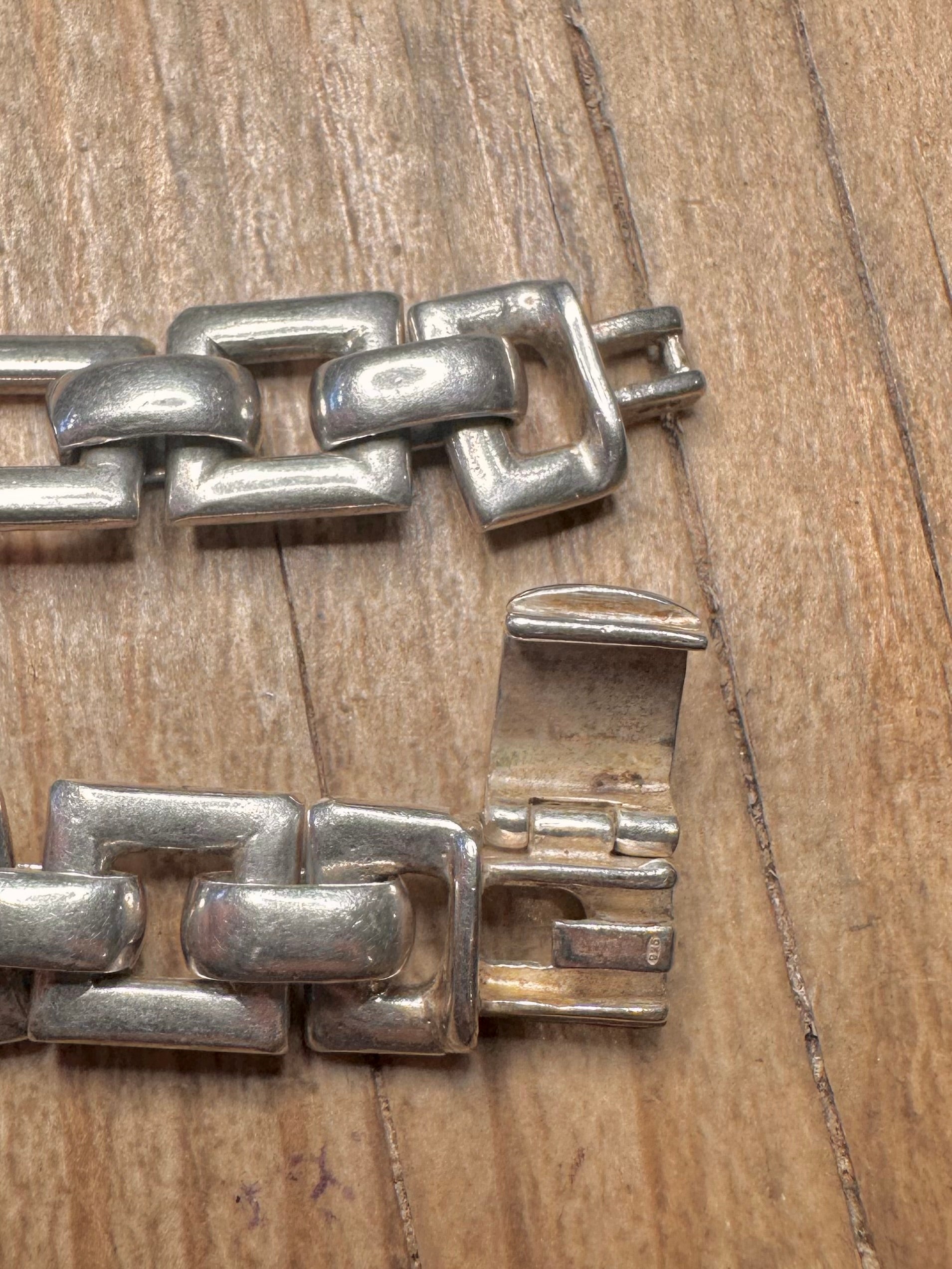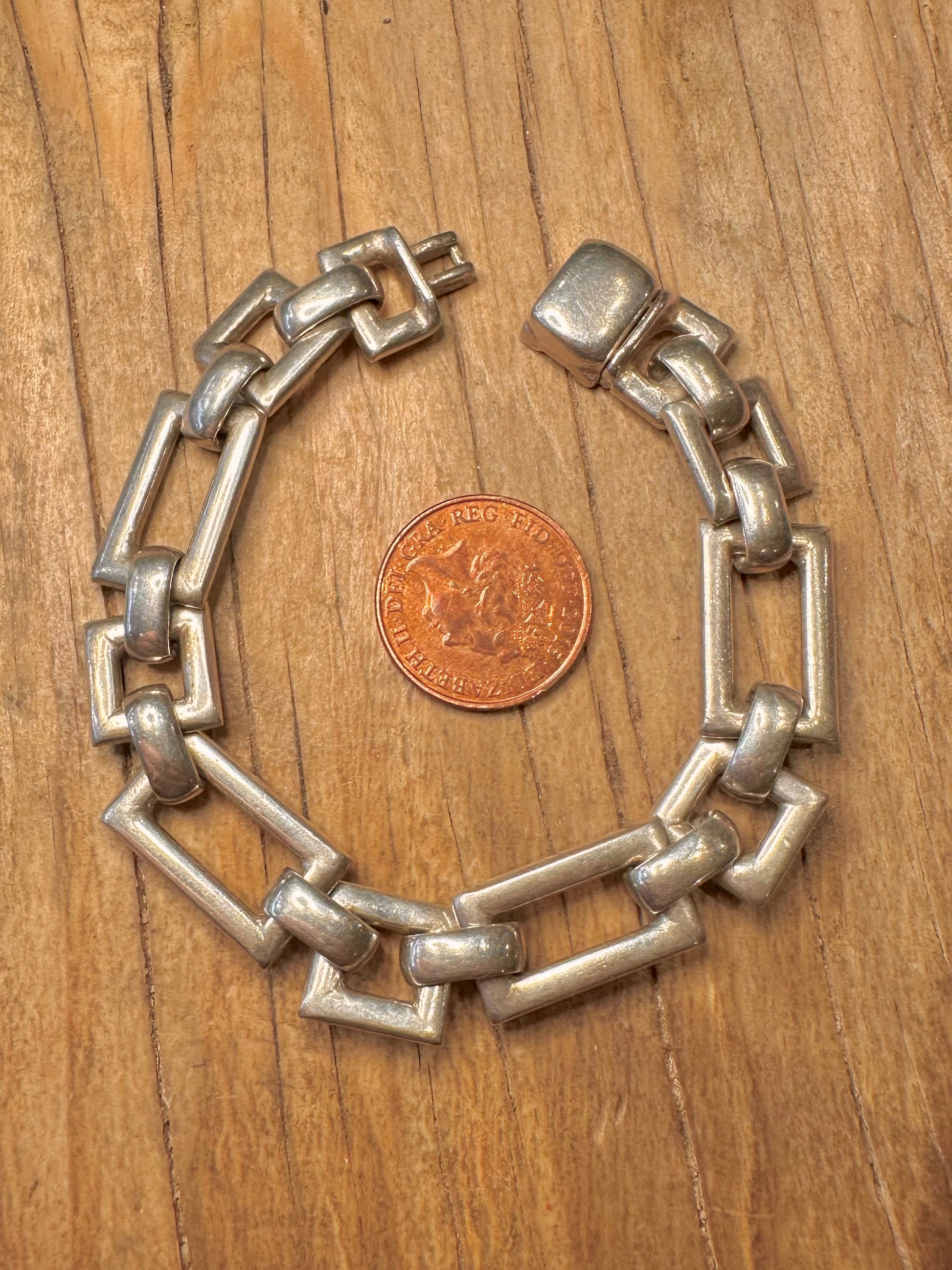 Abstract Square and Rectangle Heavy Link 925 Sterling Silver 7 inch Bracelet