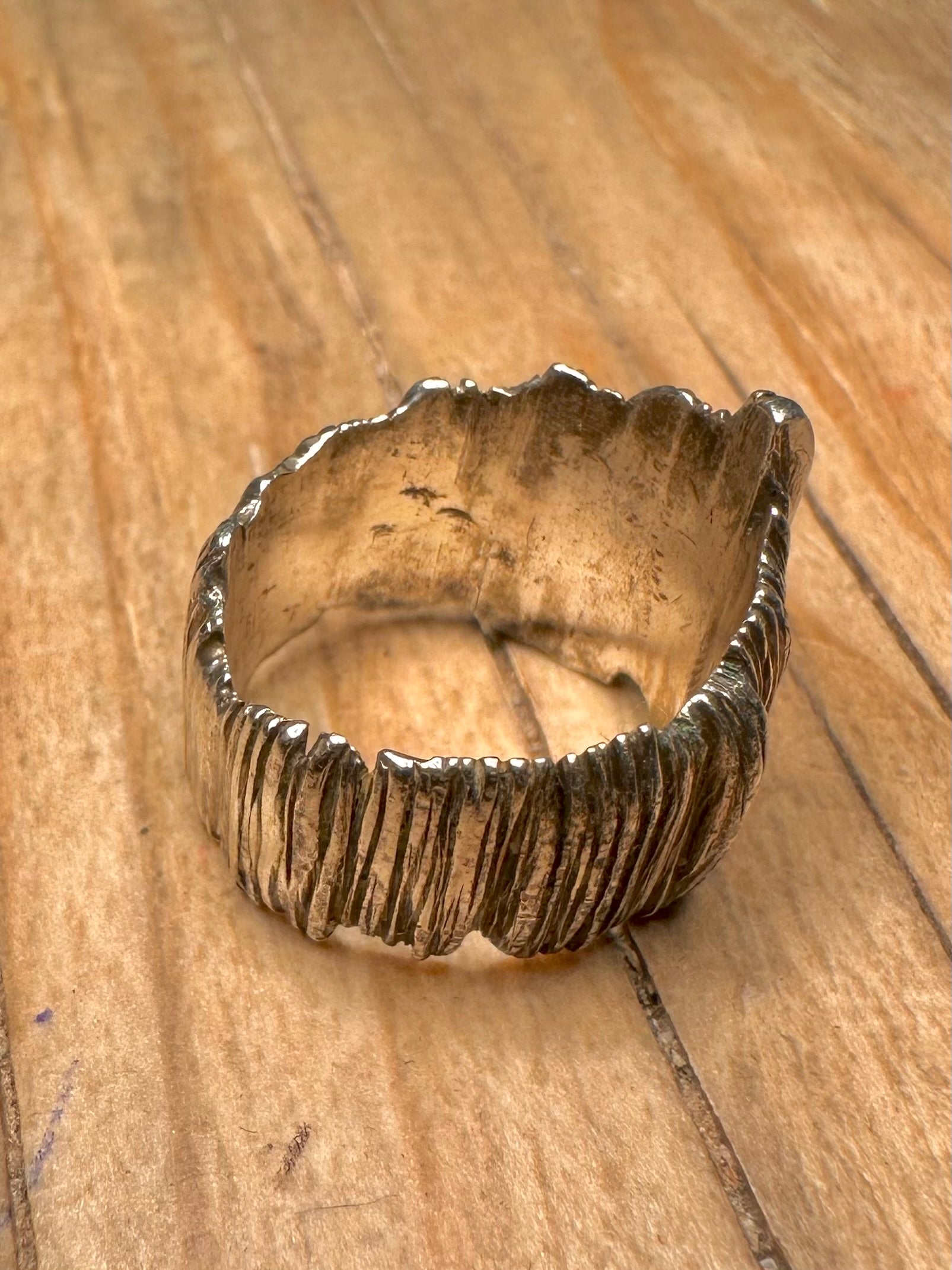 Brutalist Textured 925 Sterling Silver Size j1/2 Ring