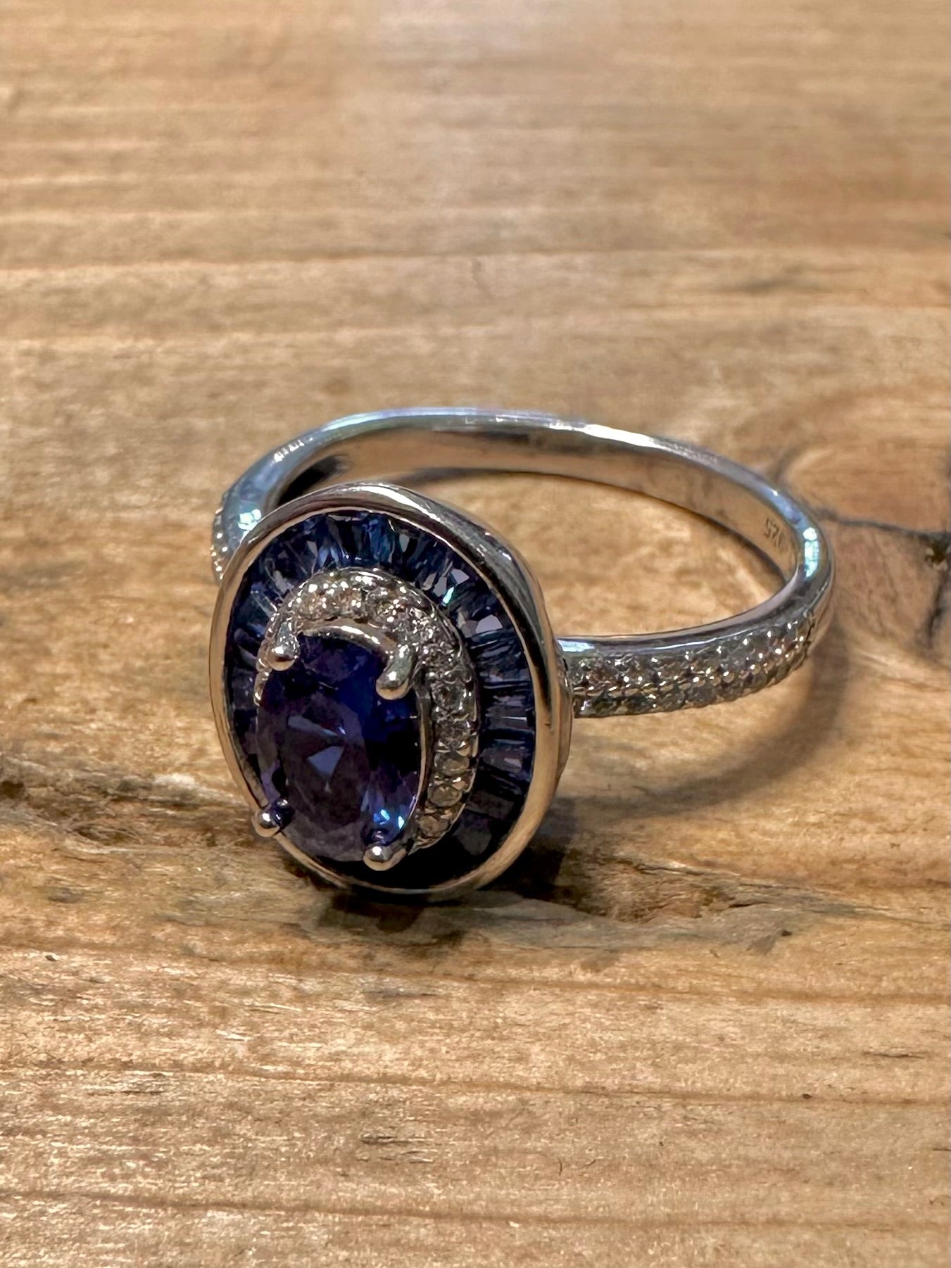 Modern Blue and White Stones 925 Silver Size Q Ring