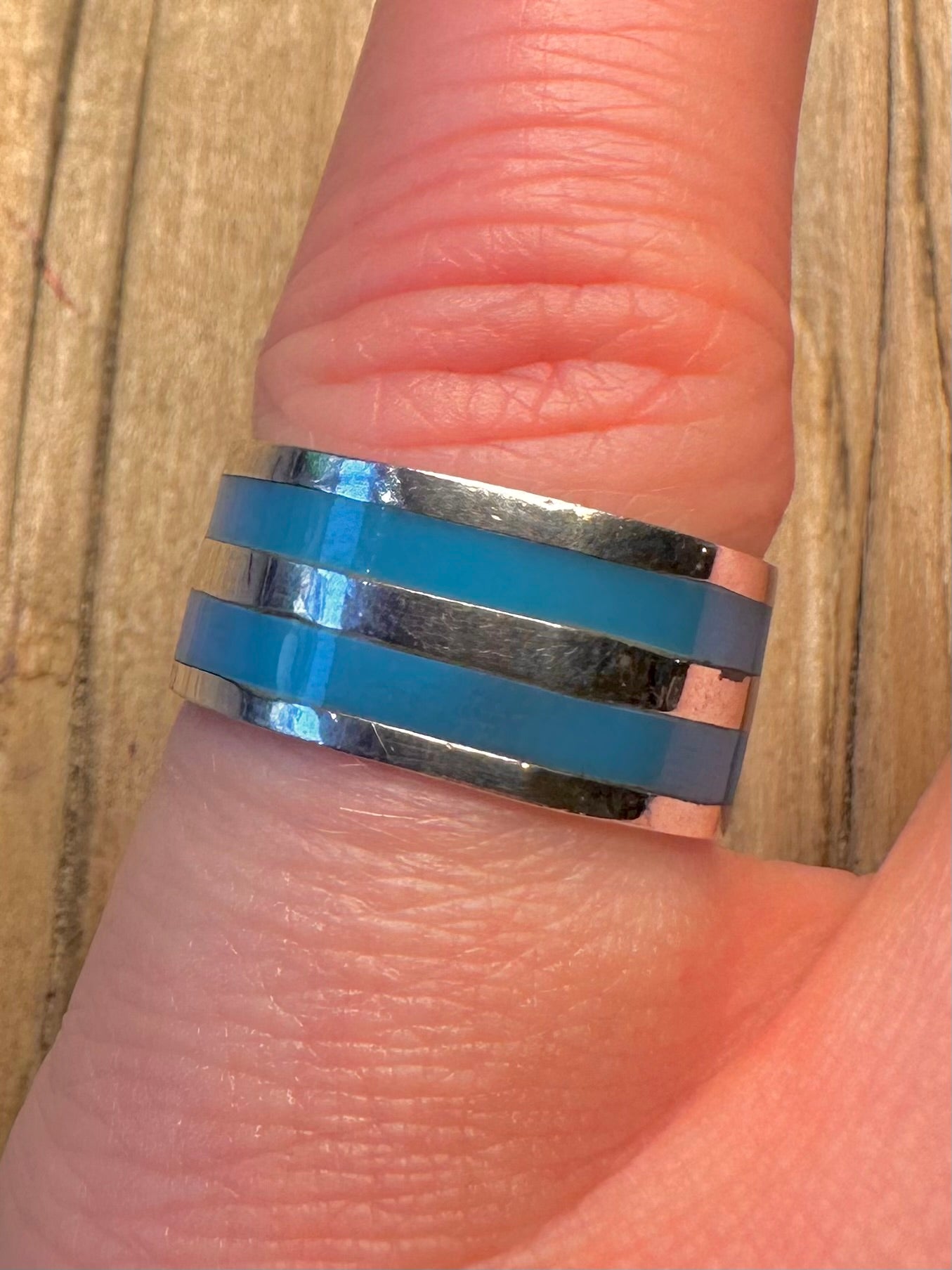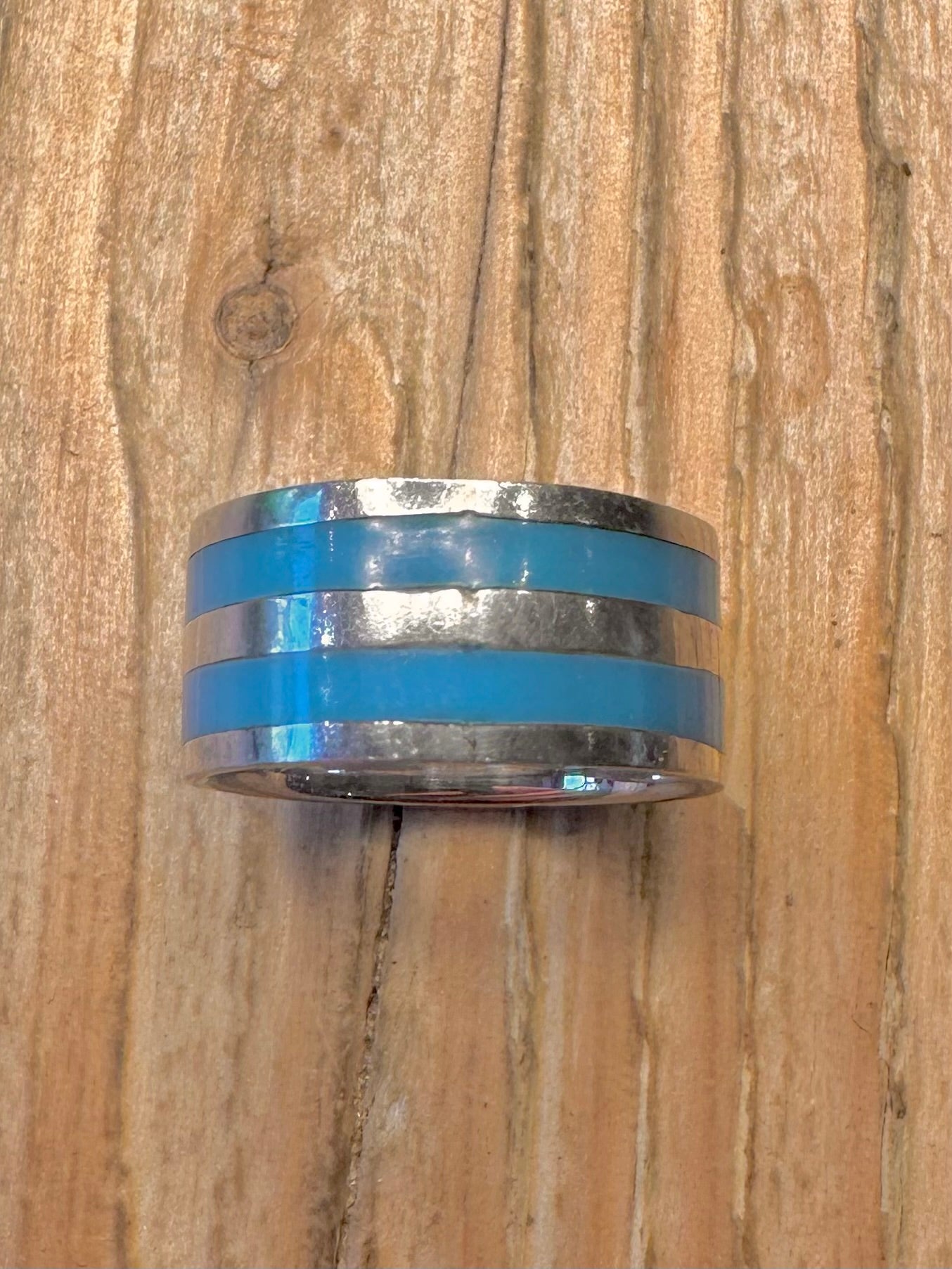 Modern Blue Stripe Inlay 925 Sterling Silver Size K1/2 Ring