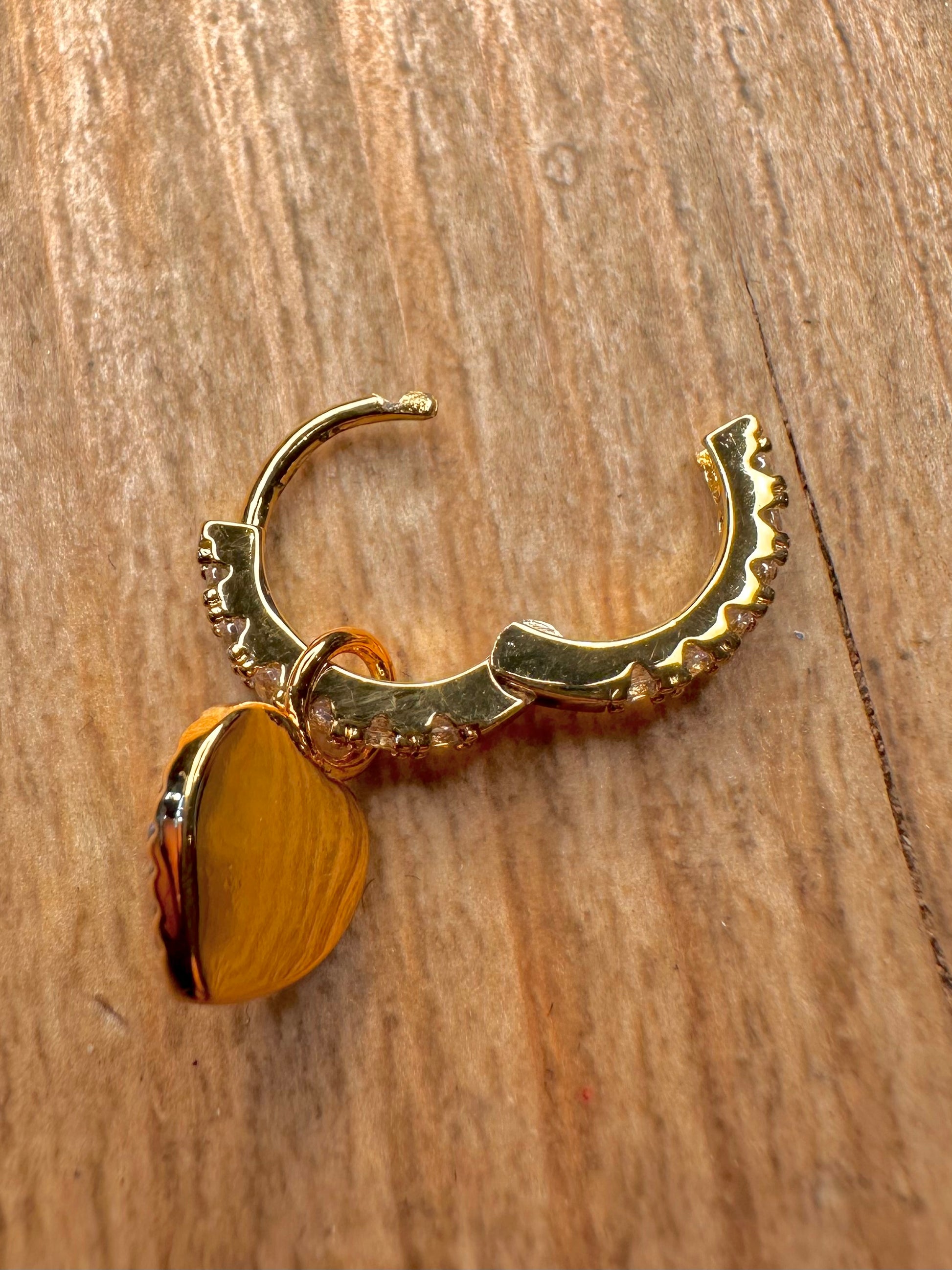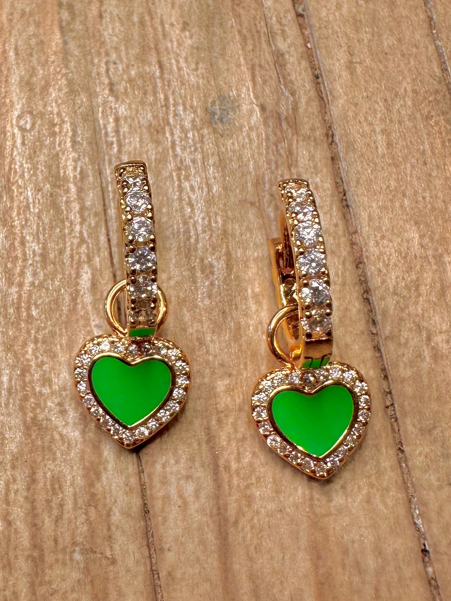 Modern CZ Stone and Green Heart Gold on 925 Sterling Silver Earrings