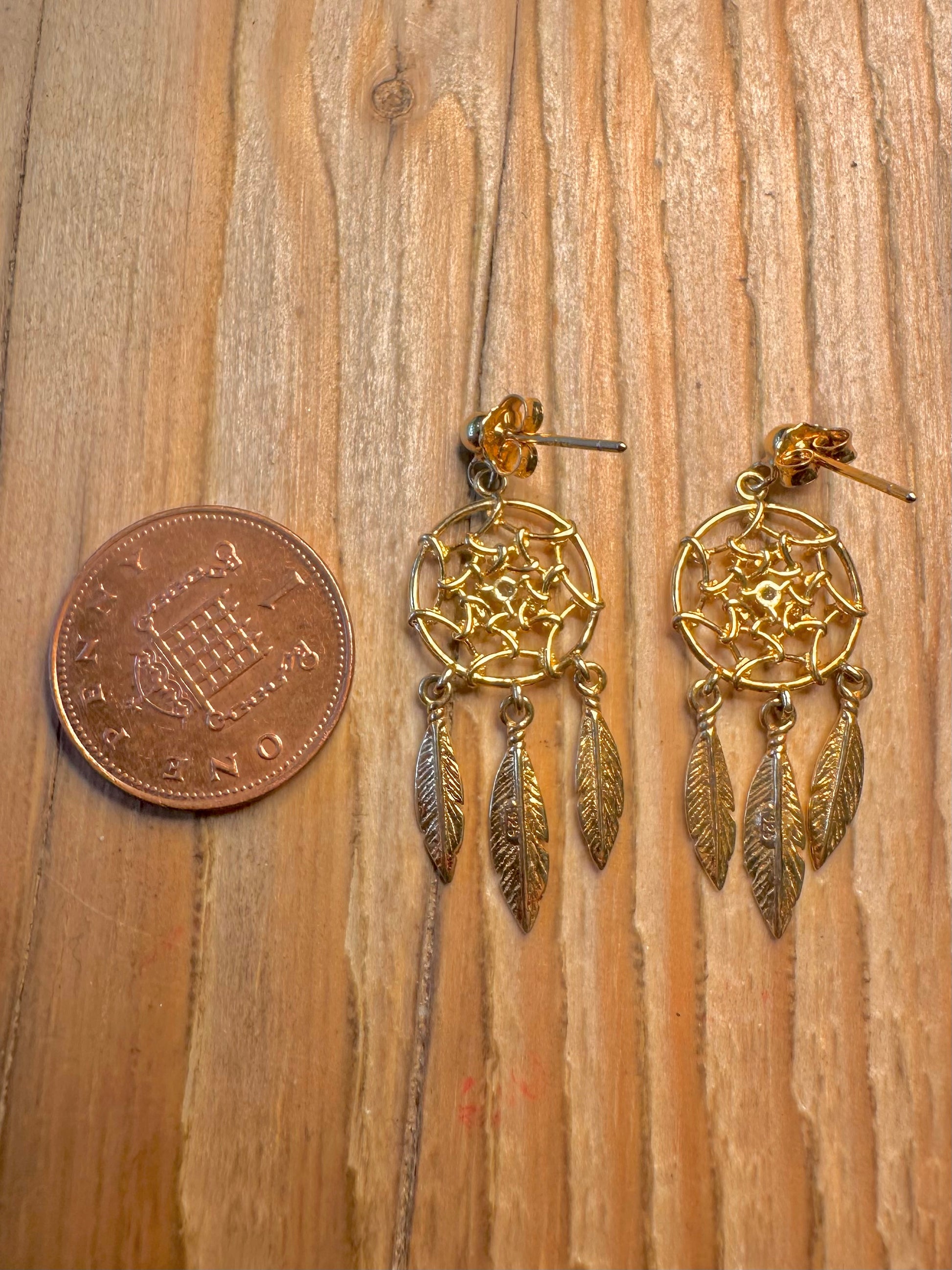 Modern Dream Catcher Gold 925 Sterling Earrings