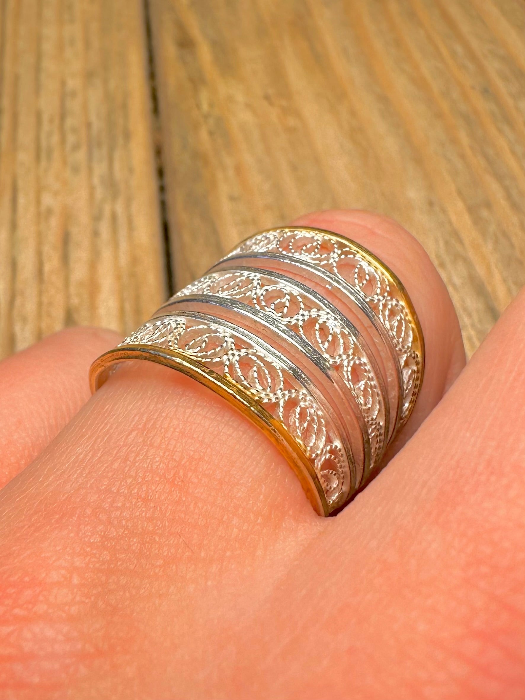 Modern Filigree Gold and 925 Sterling Silver Size O Ring