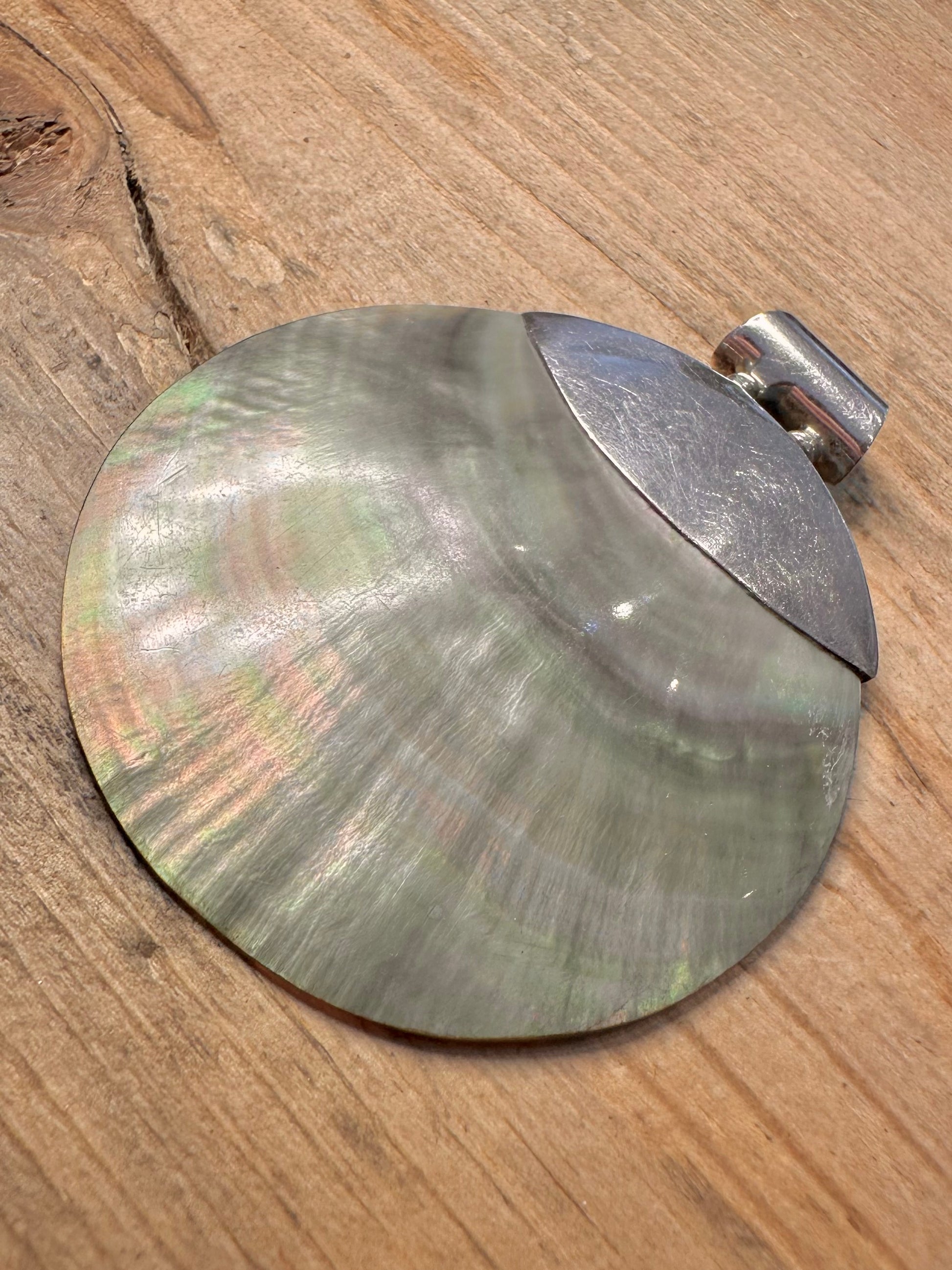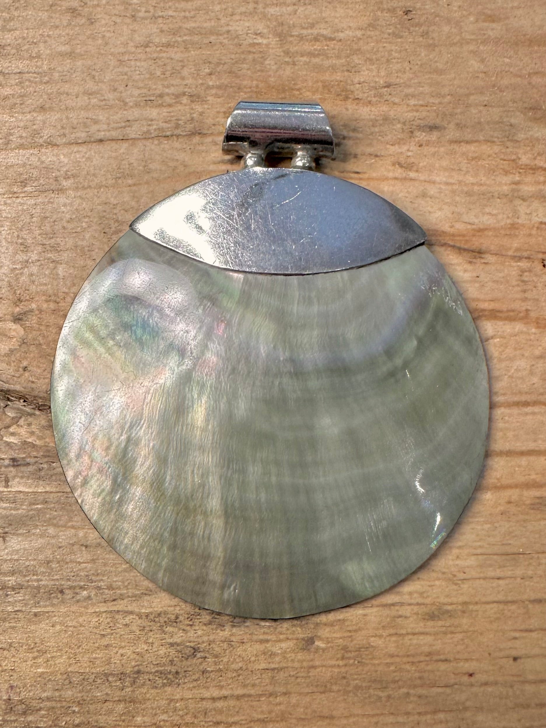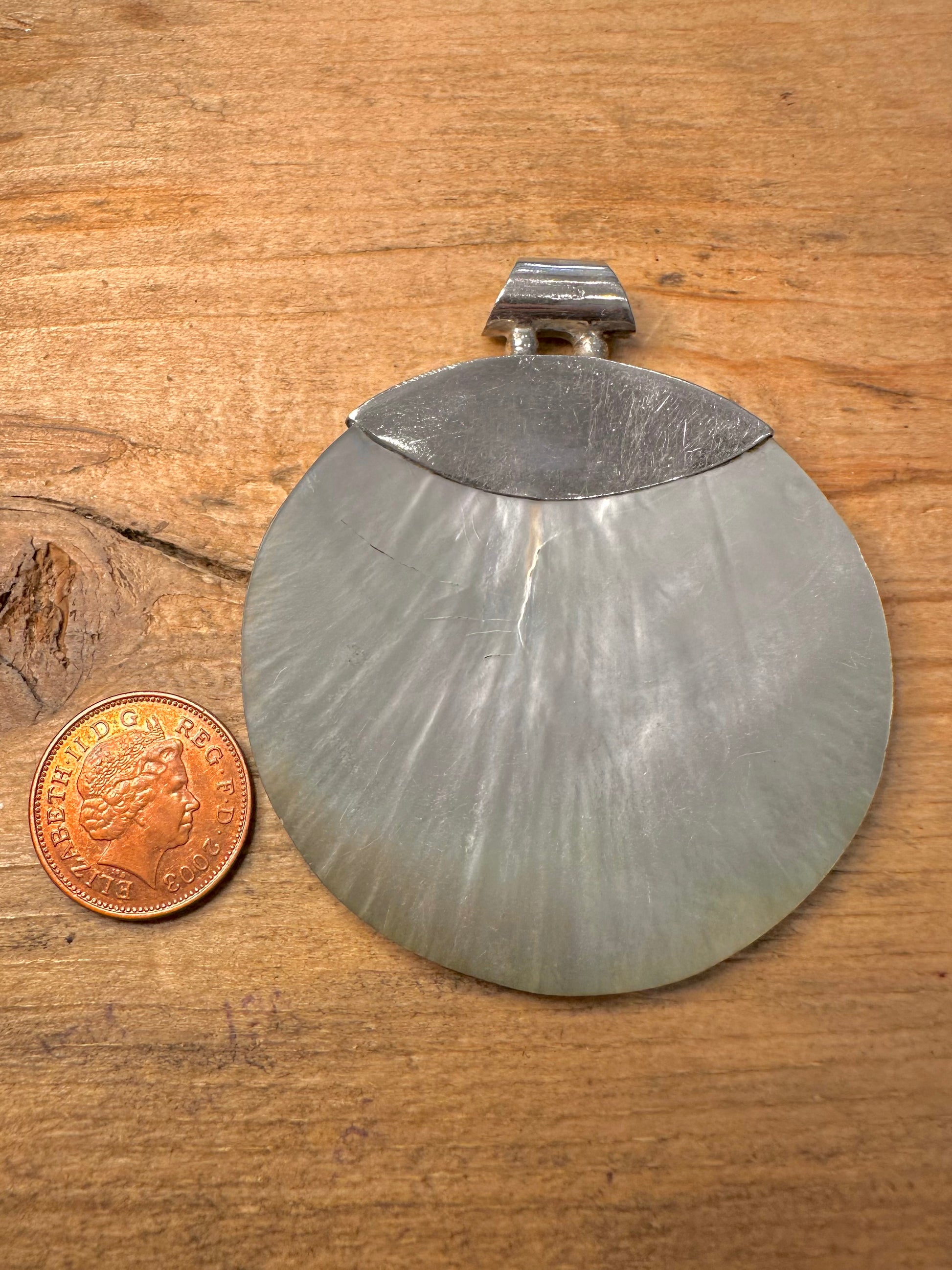 Modern Large Circle Mother of Pearl 925 Silver Pendant