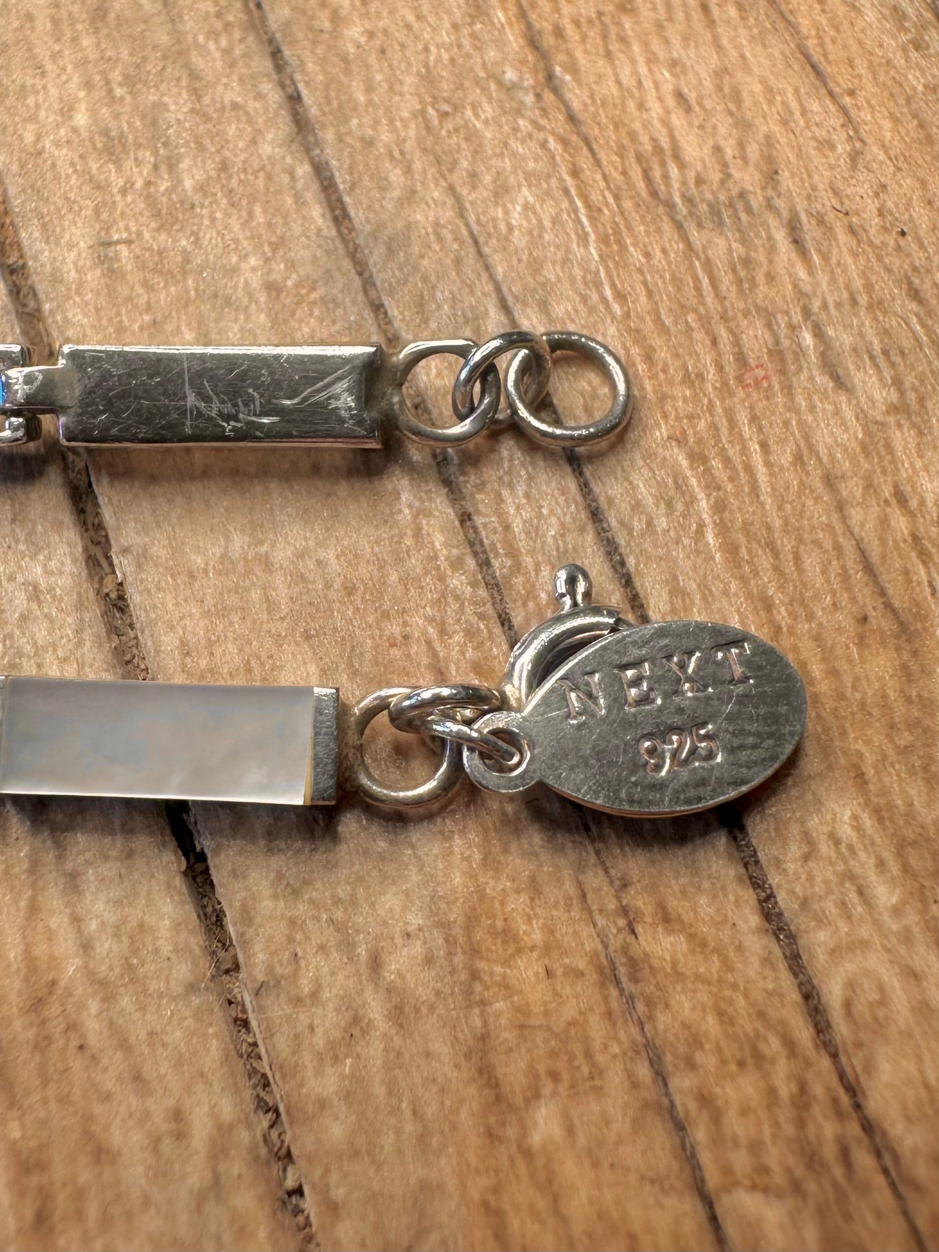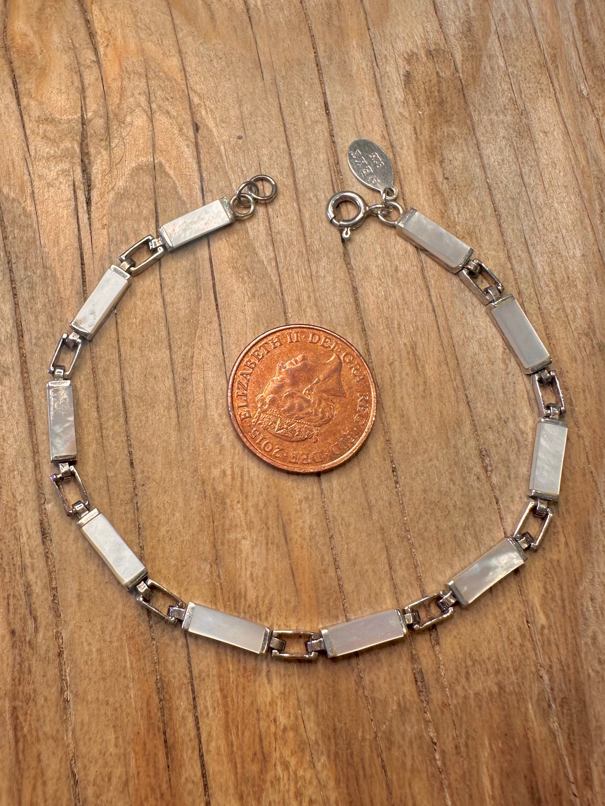 Modern Mother of Pearl Tennis 925 Sterling Silver 7.5 inch Bracelet