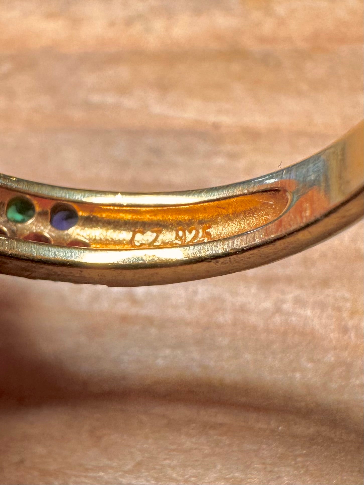 Modern Multi Coloured CZ Gold Tone 925 Sterling Silver Size Q Ring