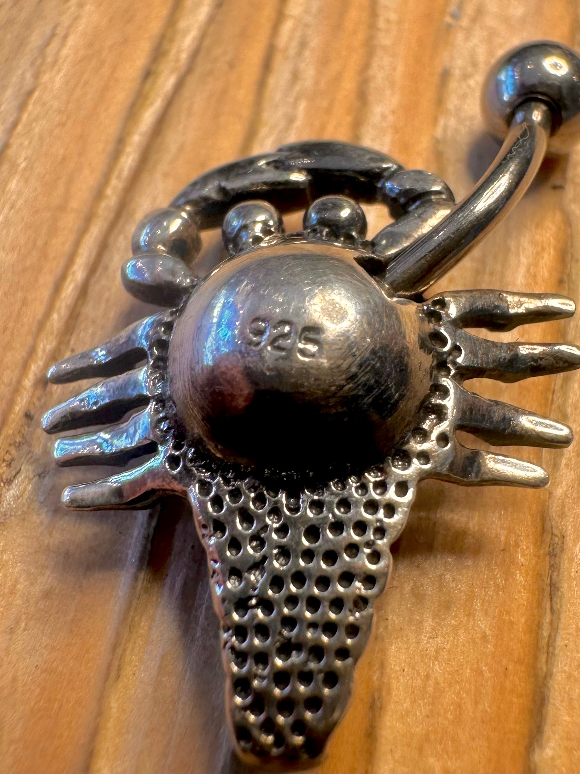 Modern Scorpion Pink Stone 925 Sterling Silver Belly Bar Body Jewellery