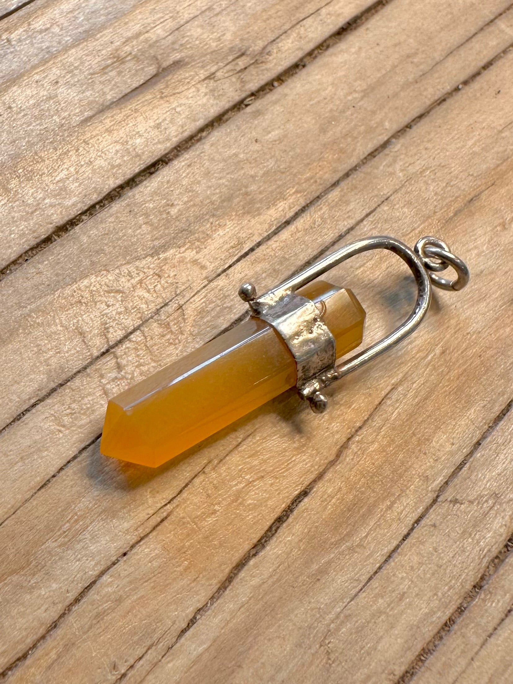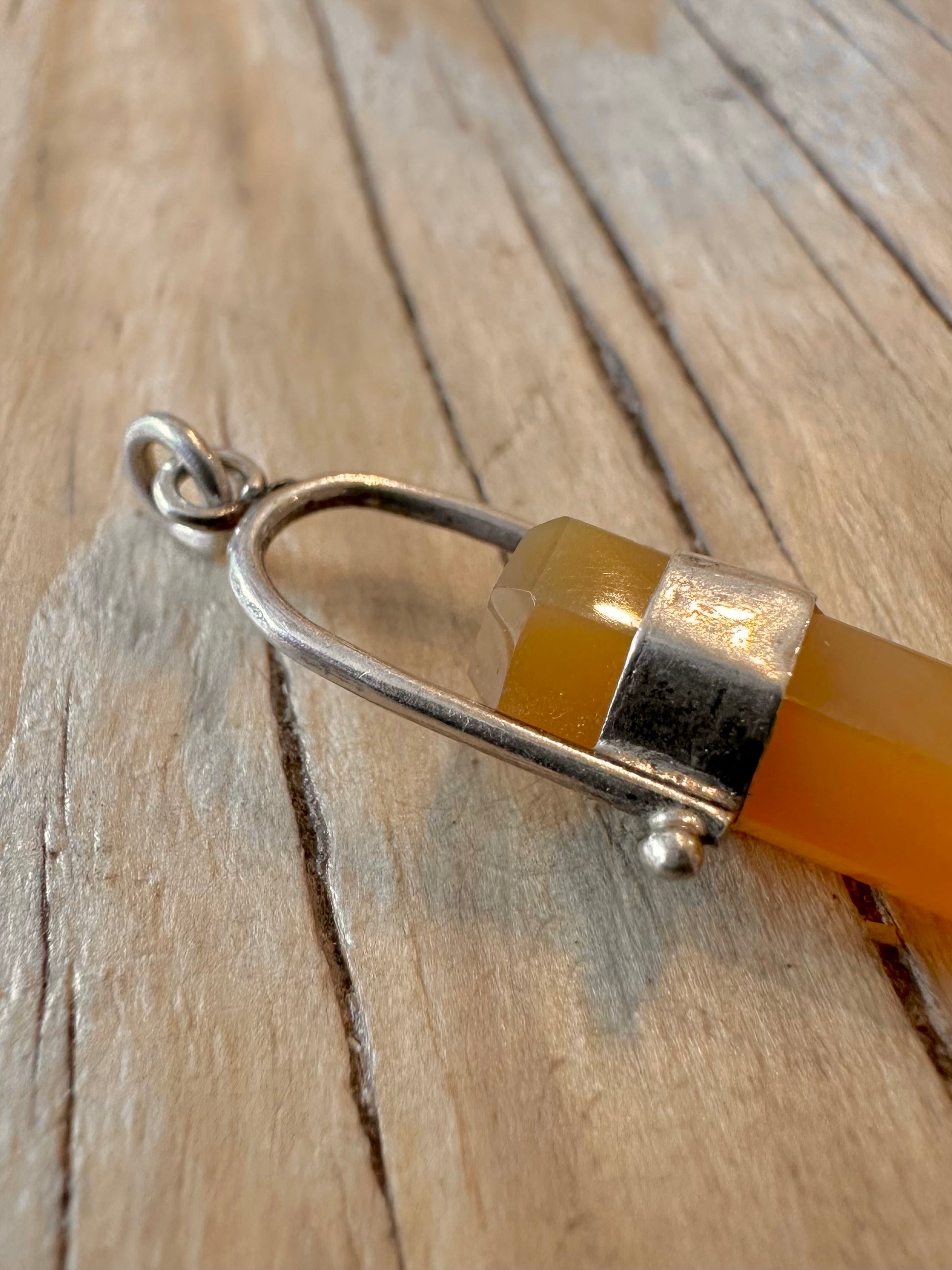 Modern Yellow Quarts Pillar 925 Silver Pendant