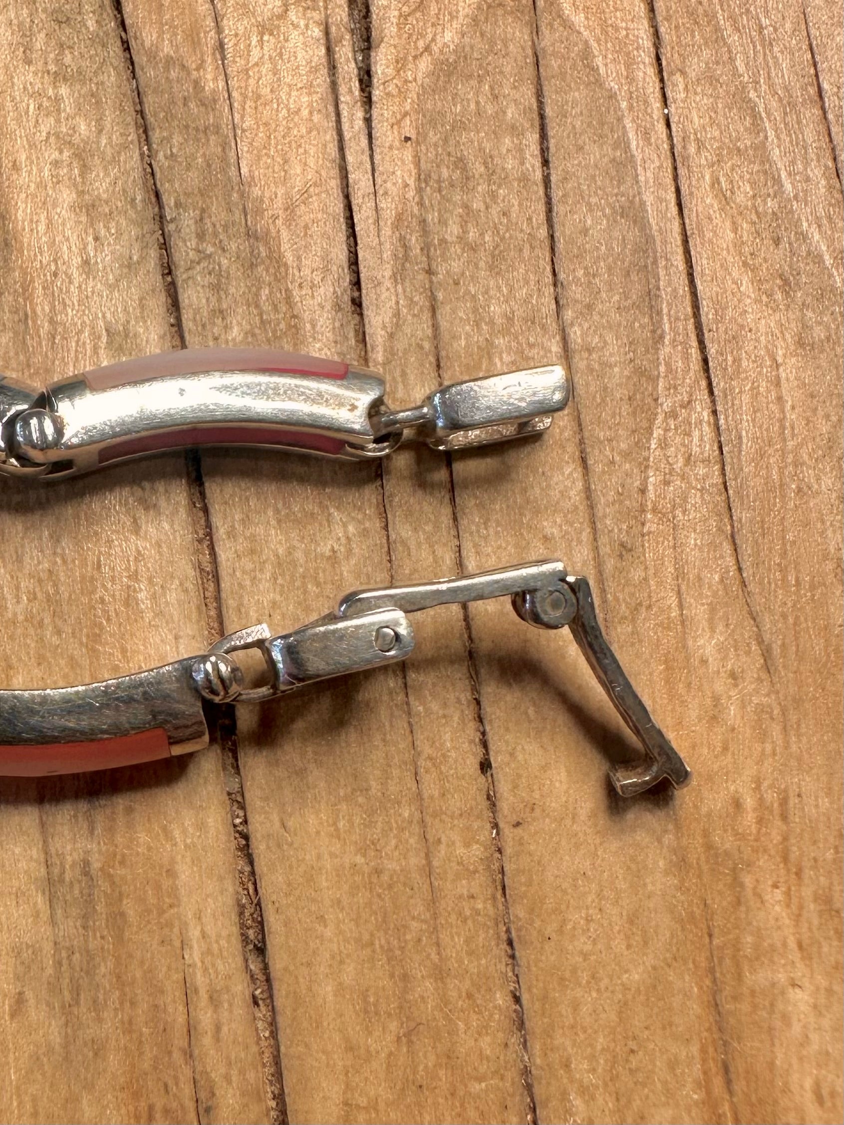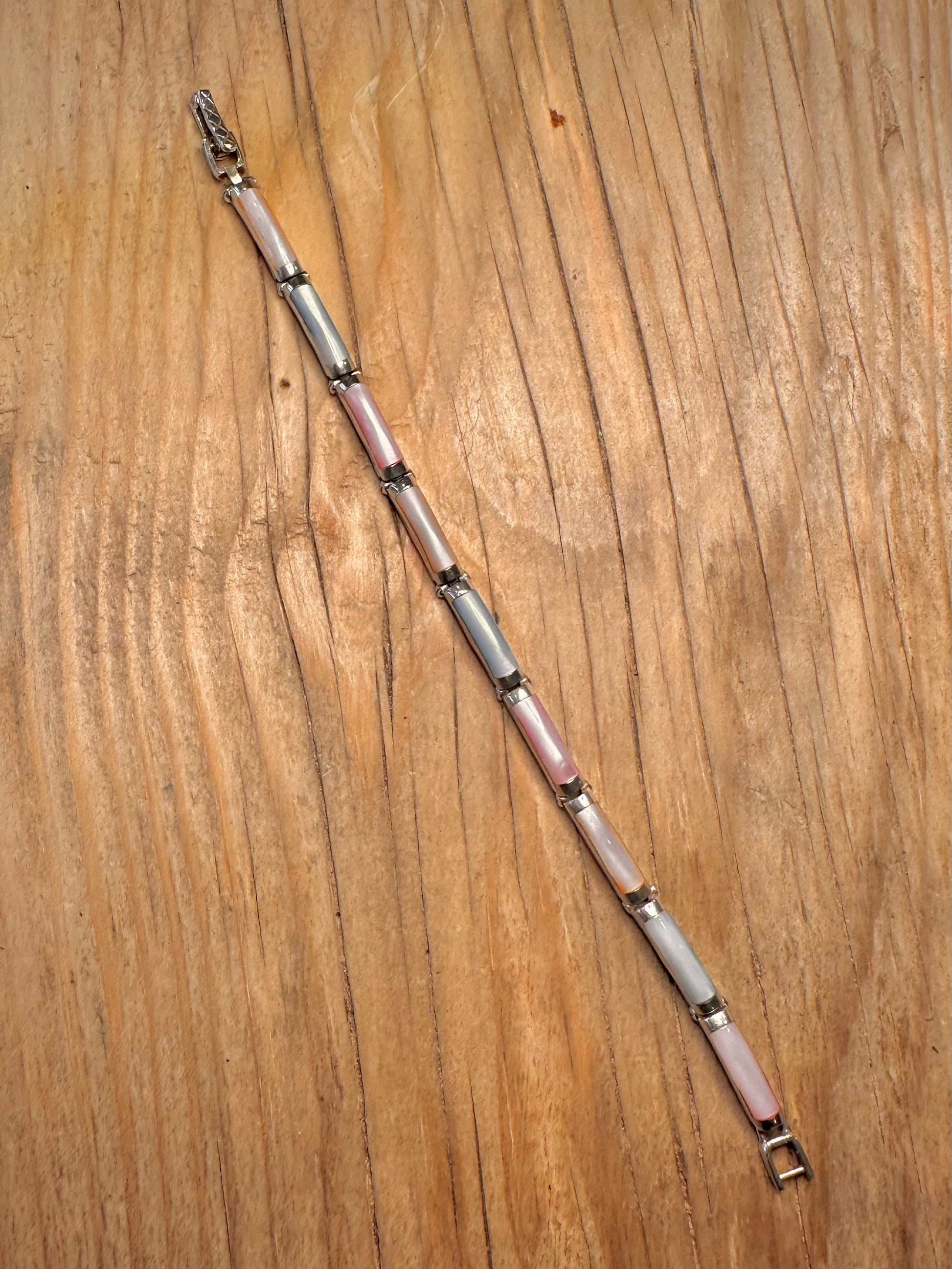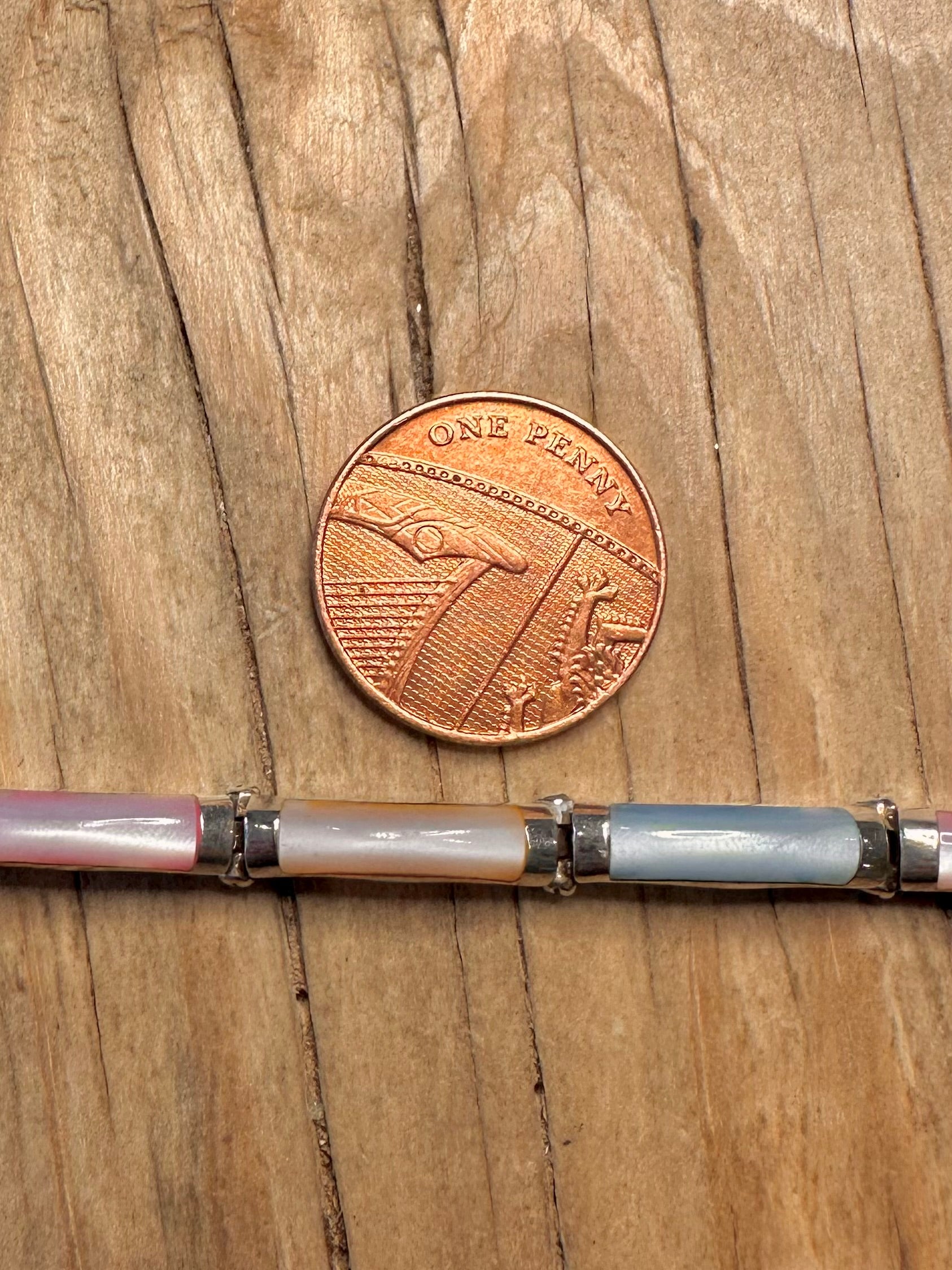 Modernist Coloured Mother of Pearl 925 Sterling Silver 7.2 inch Bracelet