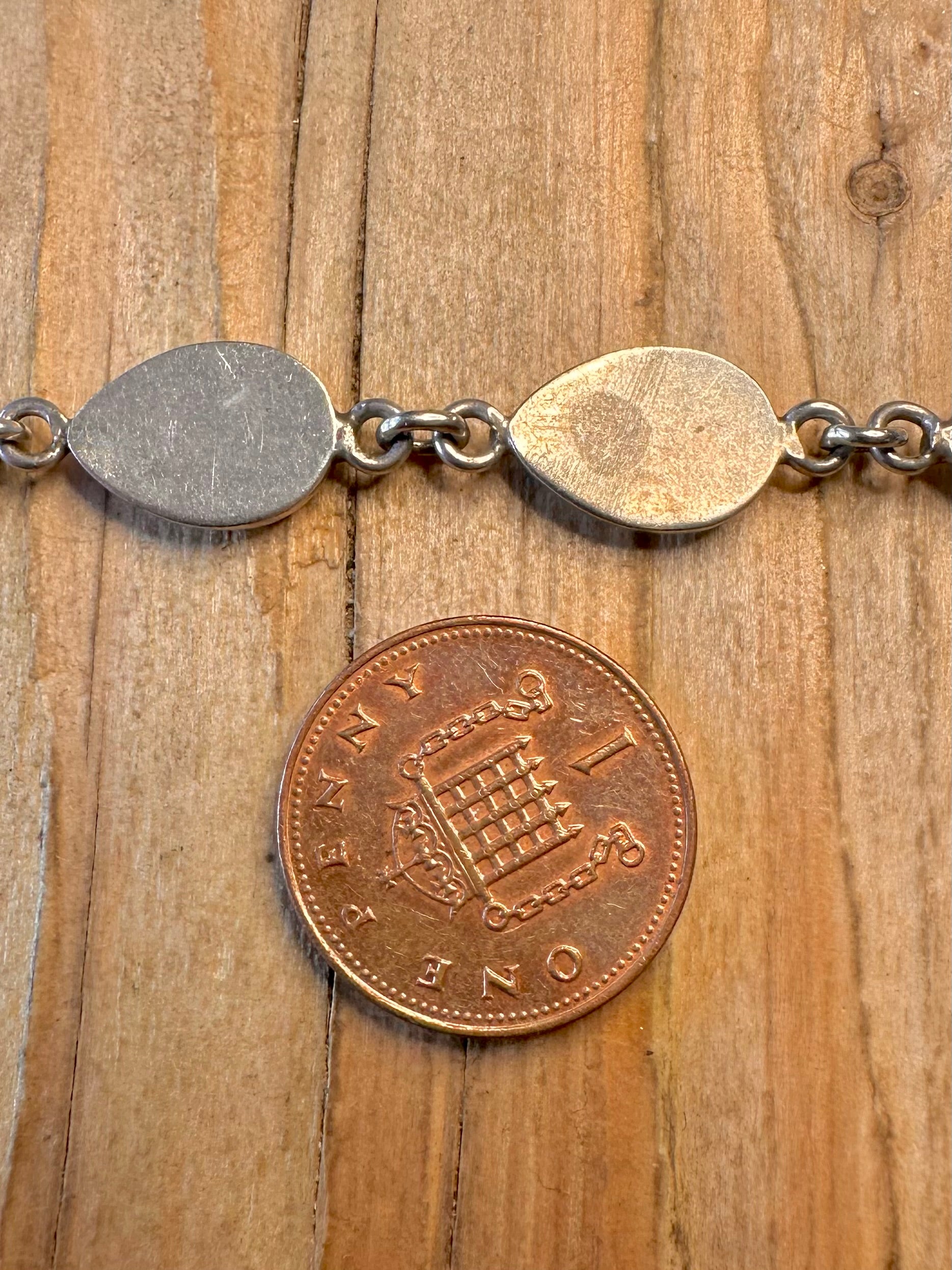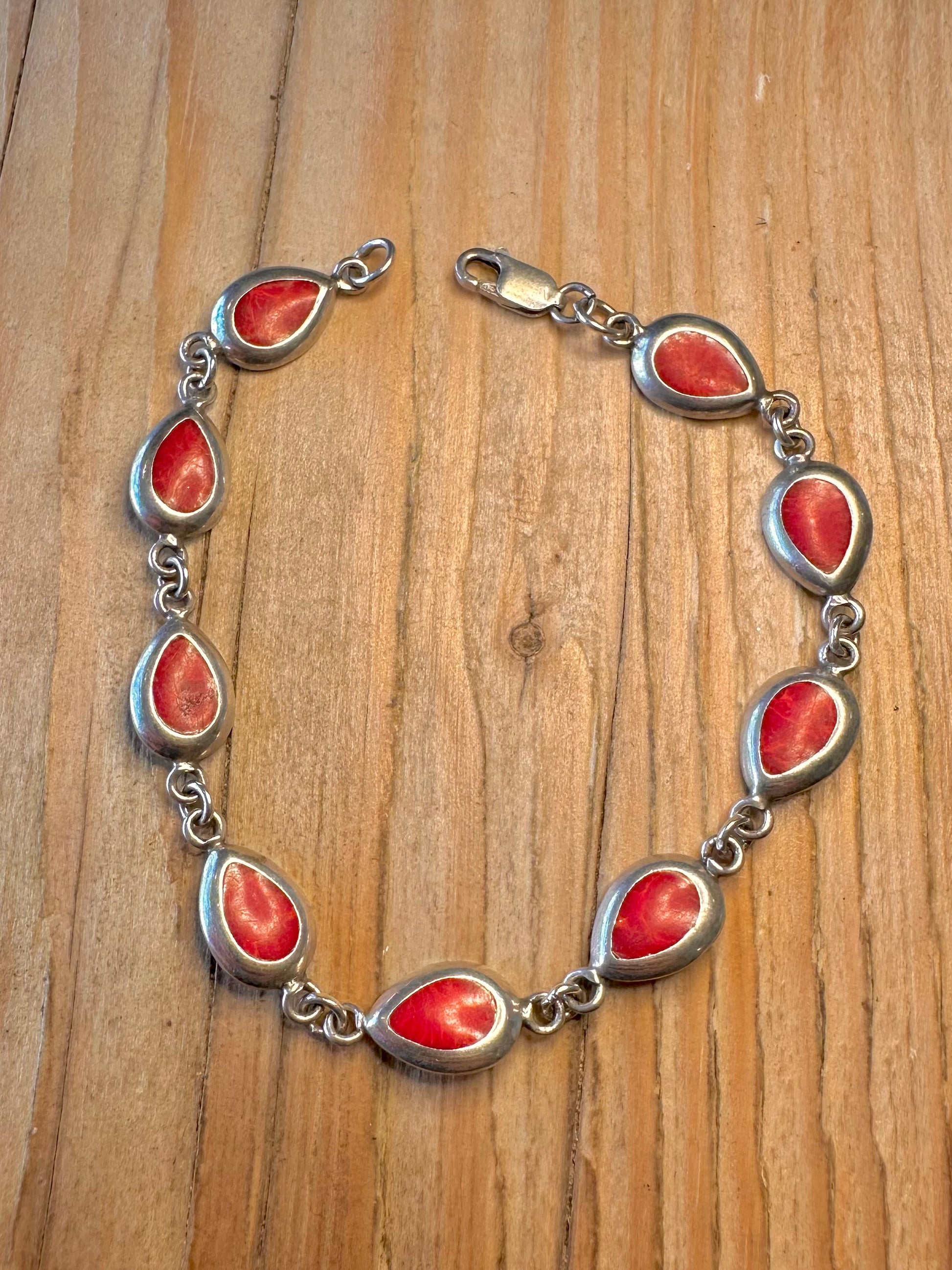 Modernist Coral Teardrop Shape Link 925 Sterling Silver 8.3 inch Bracelet