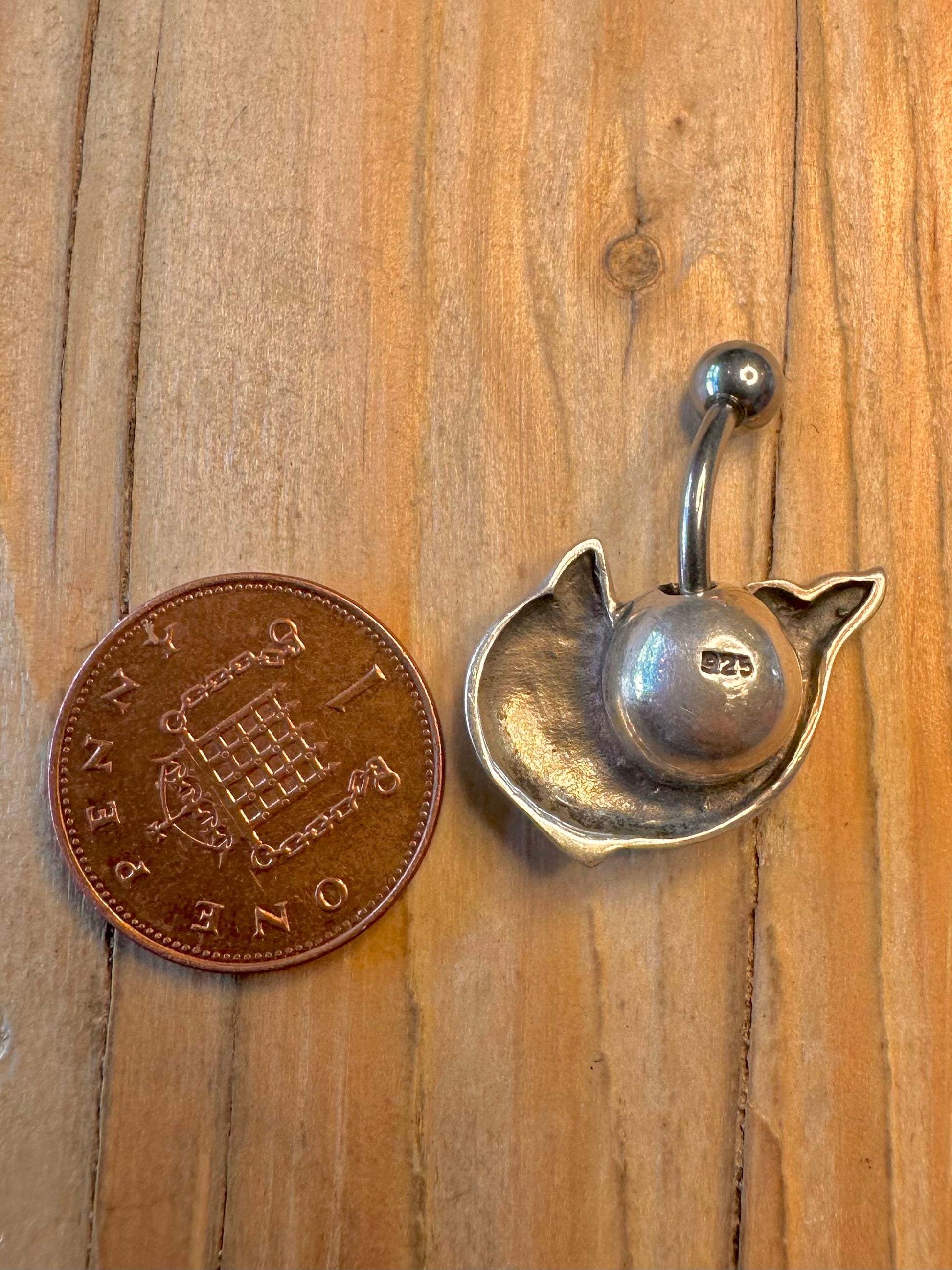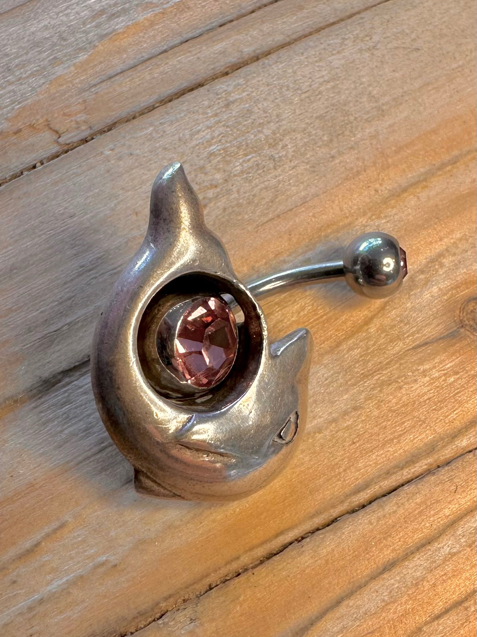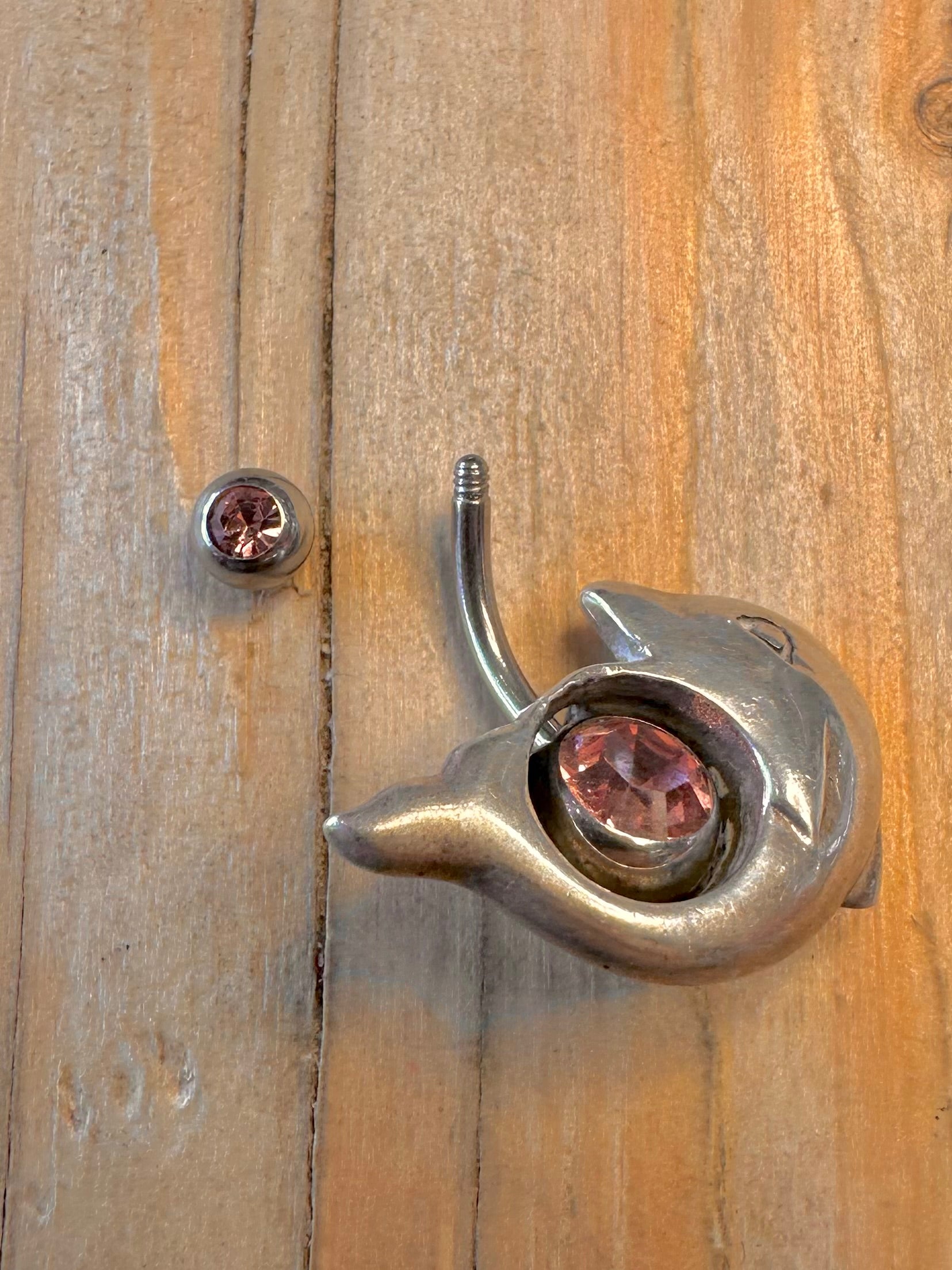 Modernist Dolphin Pink Stones 925 Sterling Silver Belly Bar Body Jewellery