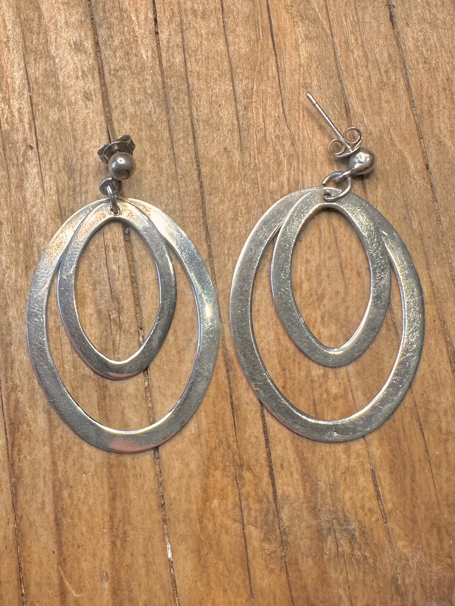 Modernist Double Oval Dangle 925 Sterling Silver Earrings