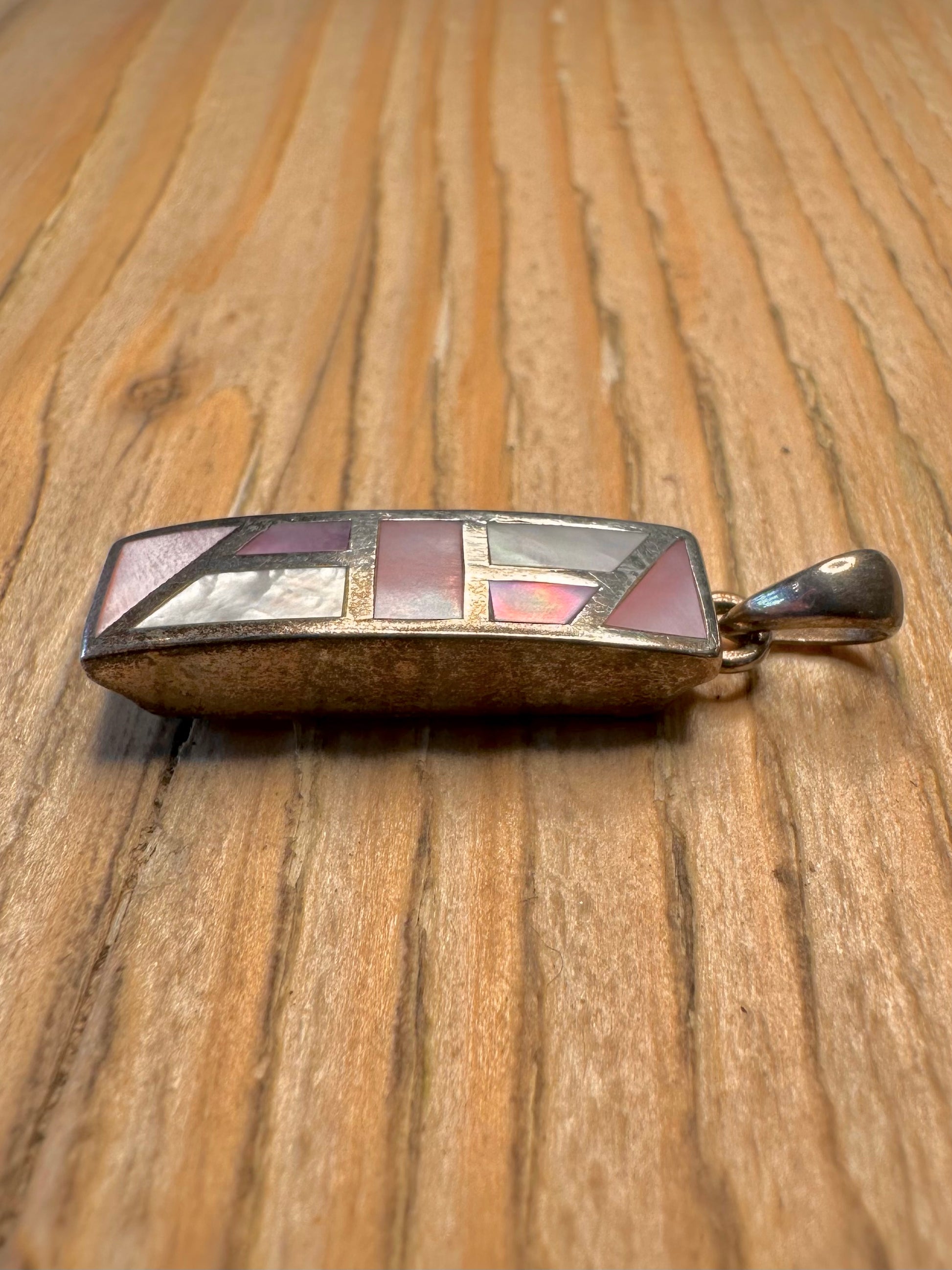 Modernist Pink Mother of Pearl Rectangle 925 Sterling Silver Pendant