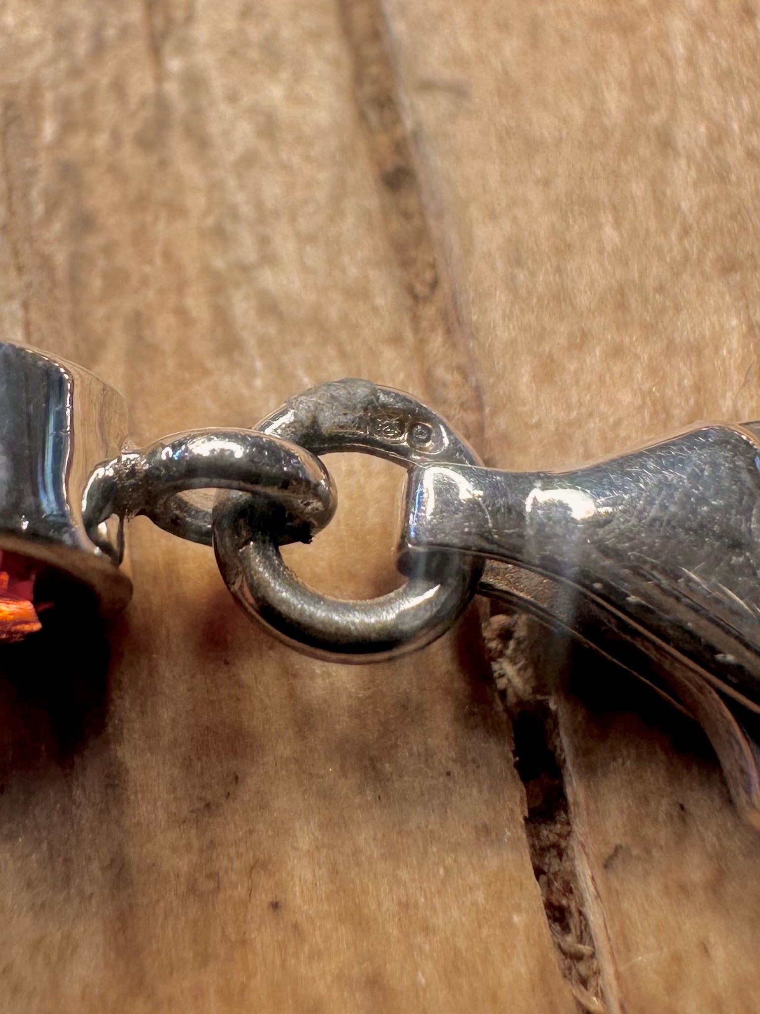 Modernist Red Stone Tennis 925 Sterling Silver 7.2 inch Bracelet