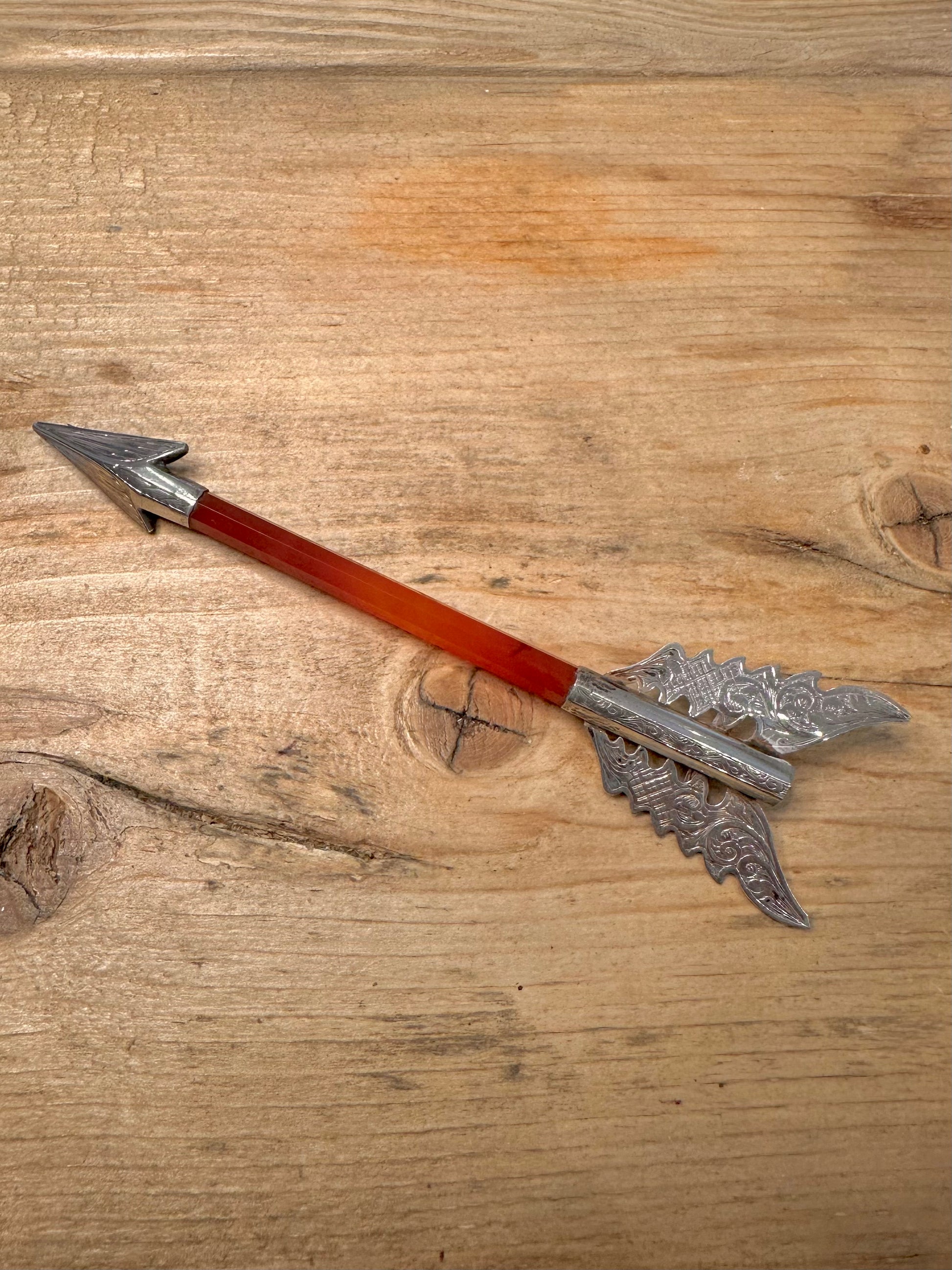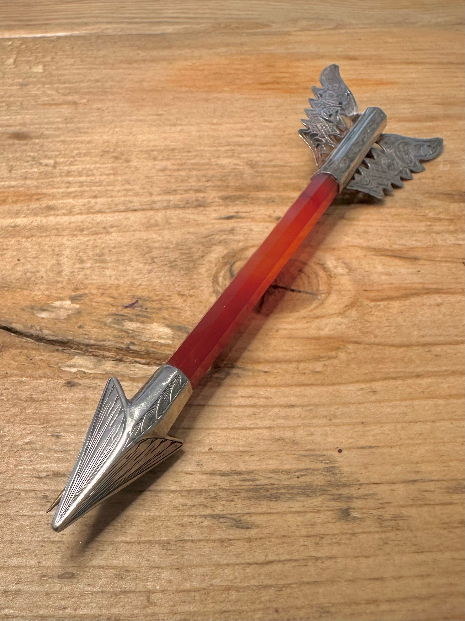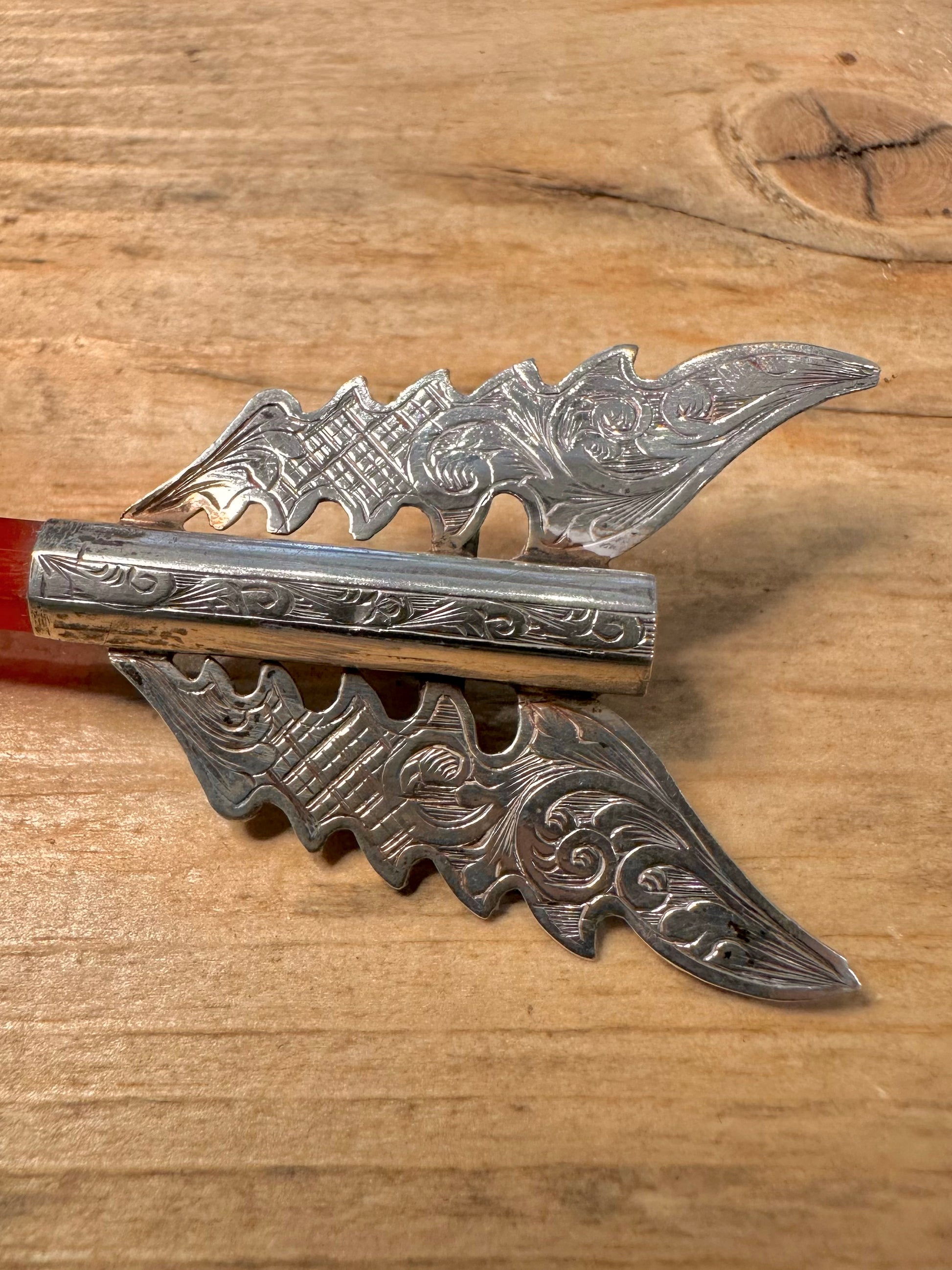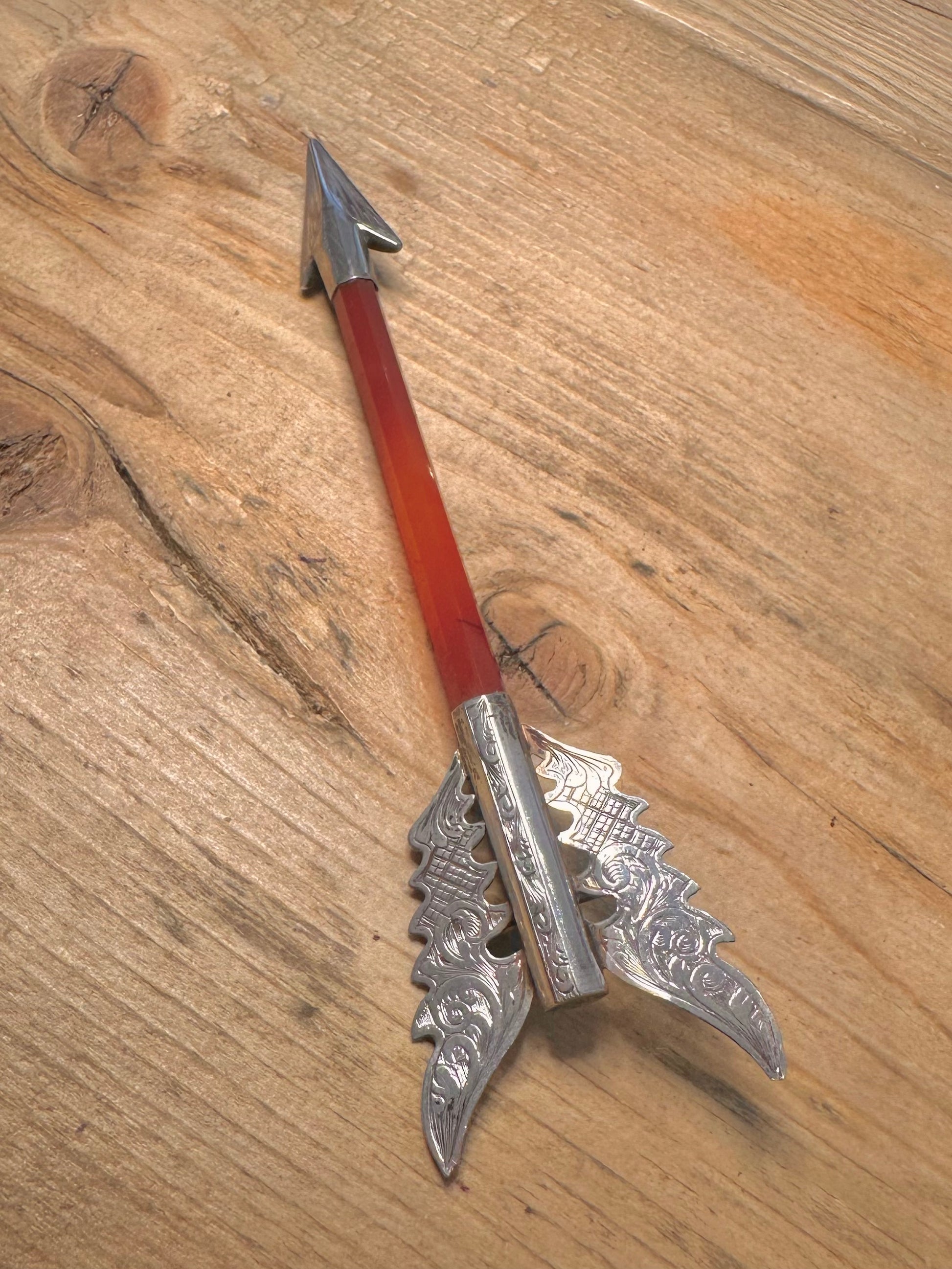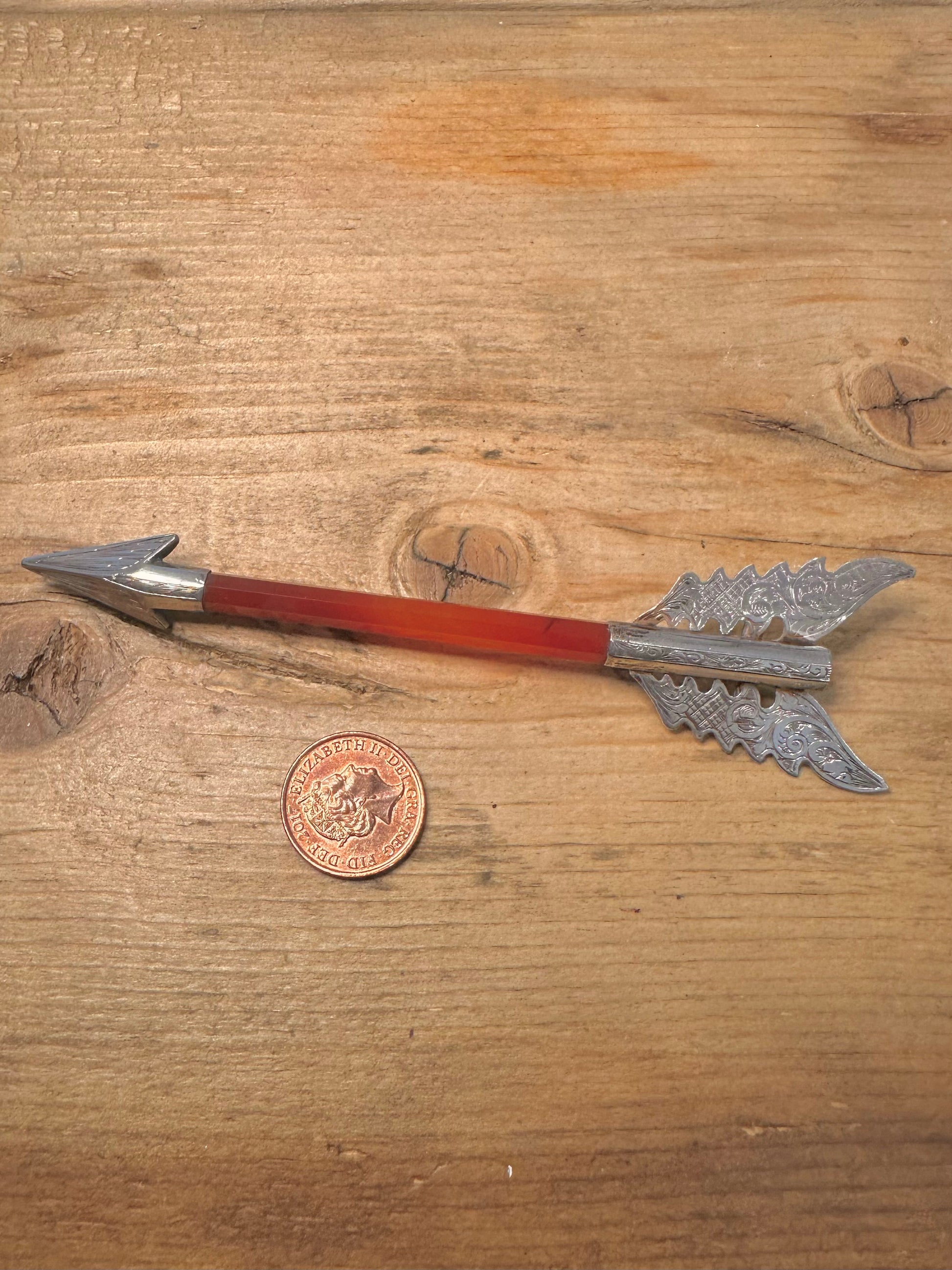 Rare Victorian Scottish Arrow Red Agate 925 Silver Brooch