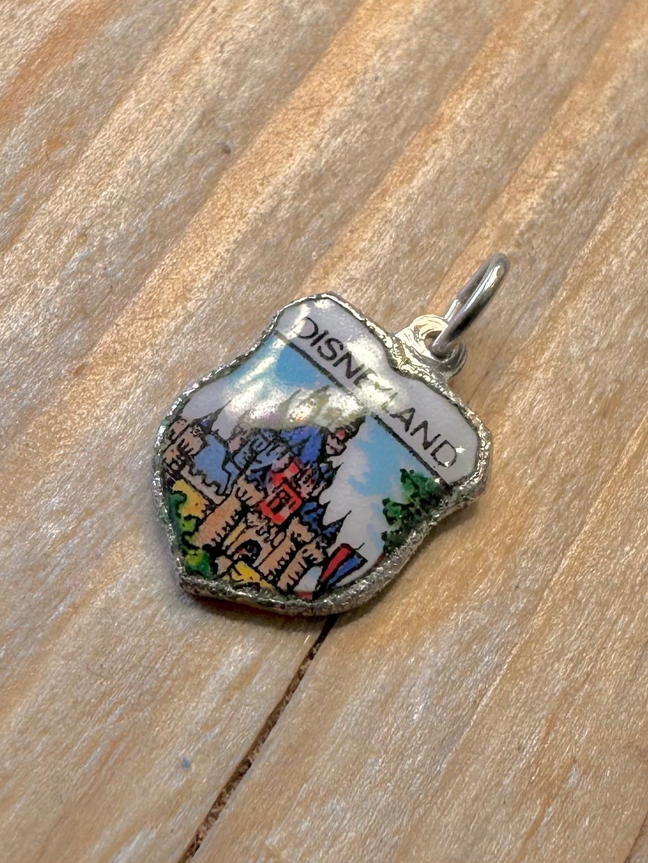 Rare Vintage Enamel Disneyland Crest 925 Silver Pendant