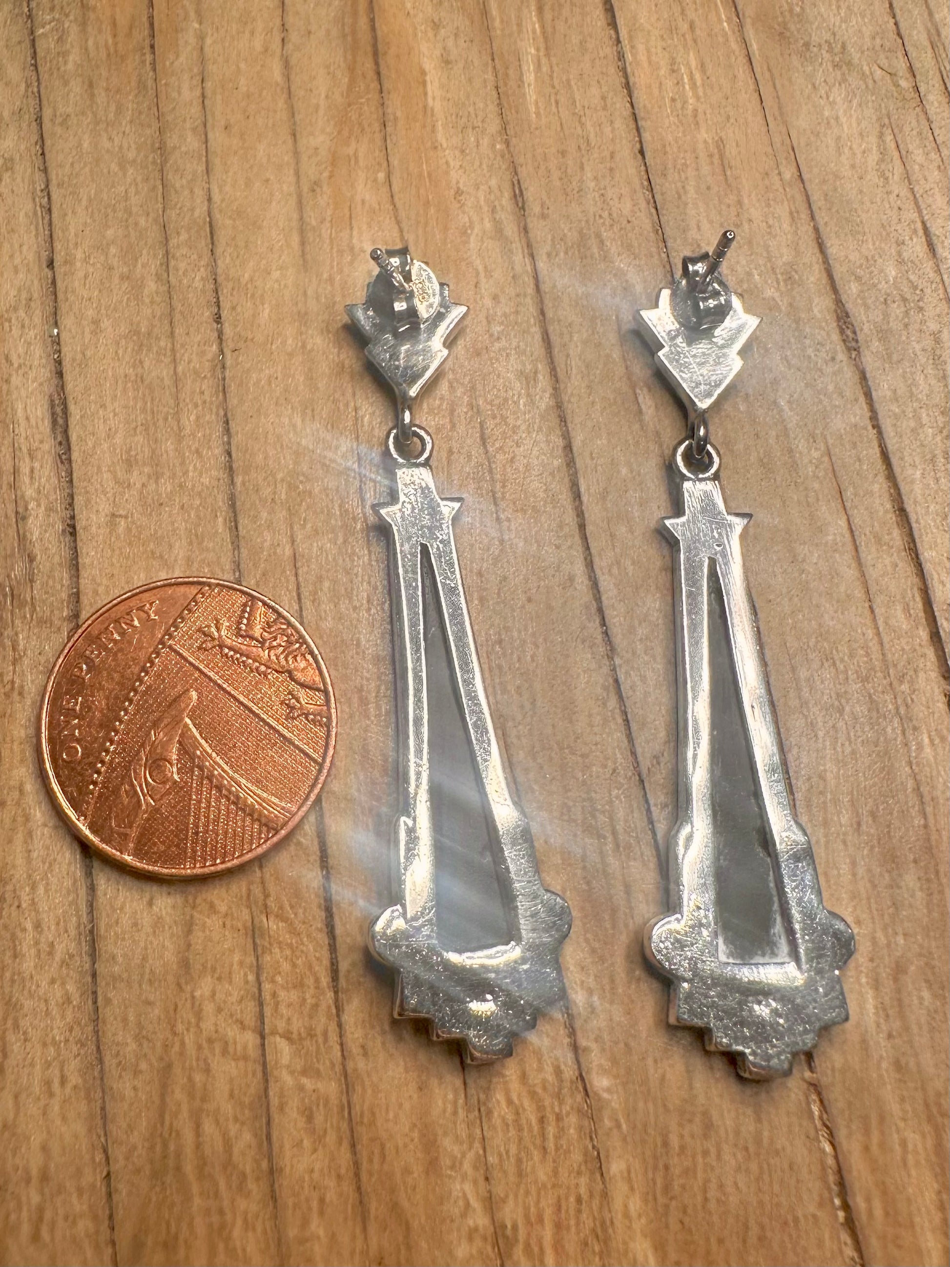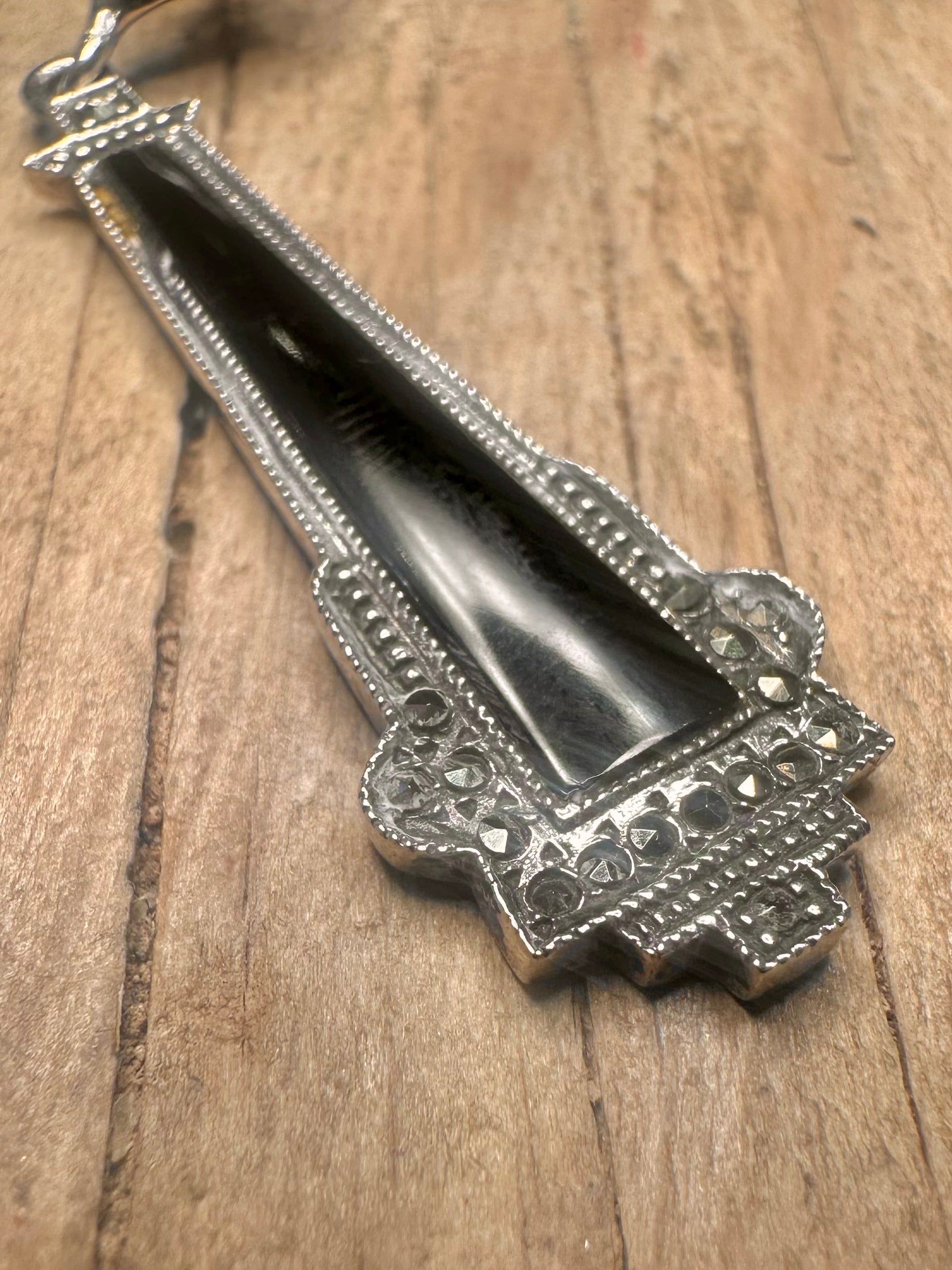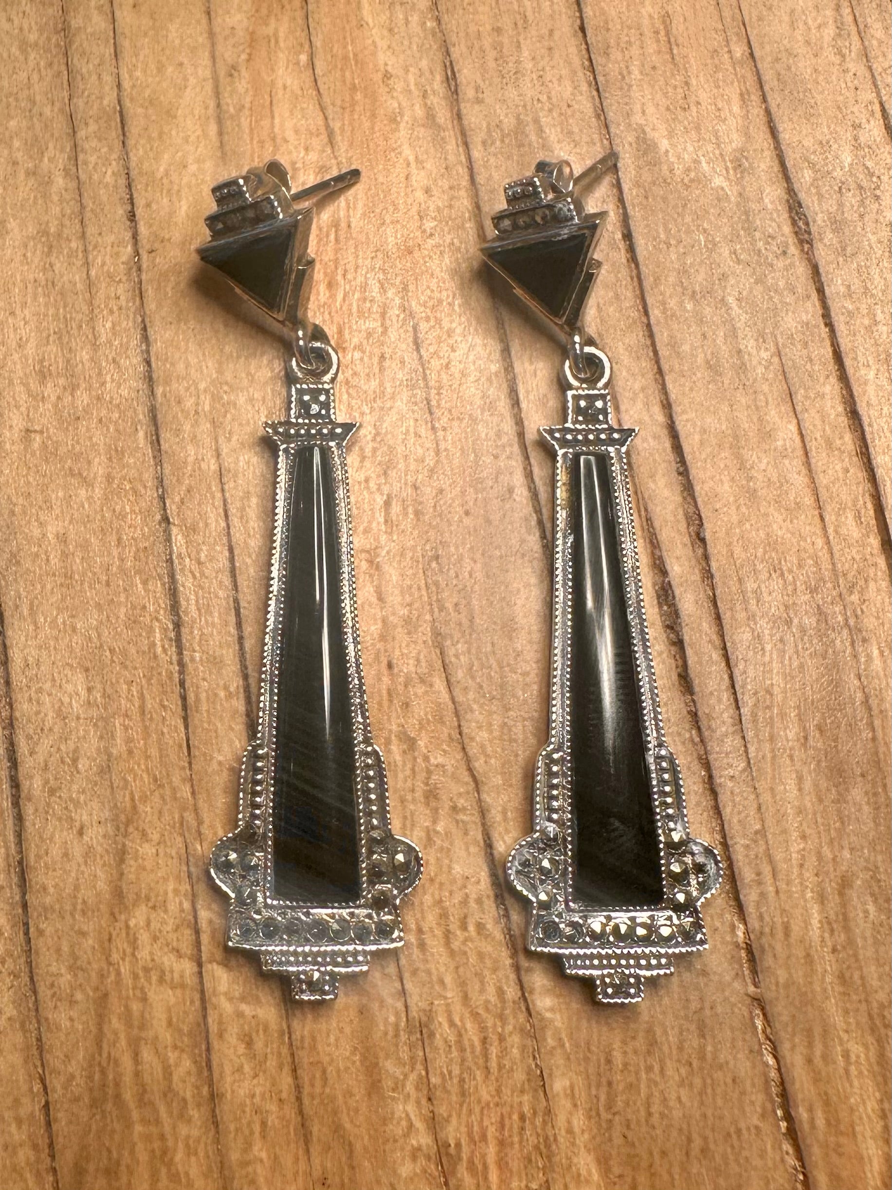 Vintage Art Deco Onyx and Marcasite 925 Sterling Silver Earrings