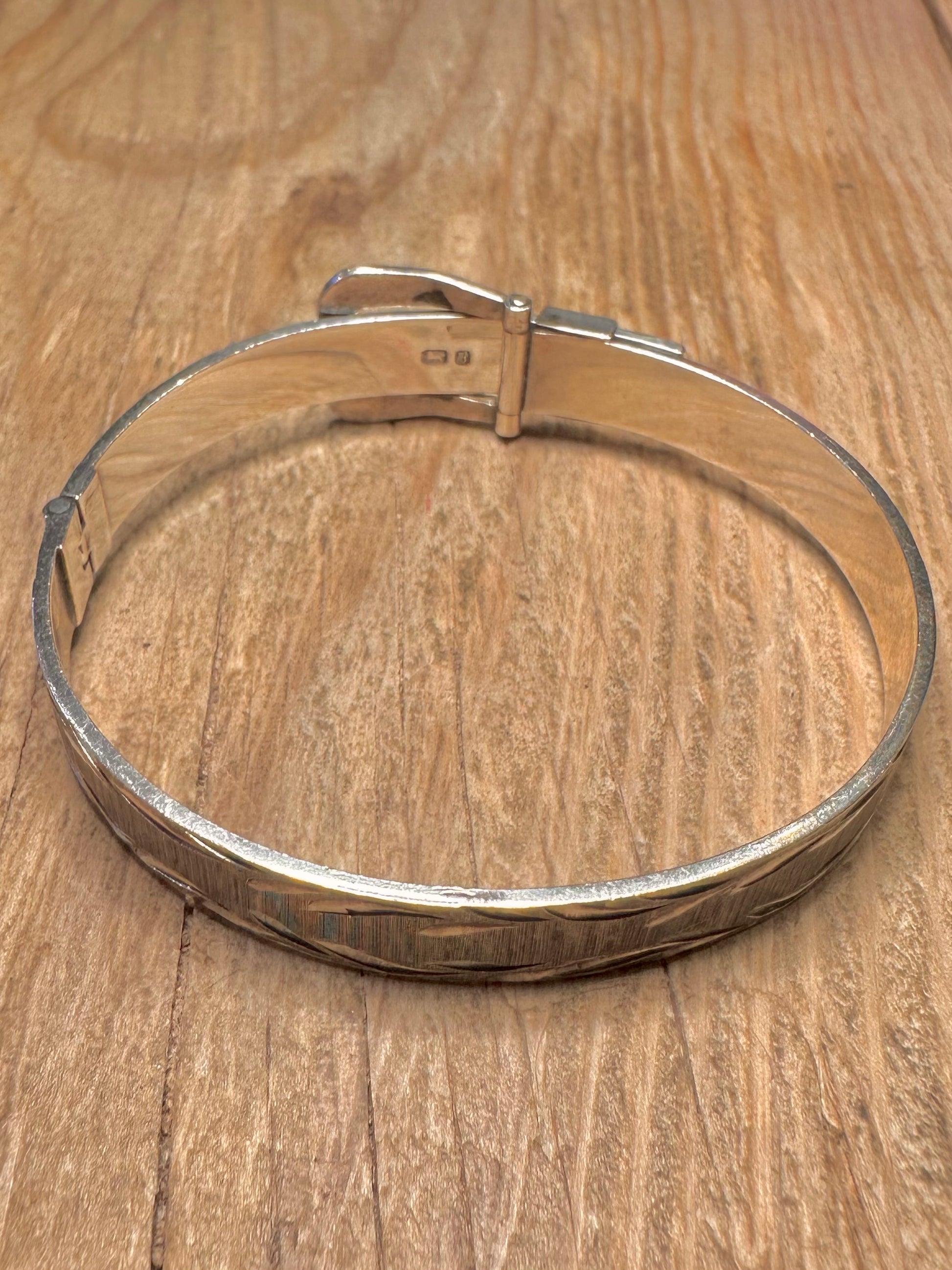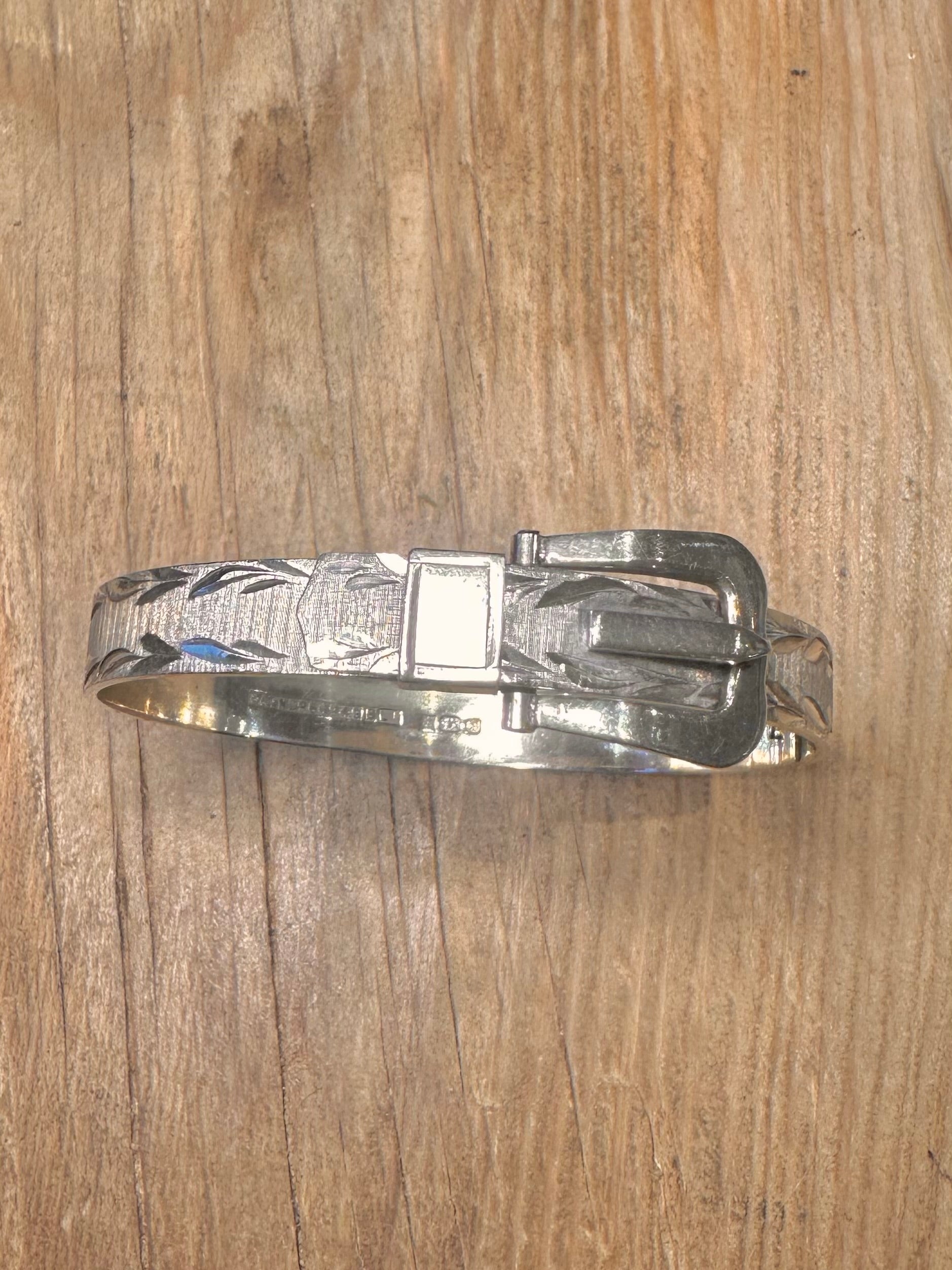 Vintage 1976 Buckle Belt Textured 925 Sterling Silver Bangle