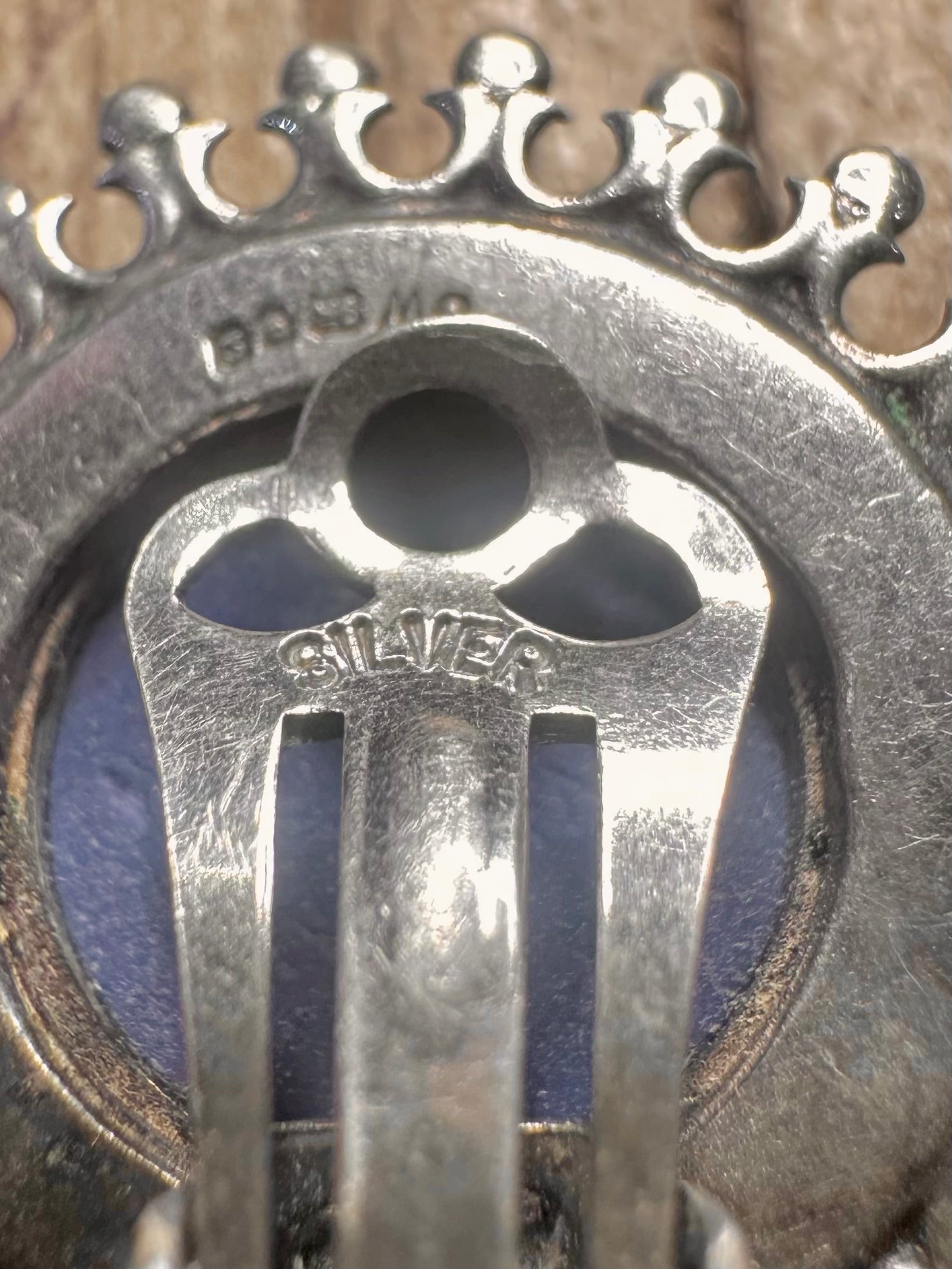Vintage 1978 Blue Wedgwood Cameo Clip On 925 Sterling Silver Earrings