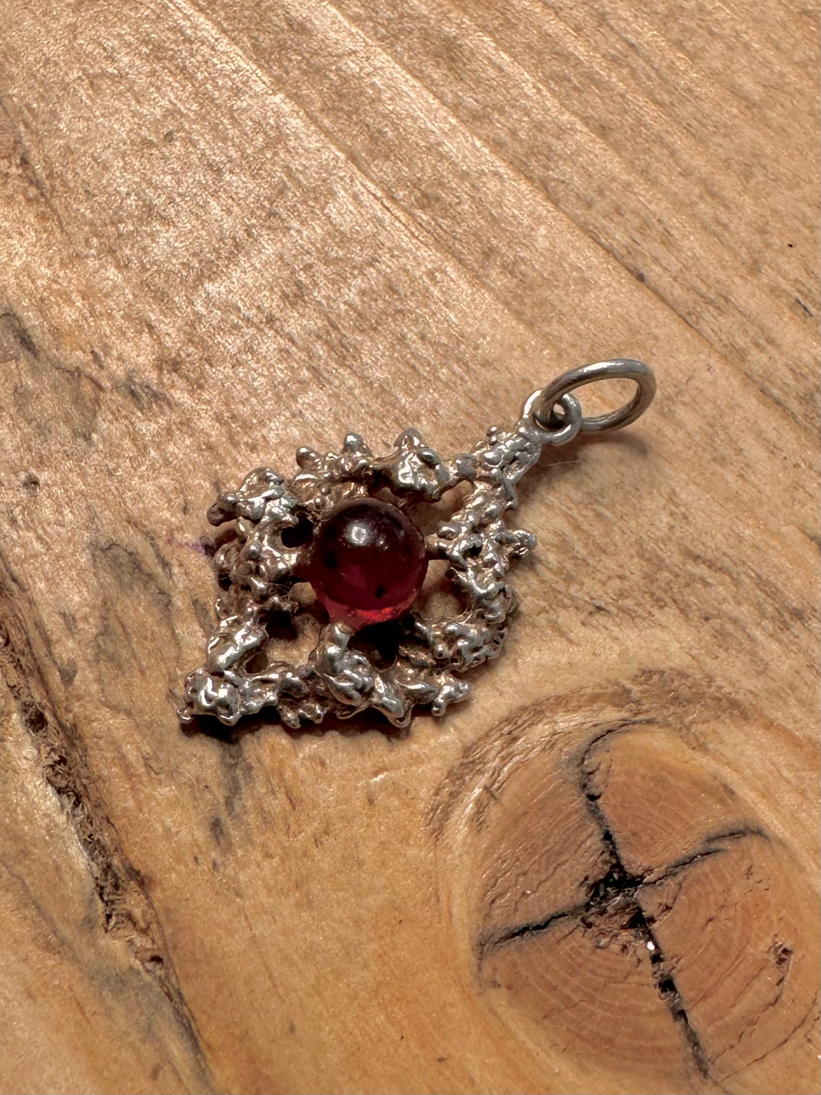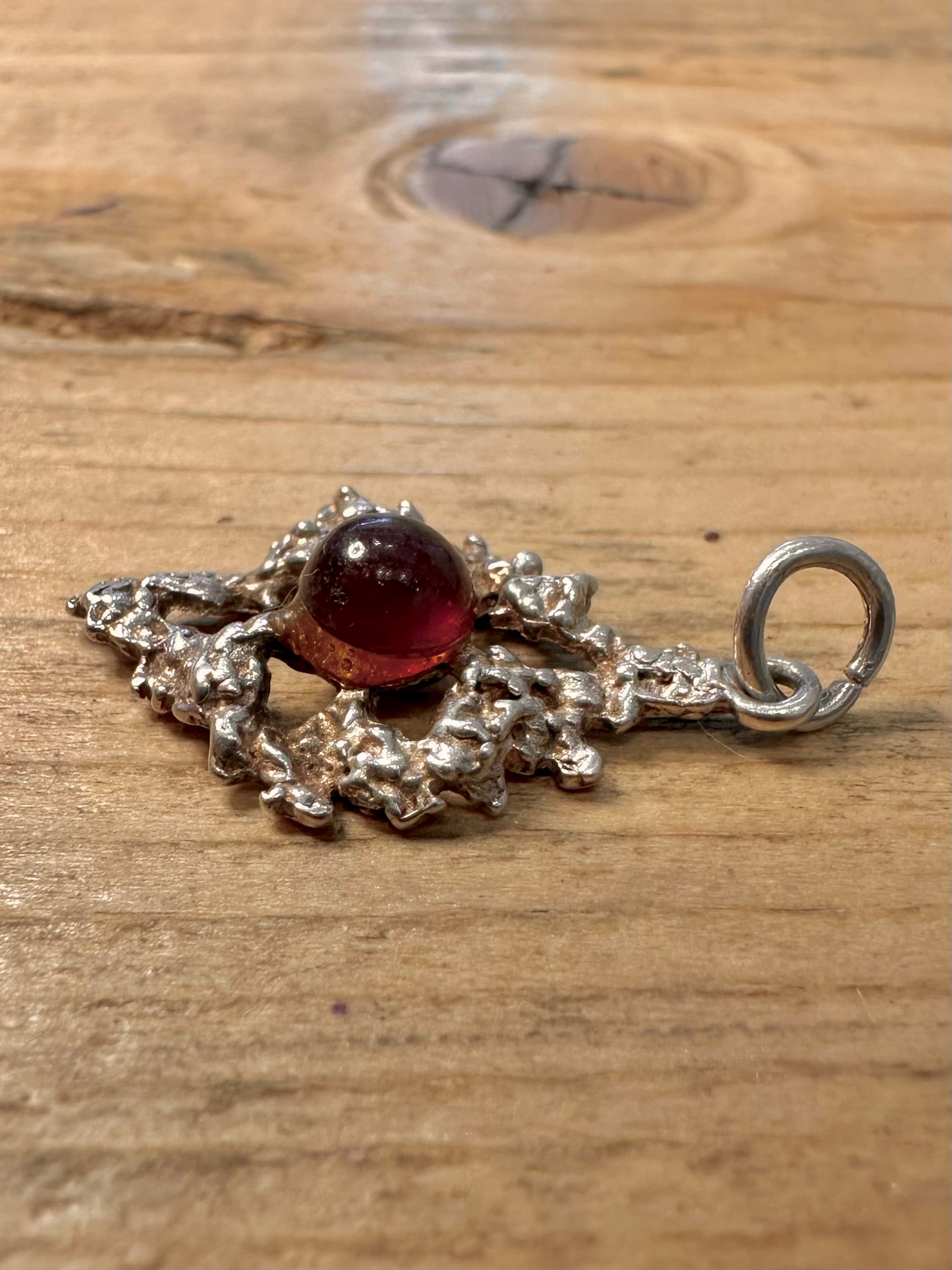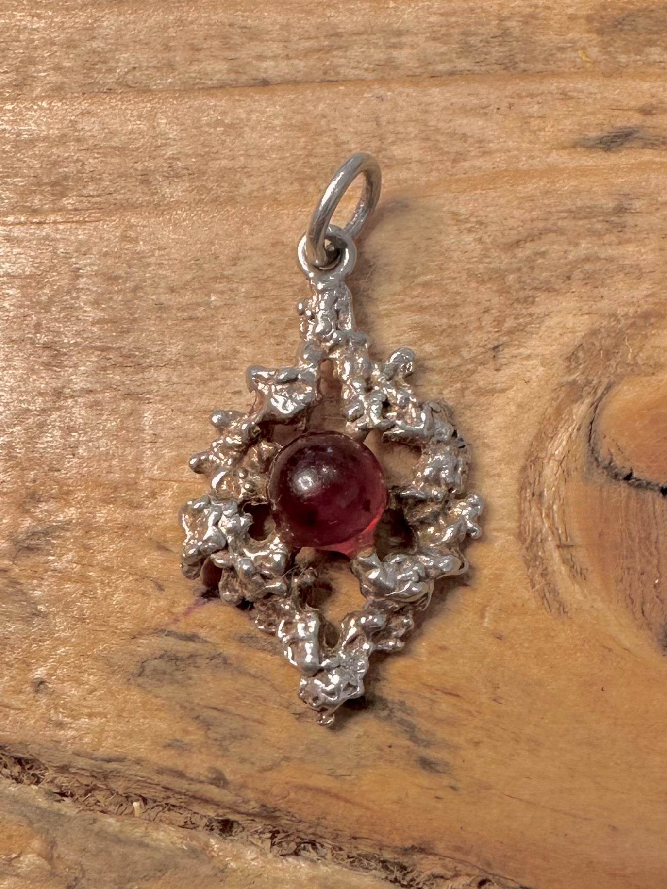 Vintage 1978 Brutalist Red Stone 925 Silver Pendant