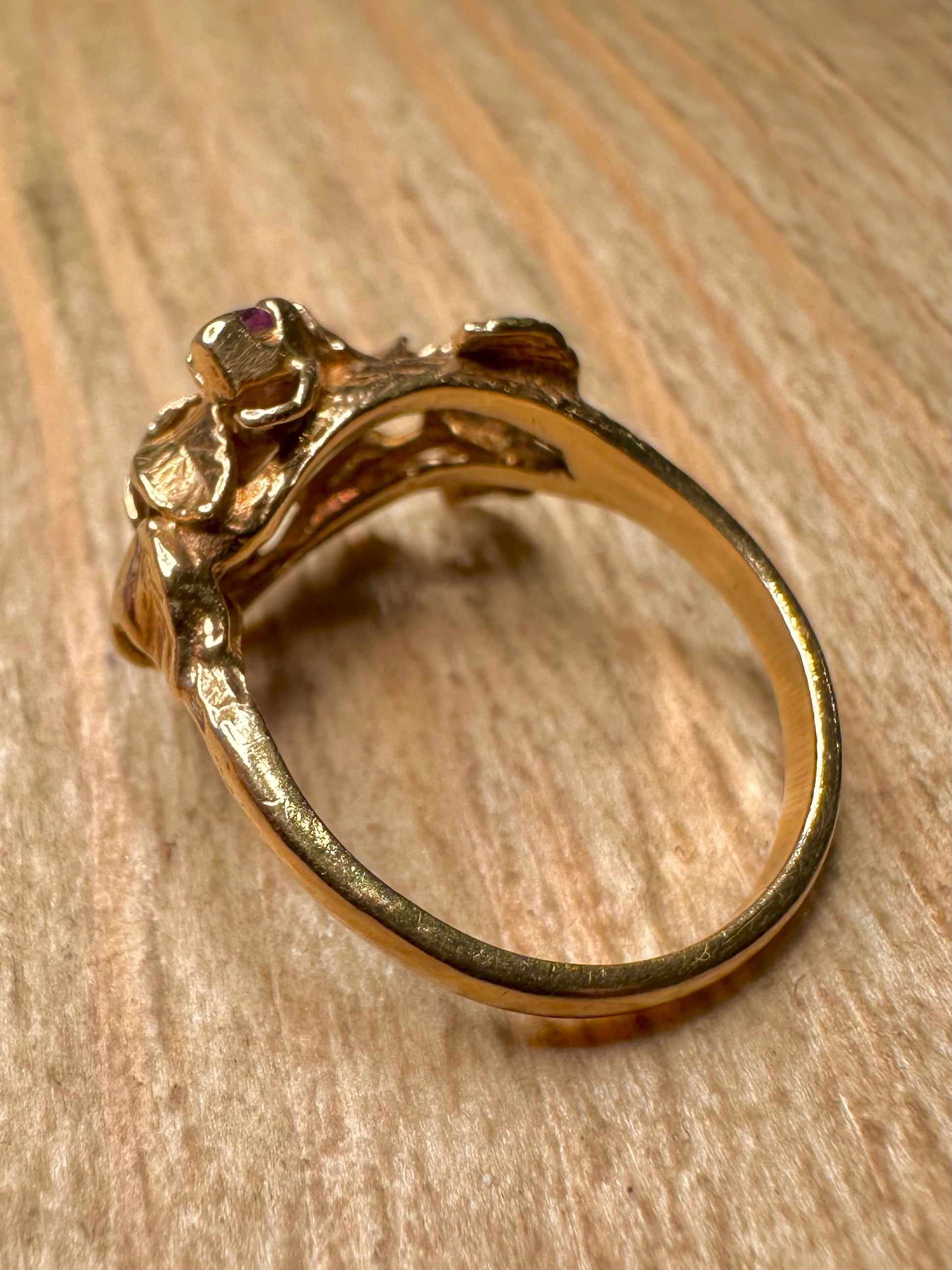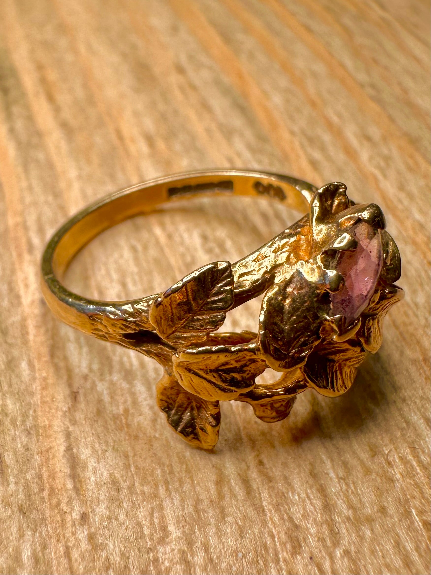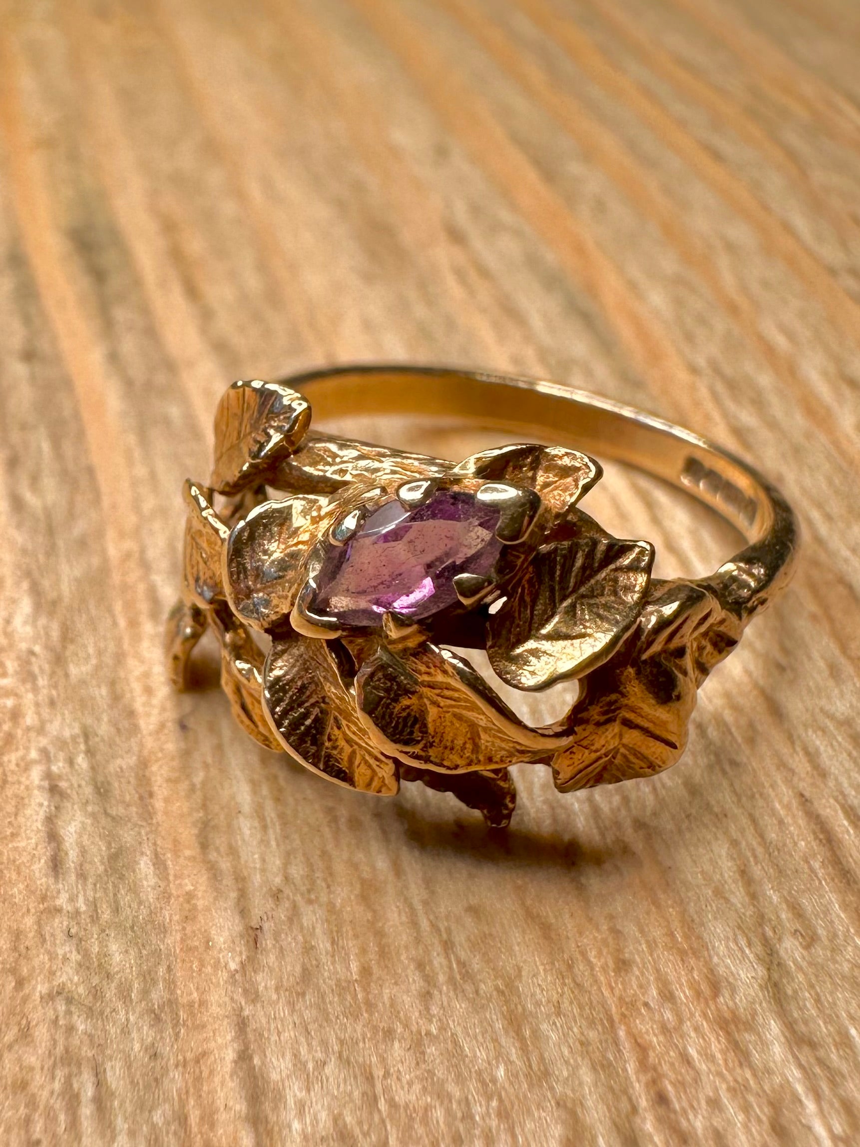Vintage 1980 9ct Gold Amethyst Leaf Size N1/2 Ring