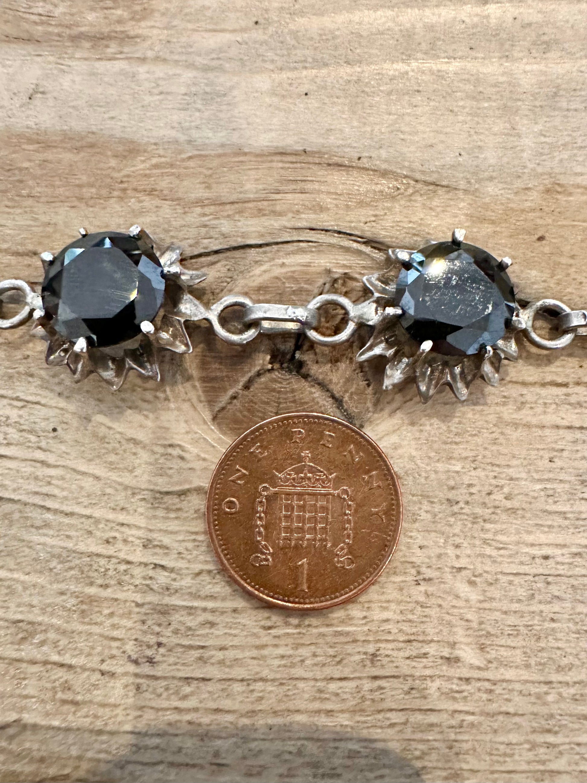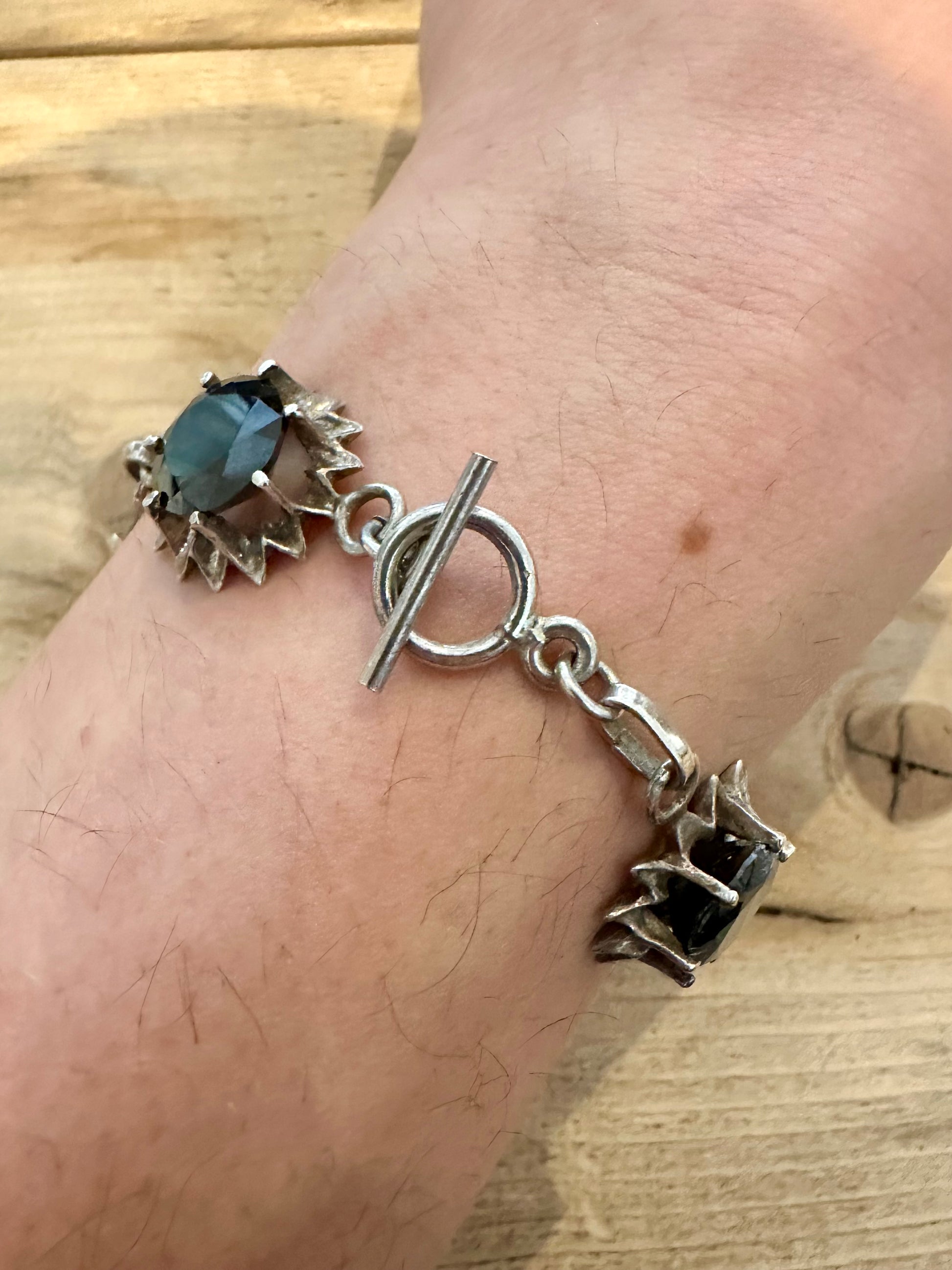 Vintage 1980 Abstract Dark Stones T Bar Clasp 925 Silver Sheffield GA Maker 7 inch Braceleft