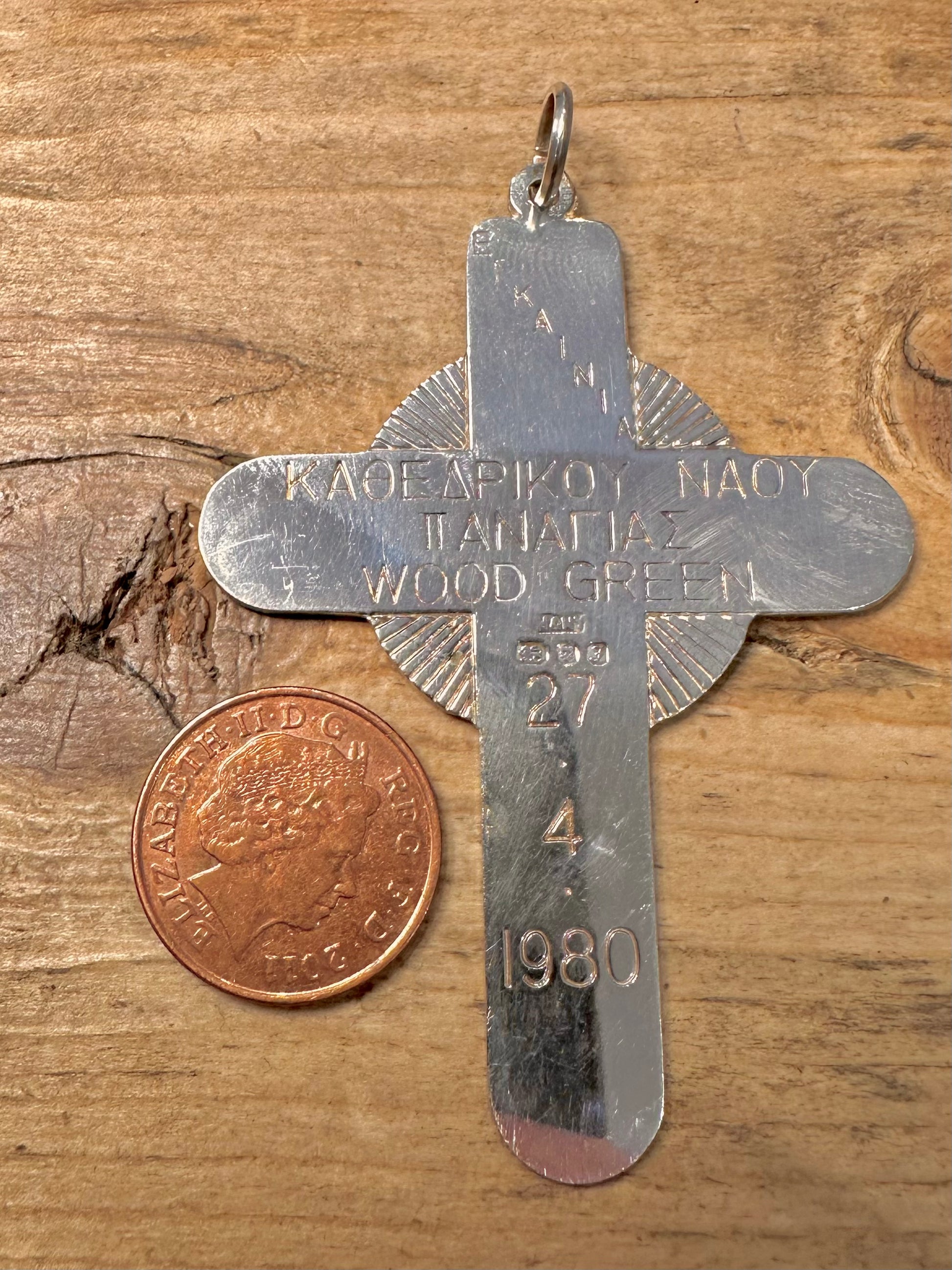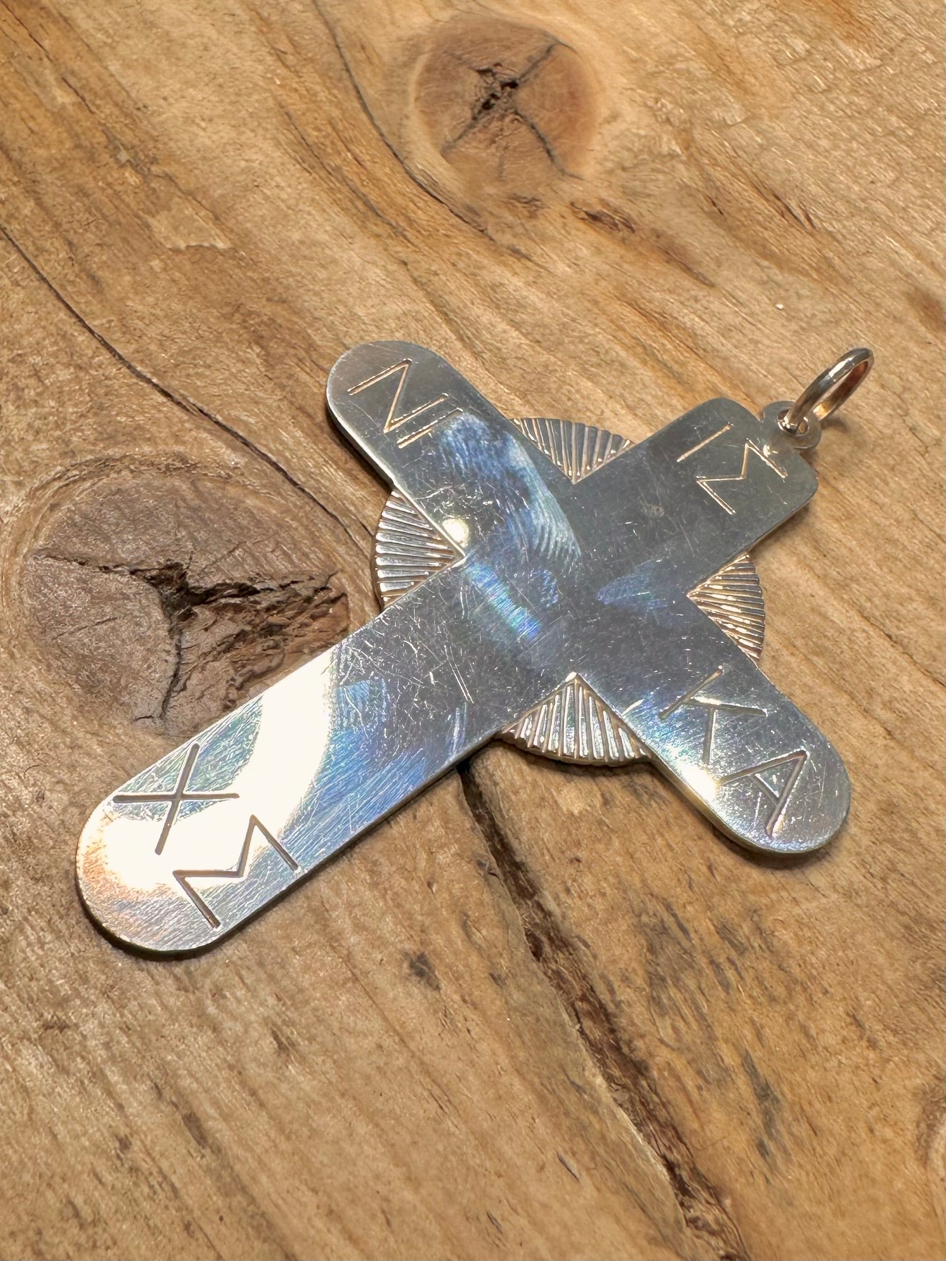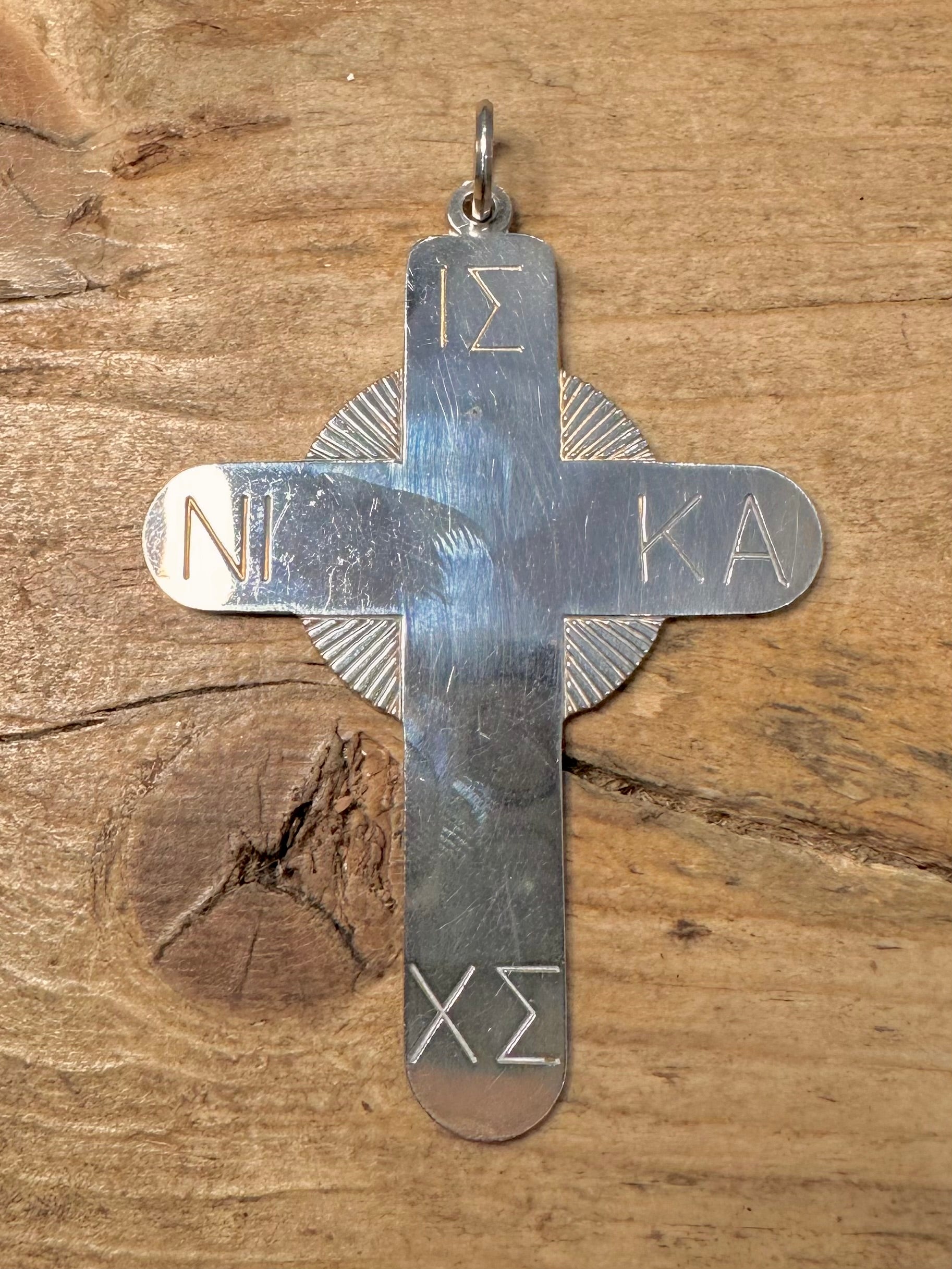 Vintage 1980 Large Cross Engraved 925 Silver Pendant