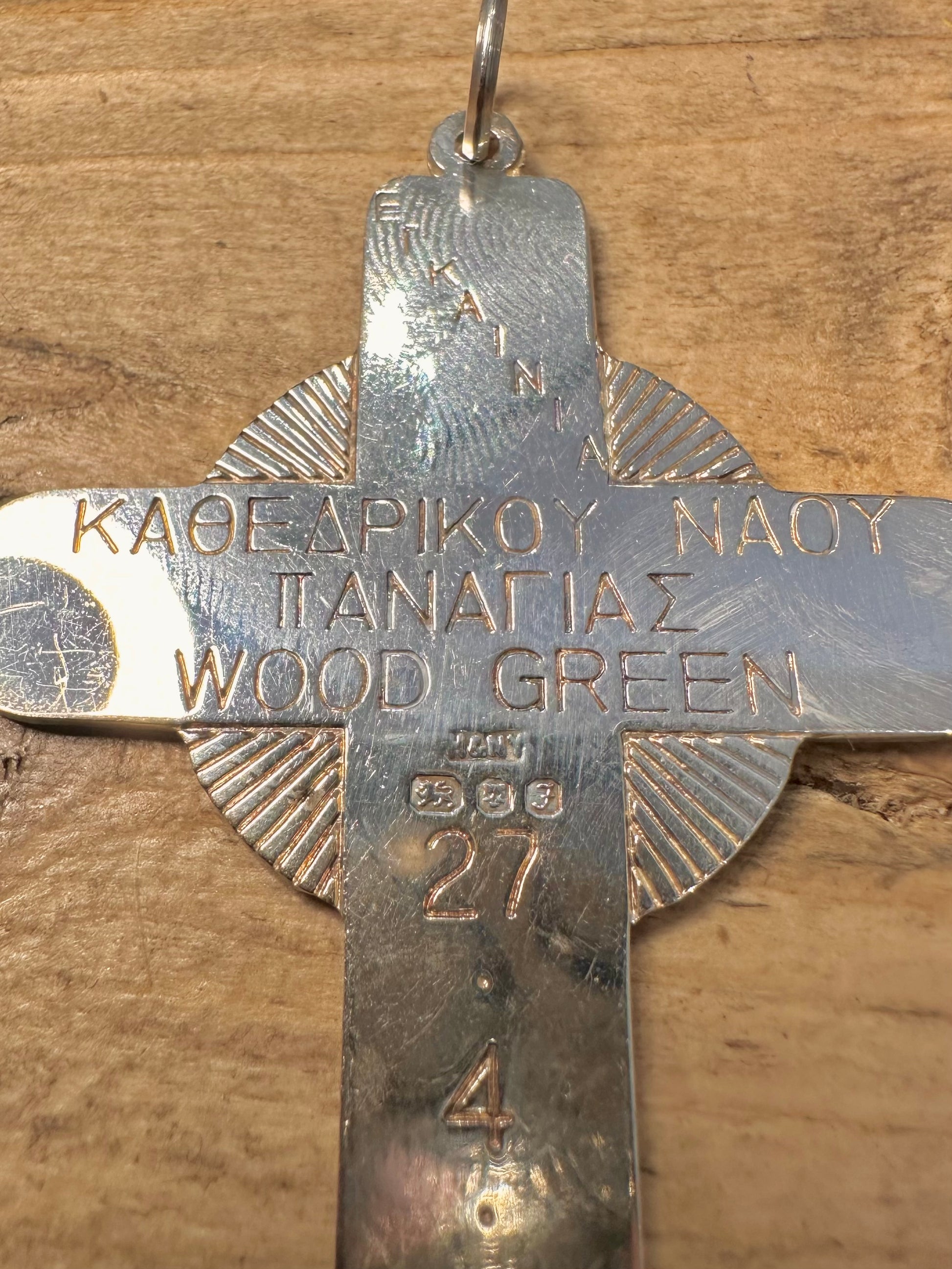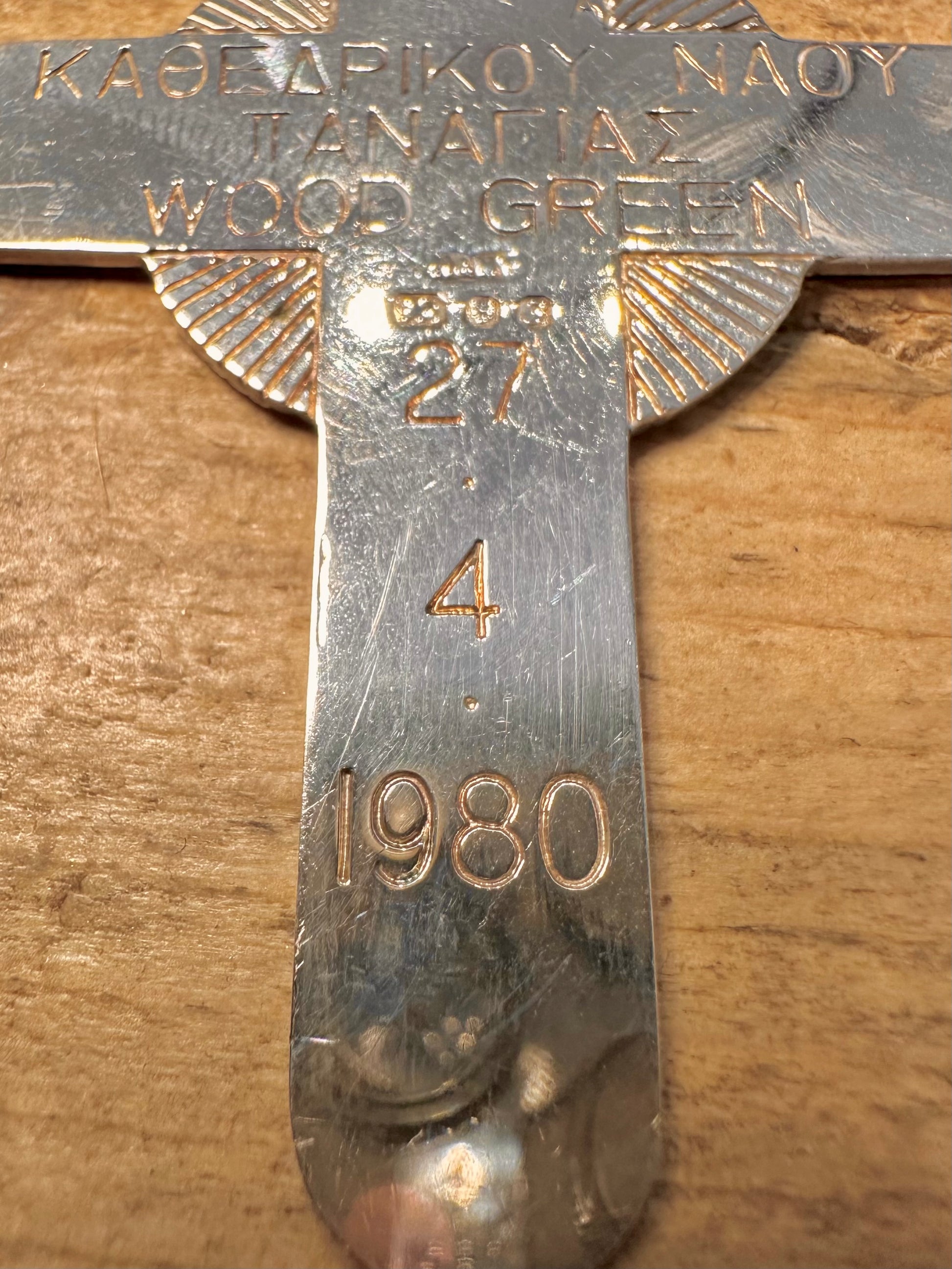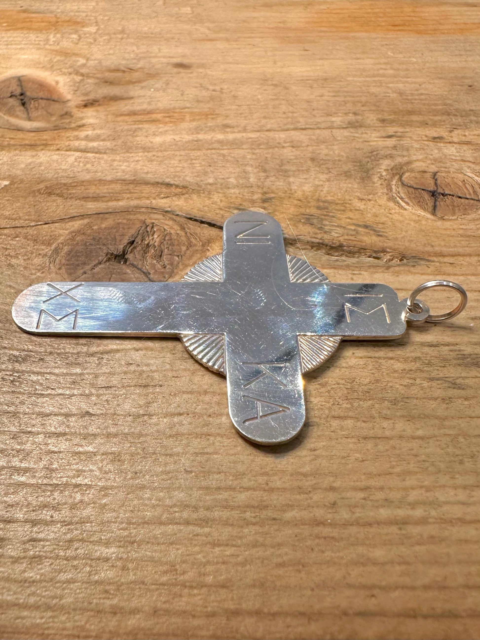 Vintage 1980 Large Cross Engraved 925 Silver Pendant