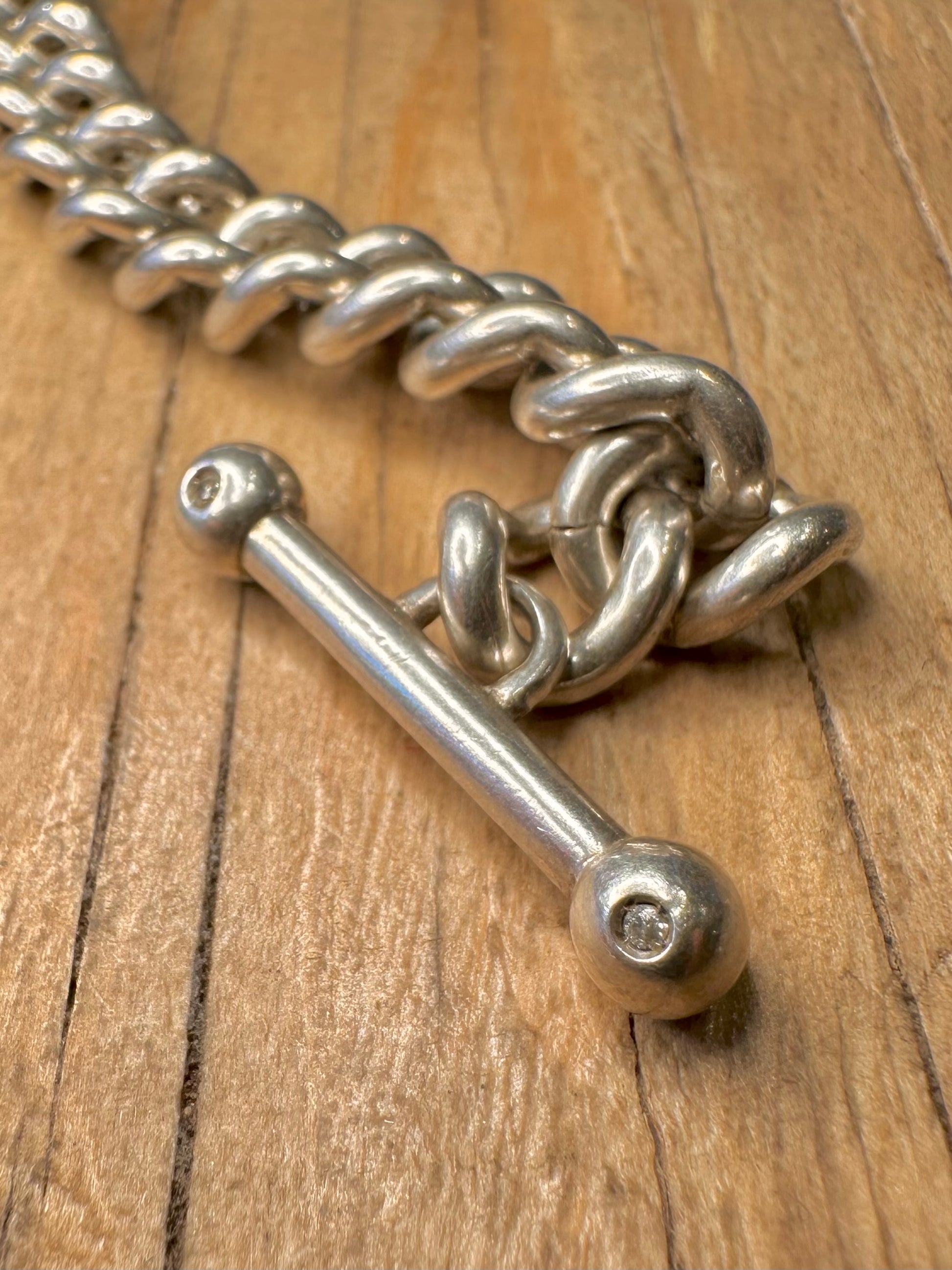 Vintage 1999 Diamond T Bar Chunky Curb Chain 925 Sterling Silver 20 inch Necklace