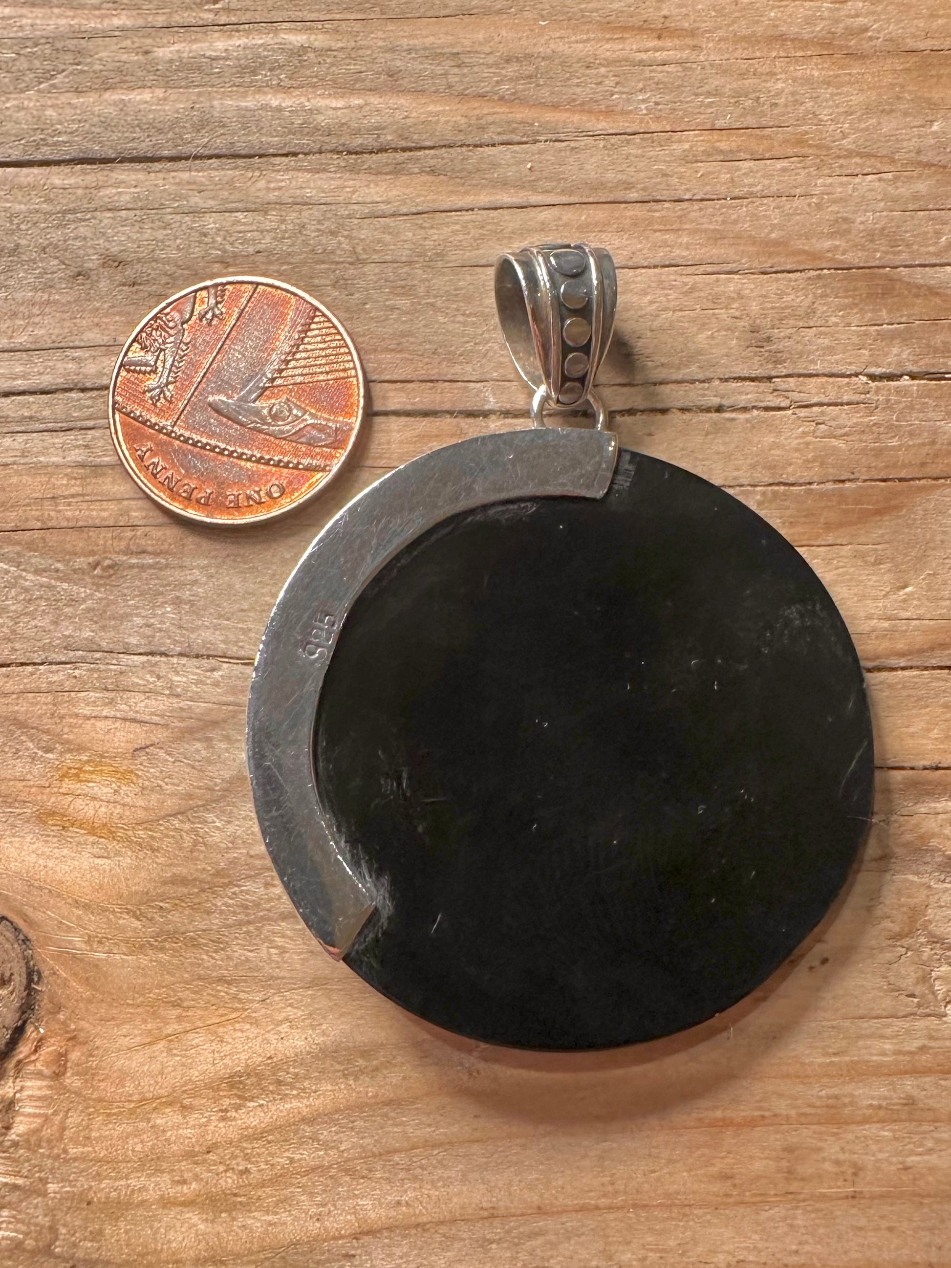 Vintage Abalone Blue Opal Circle 925 Sterling Silver Pendant