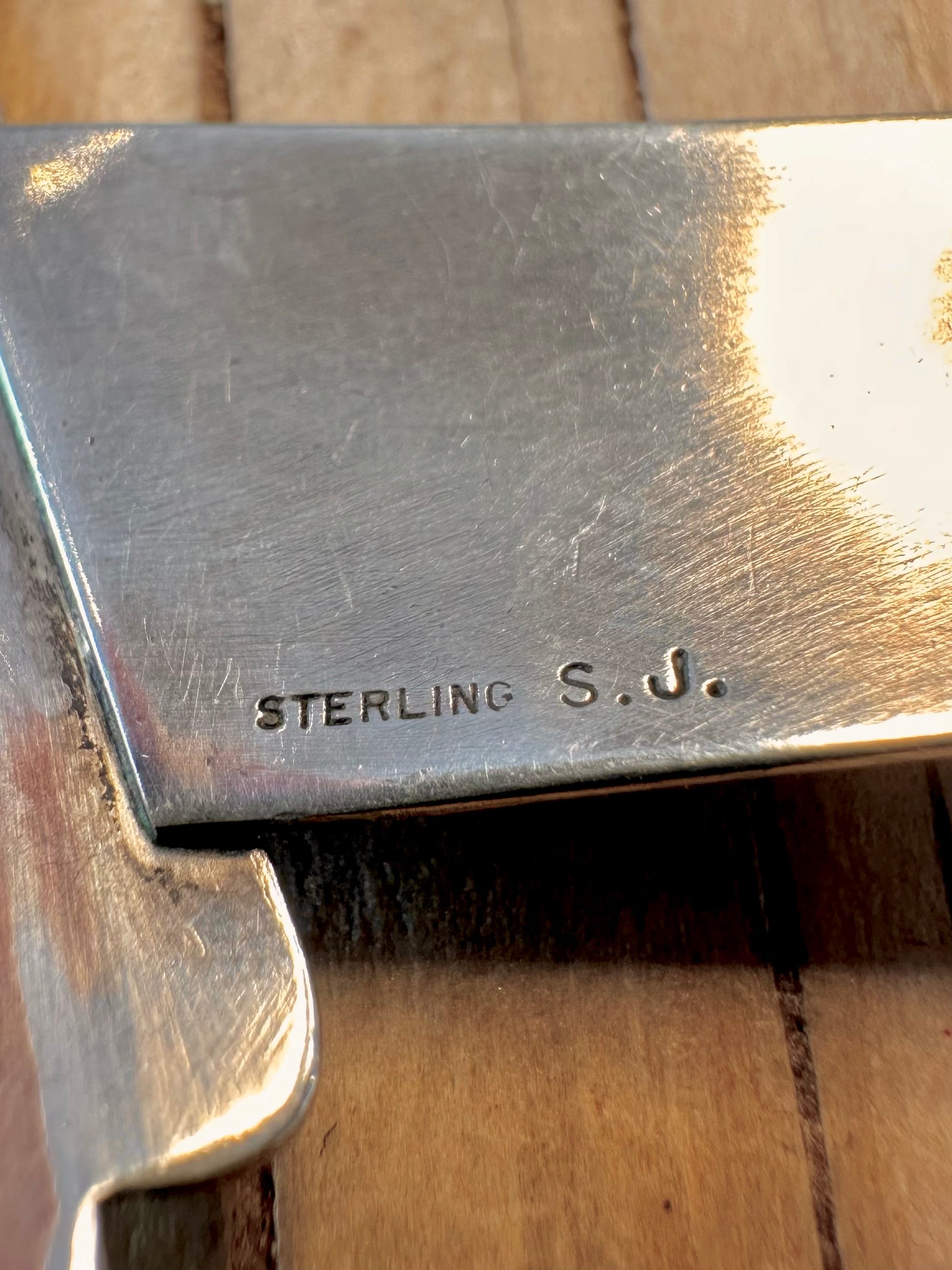 Vintage Abstract Mother of Pearl Maker S.J 925 Sterling Silver 15.5 inch Necklace