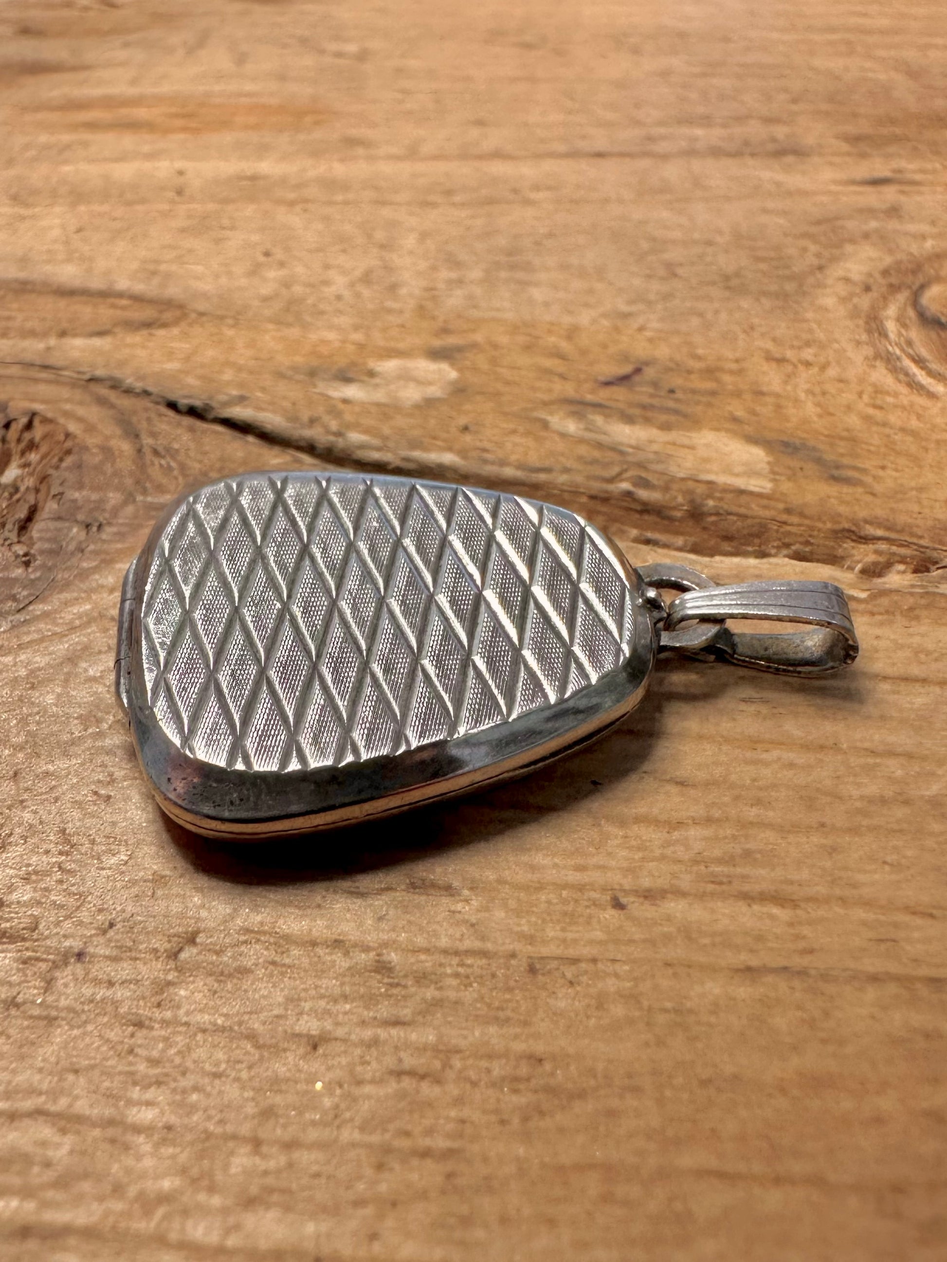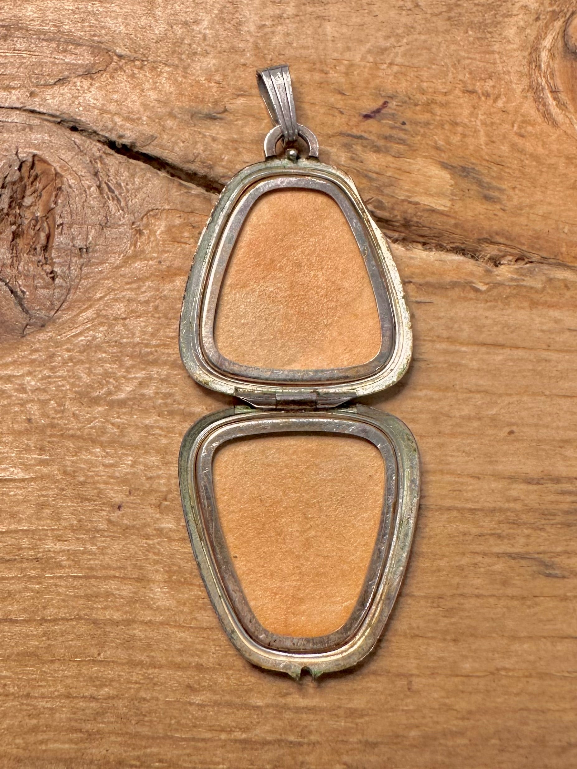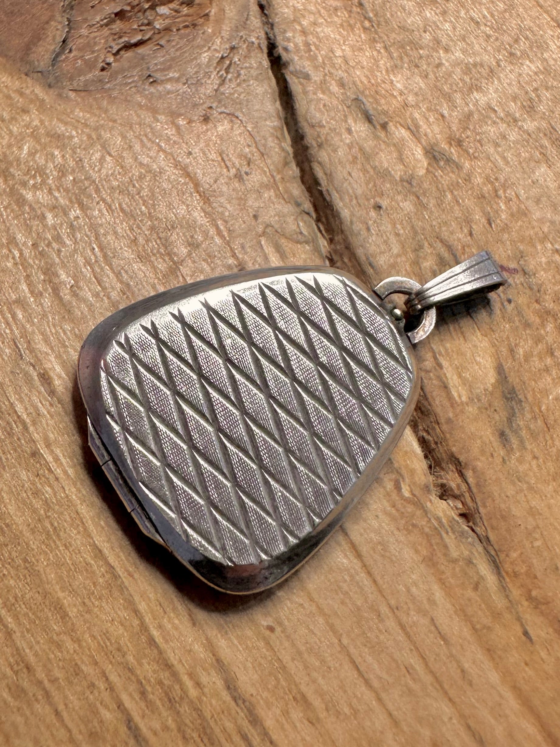 Vintage Abstract Triangle Engraved 835 Silver Locket Pendant