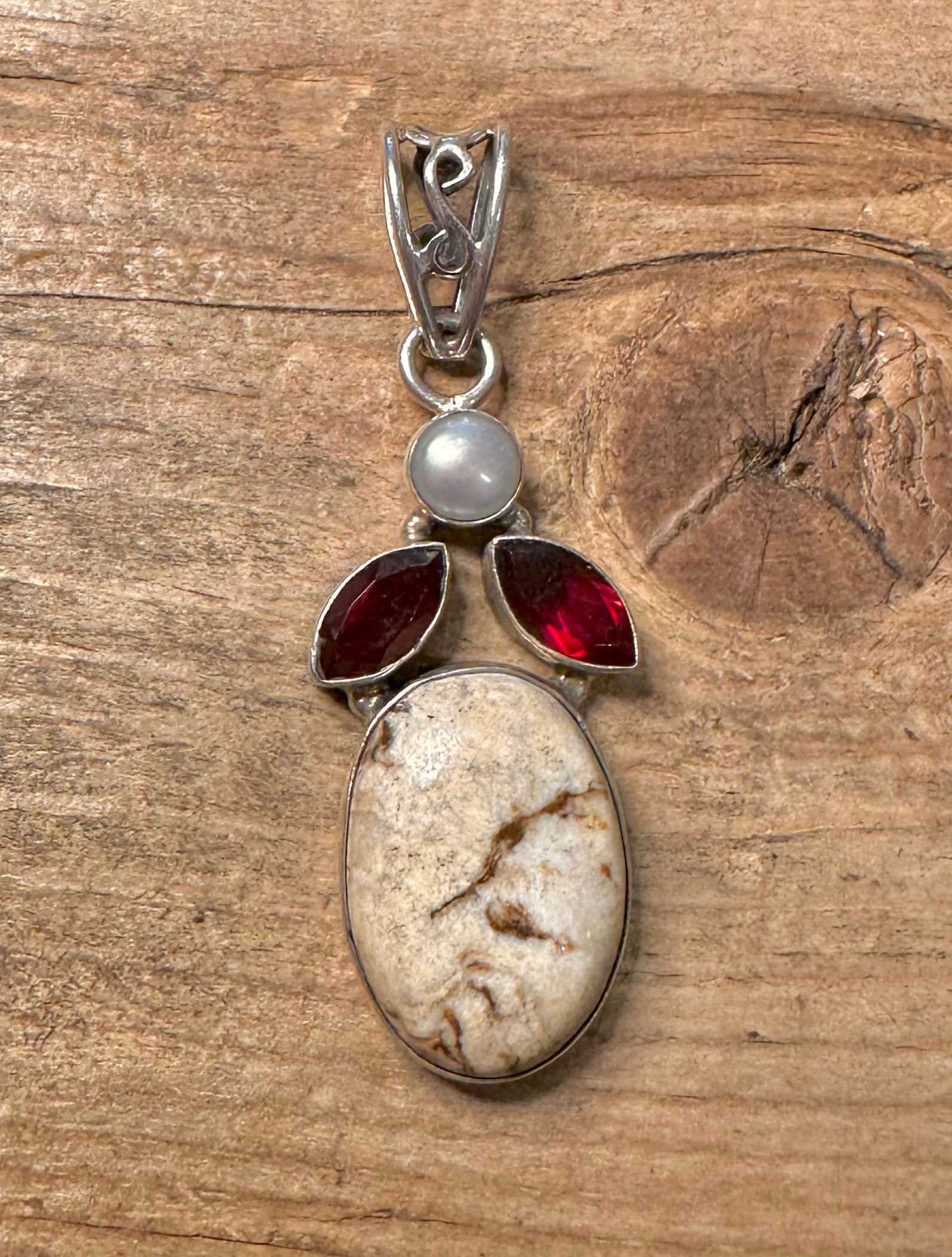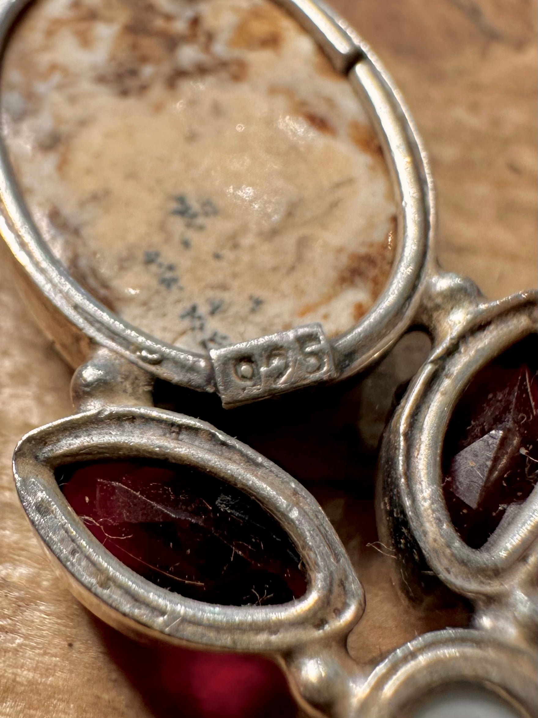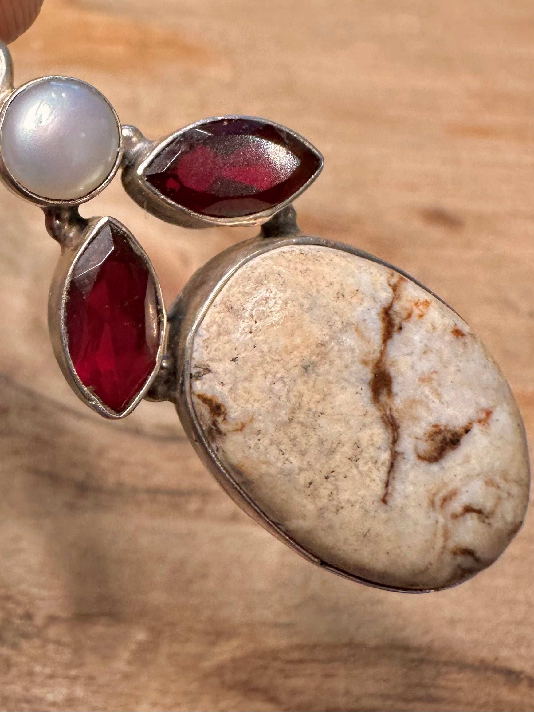 Vintage Agate Garnet and Pearl 925 Silver Pendant