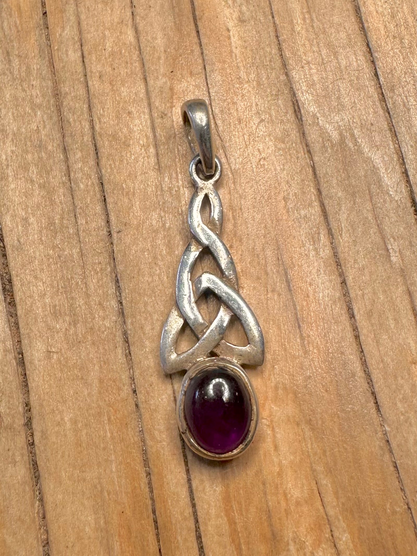 Vintage Amethyst Celtic 925 Sterling Silver Pendant