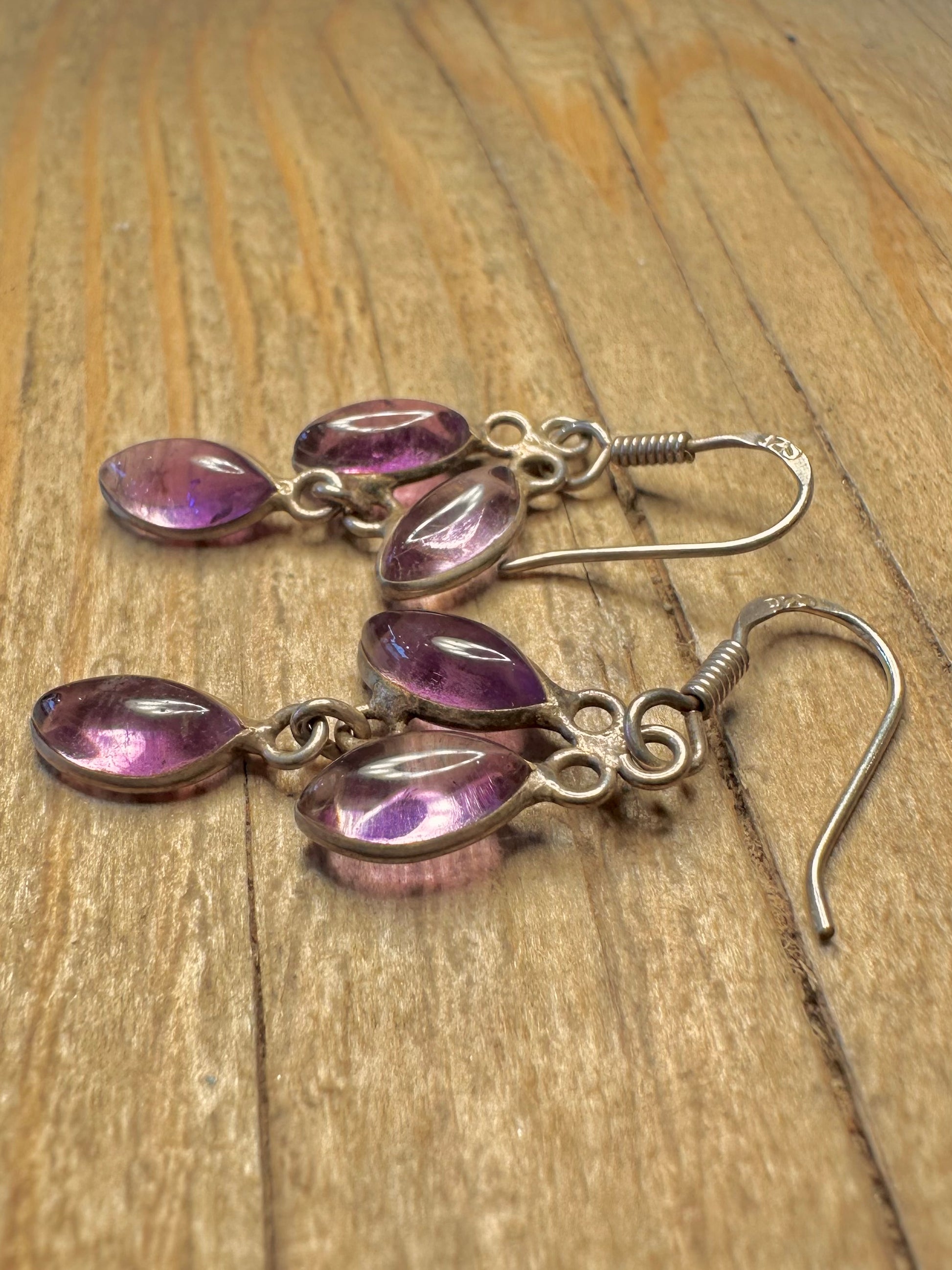 Vintage Amethyst Dangle 925 Sterling Silver Earrings