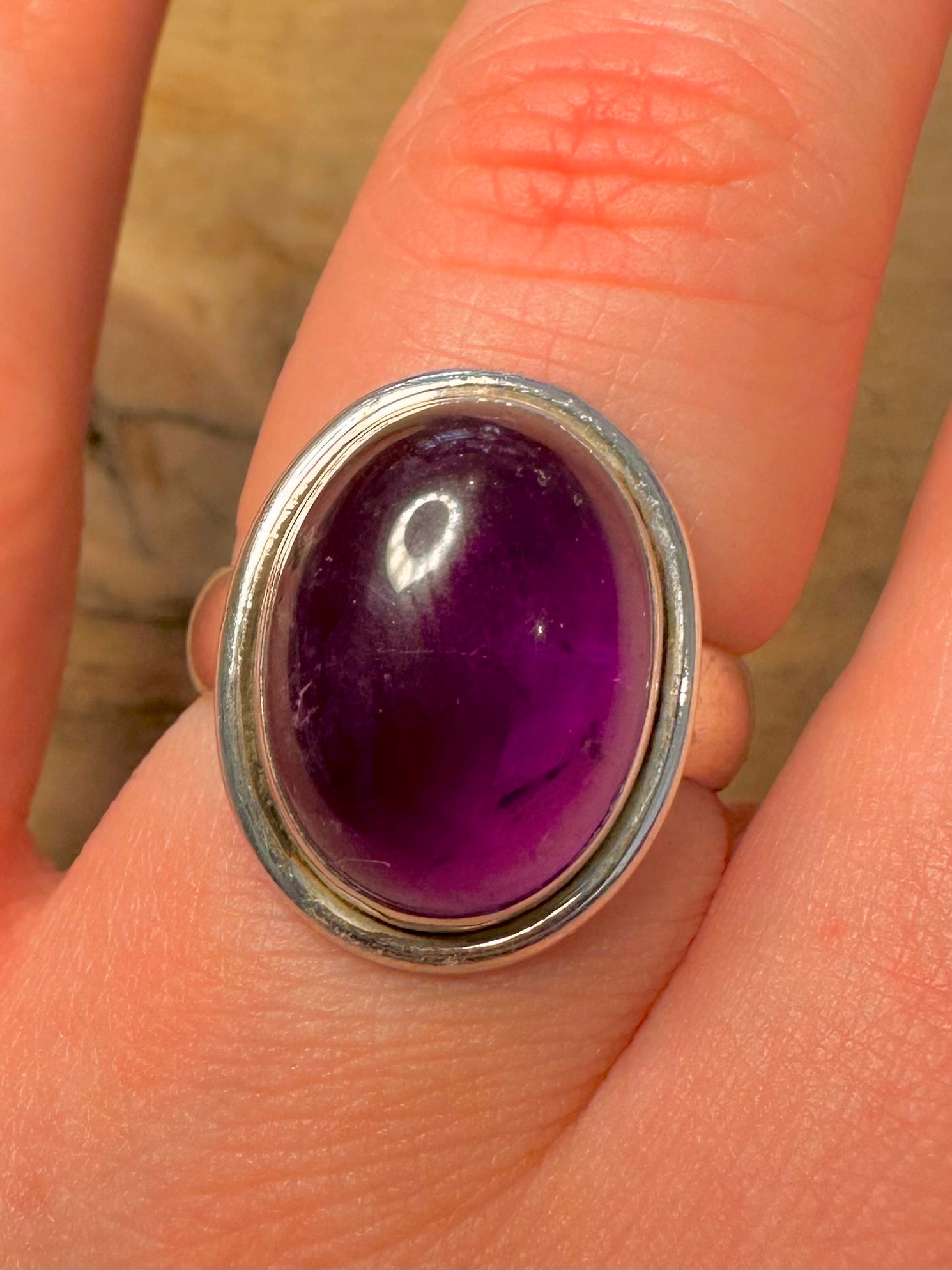 Vintage Amethyst Oval 925 Silver Size Q Ring