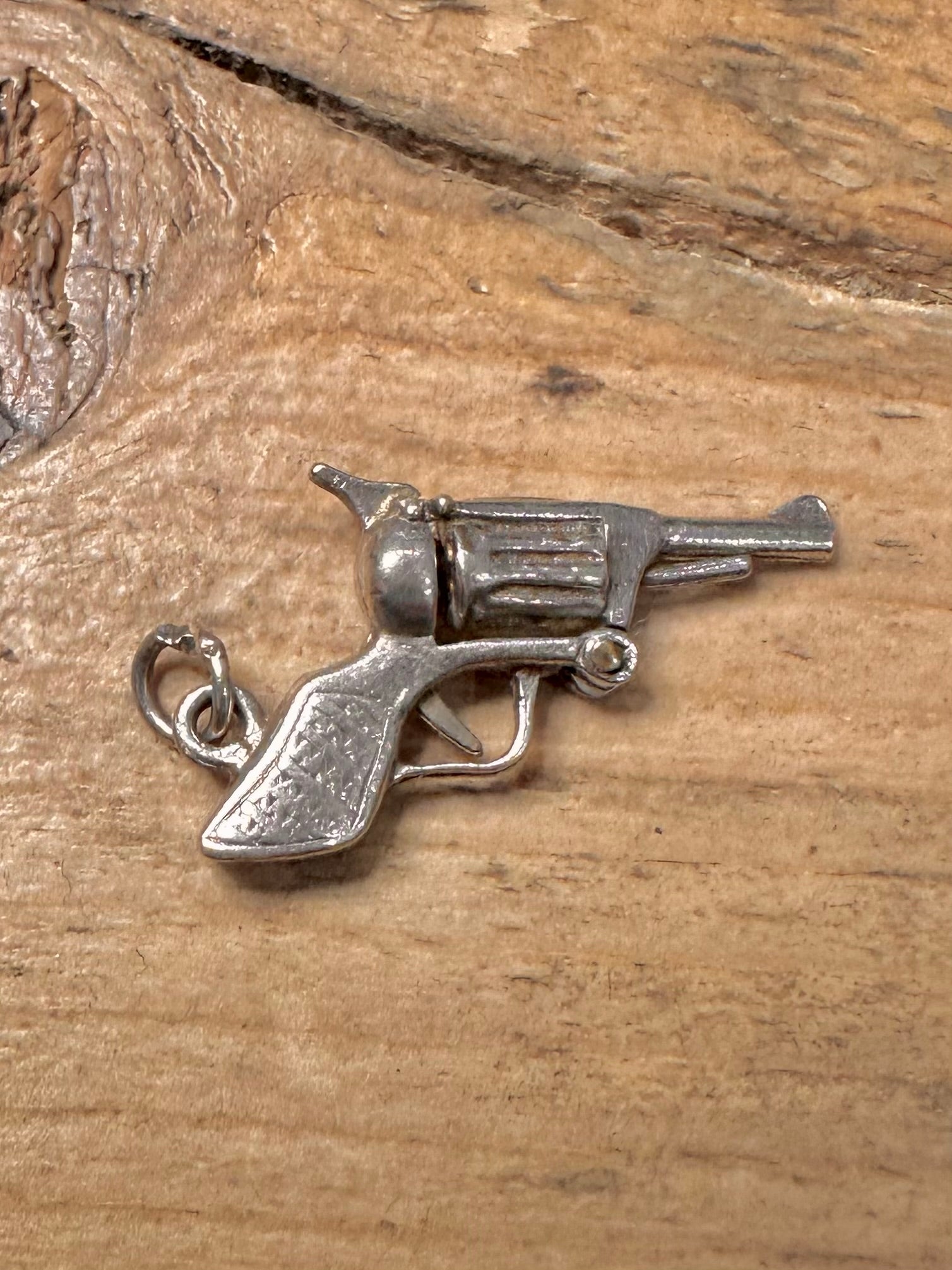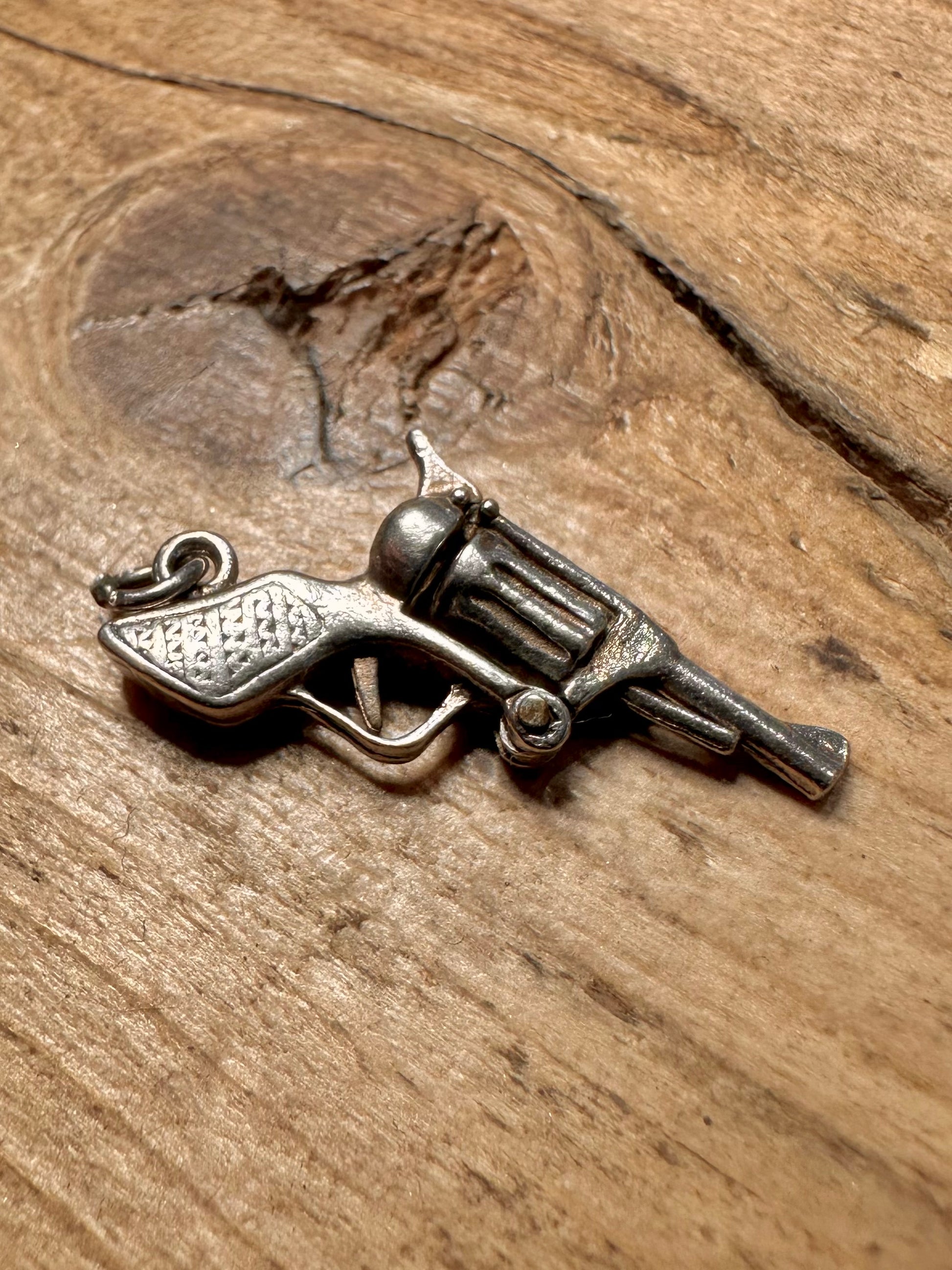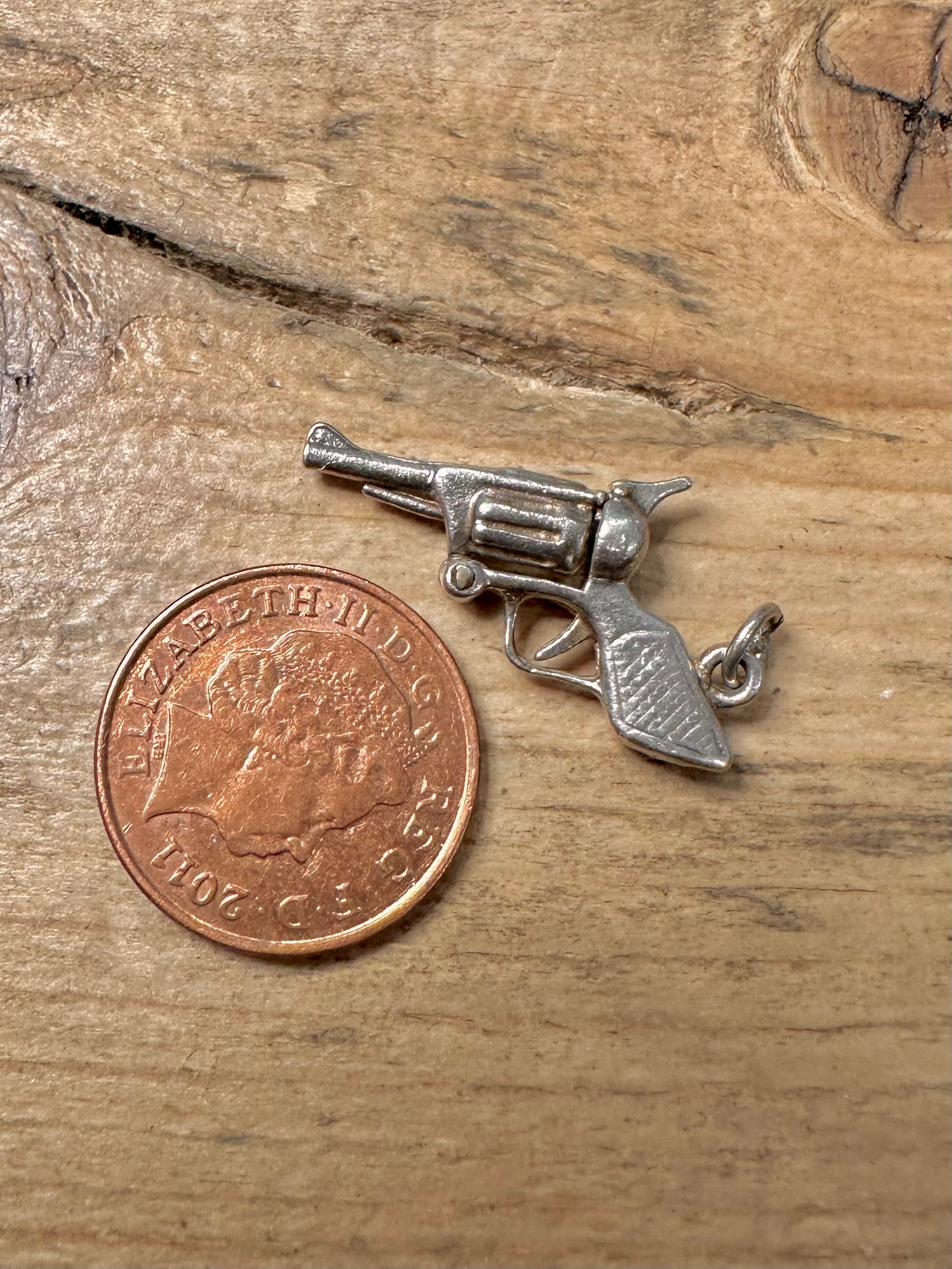 Vintage Articulated Revolver 925 Silver Charm Pendant