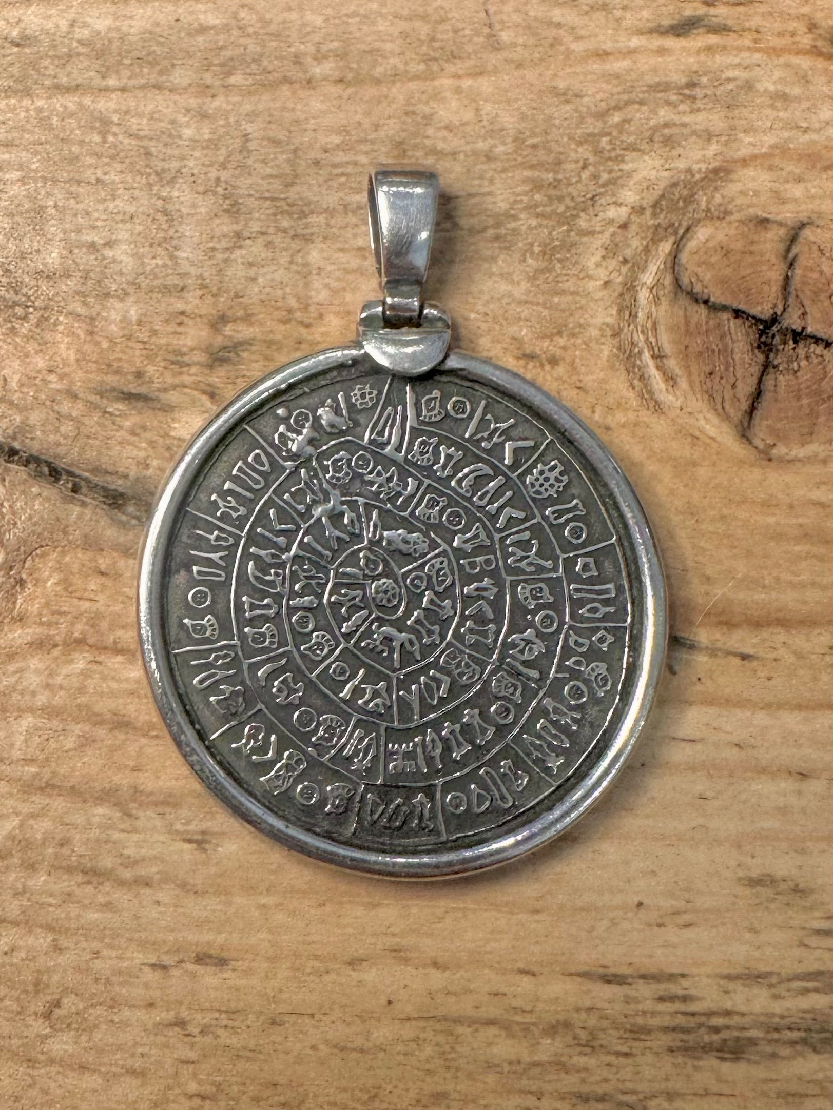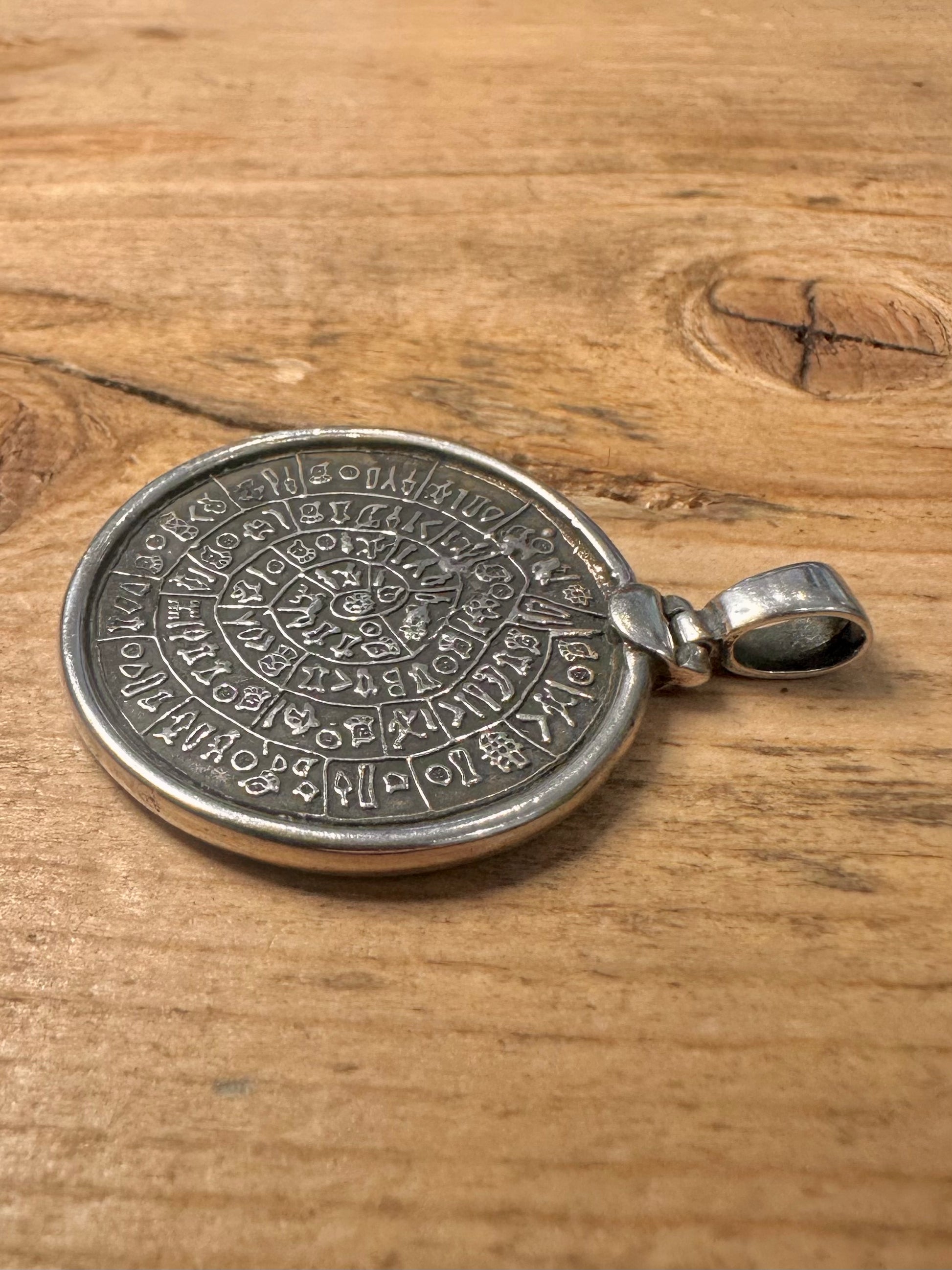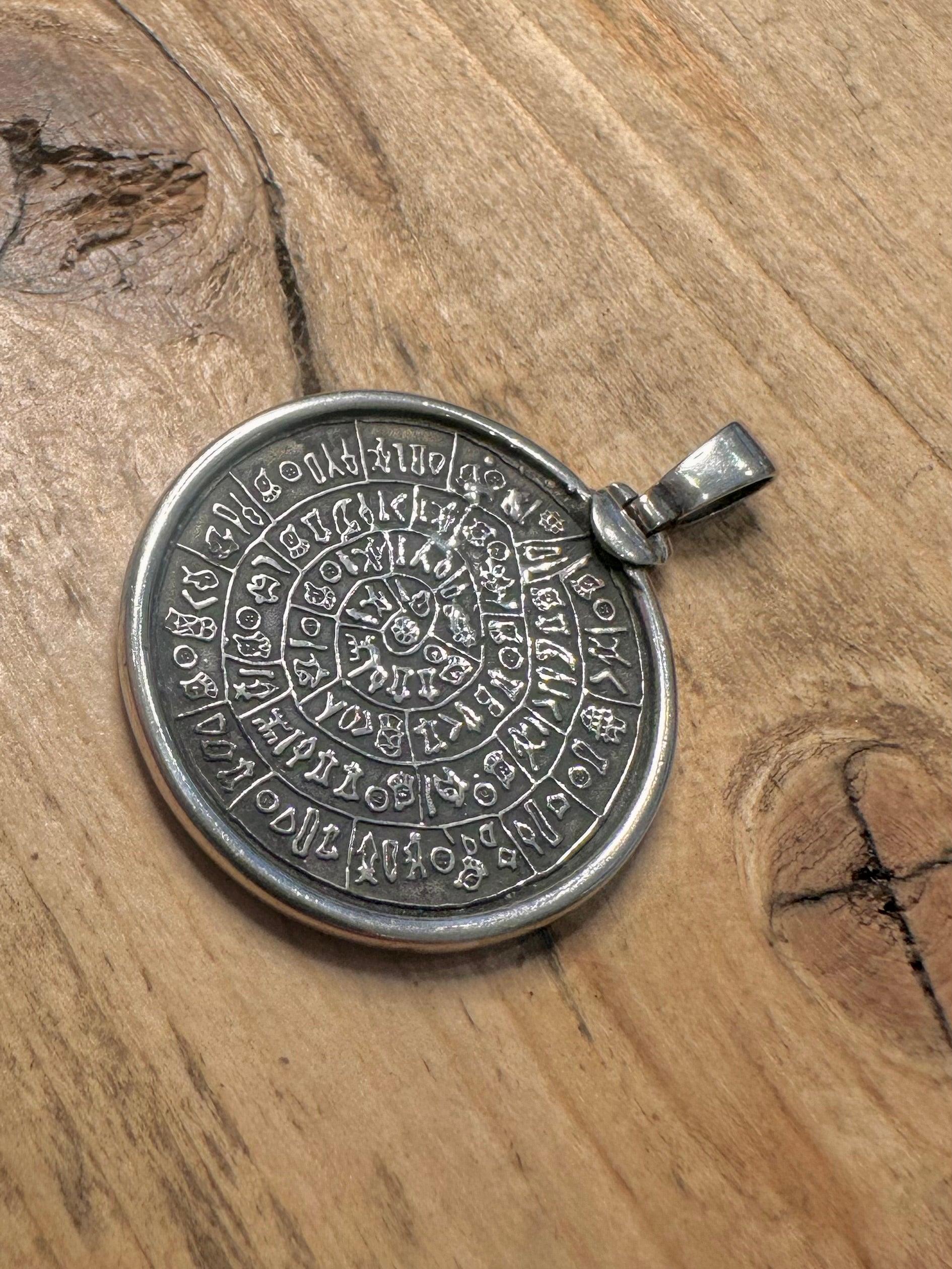 Vintage Aztec Calendar Circle 925 Silver Pendant
