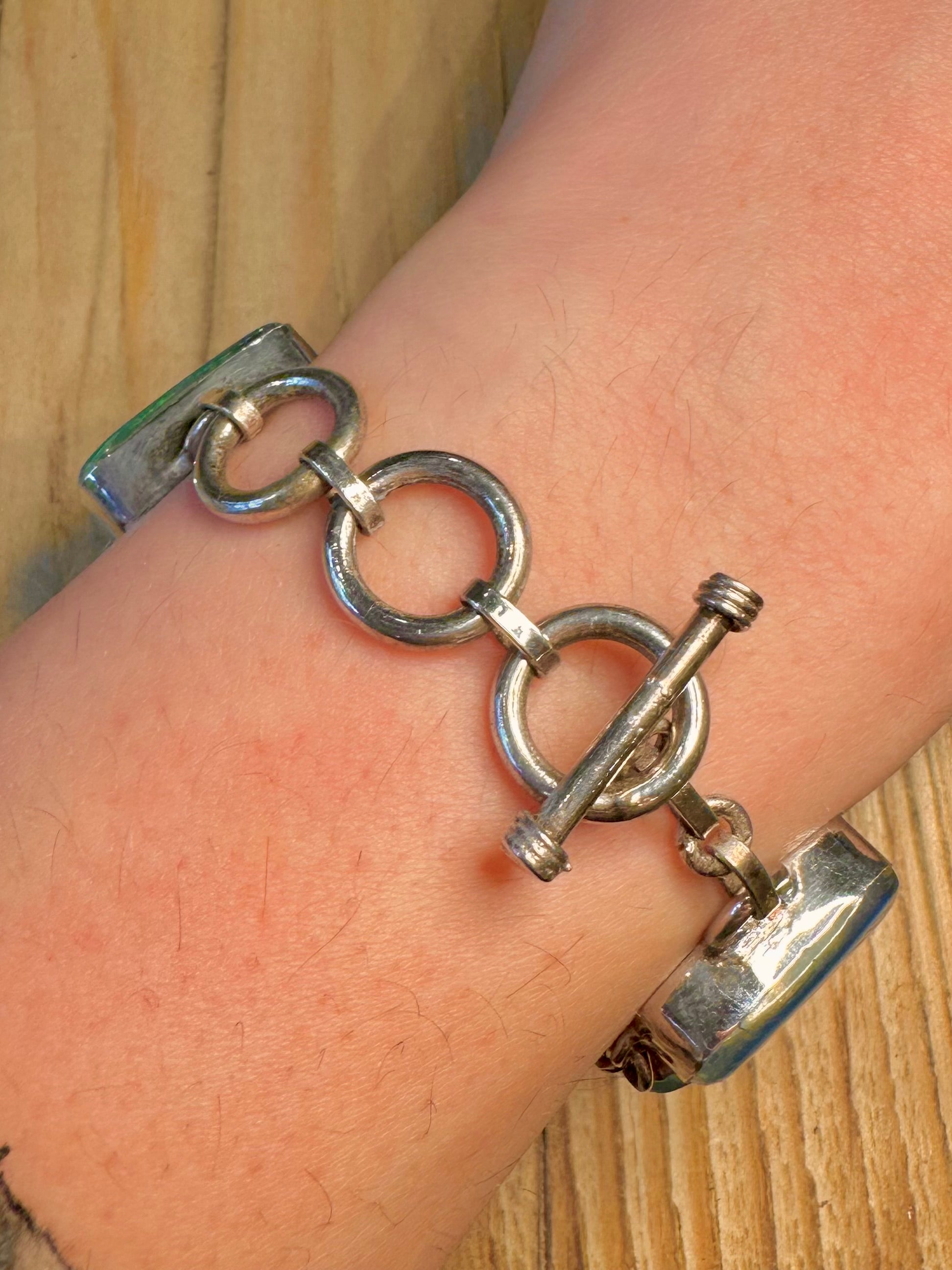 Vintage Blue and Green Reflective 925 Sterling Silver 6 to 7.5 inch Bracelet