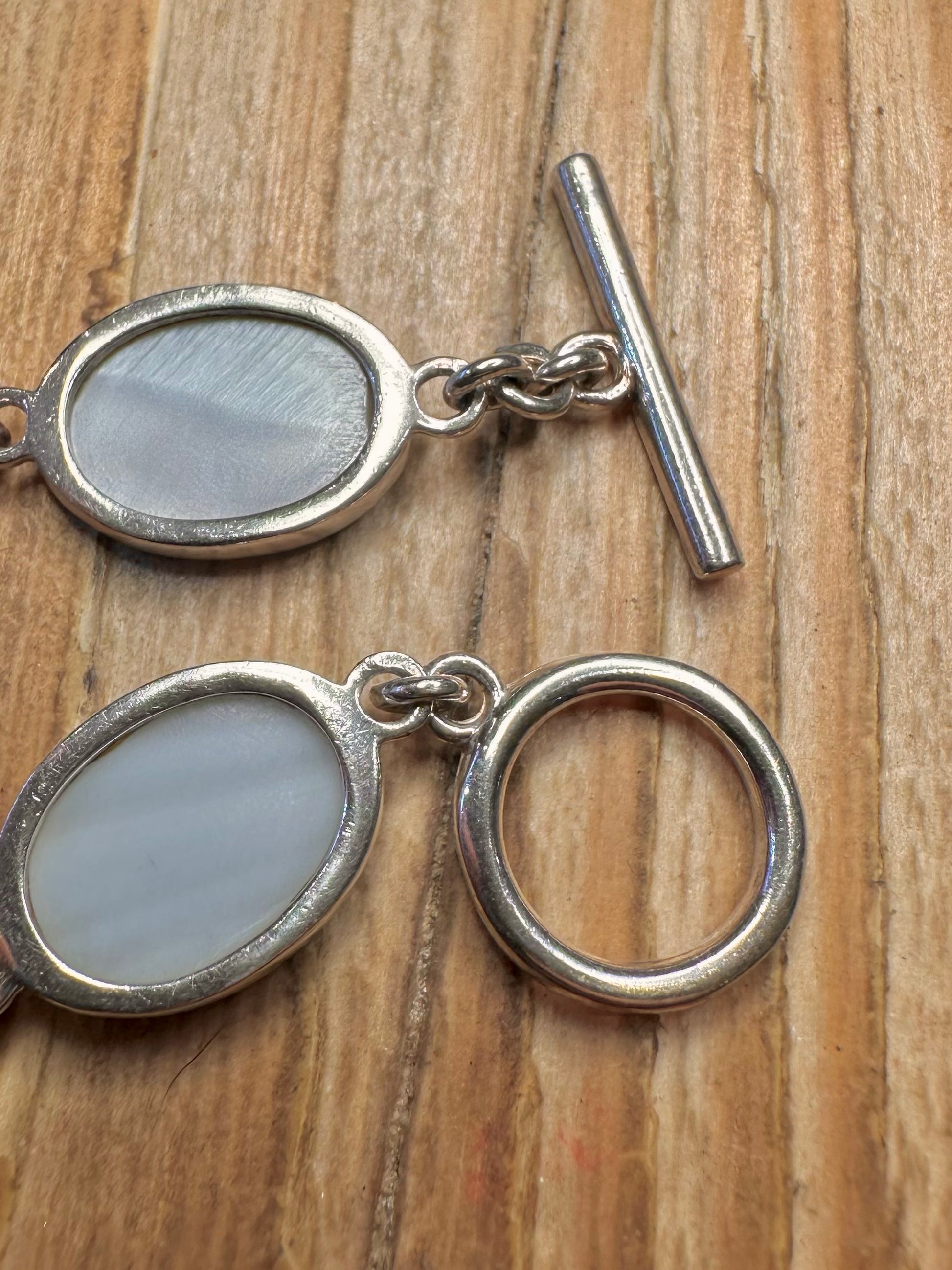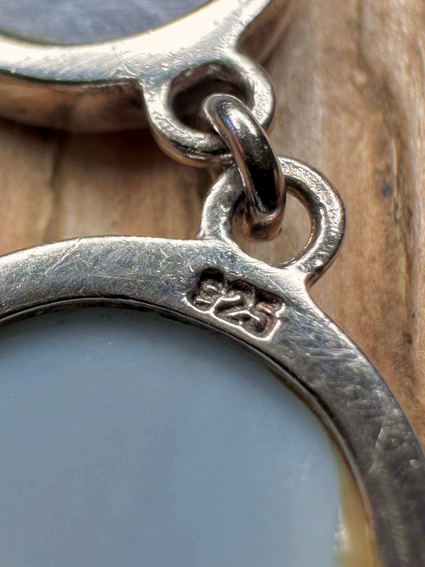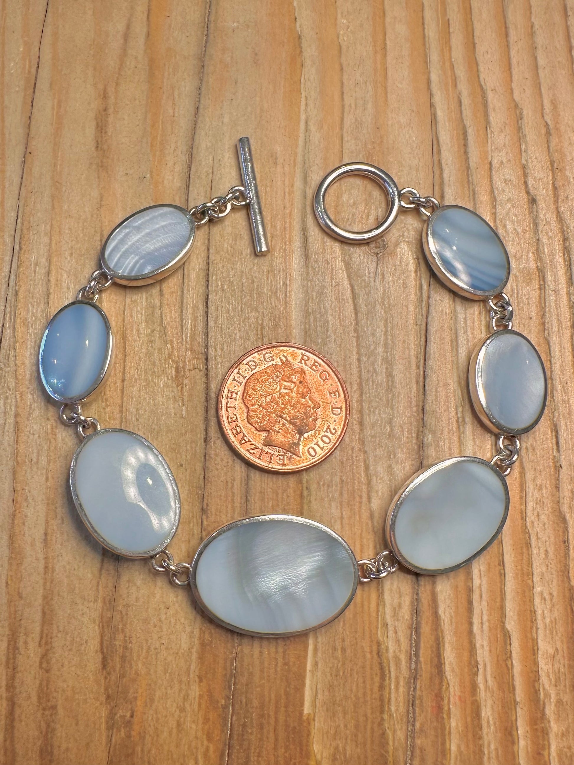 Vintage Blue Mother of Pearl Oval 935 Sterling Silver 7.6 inch Bracelet