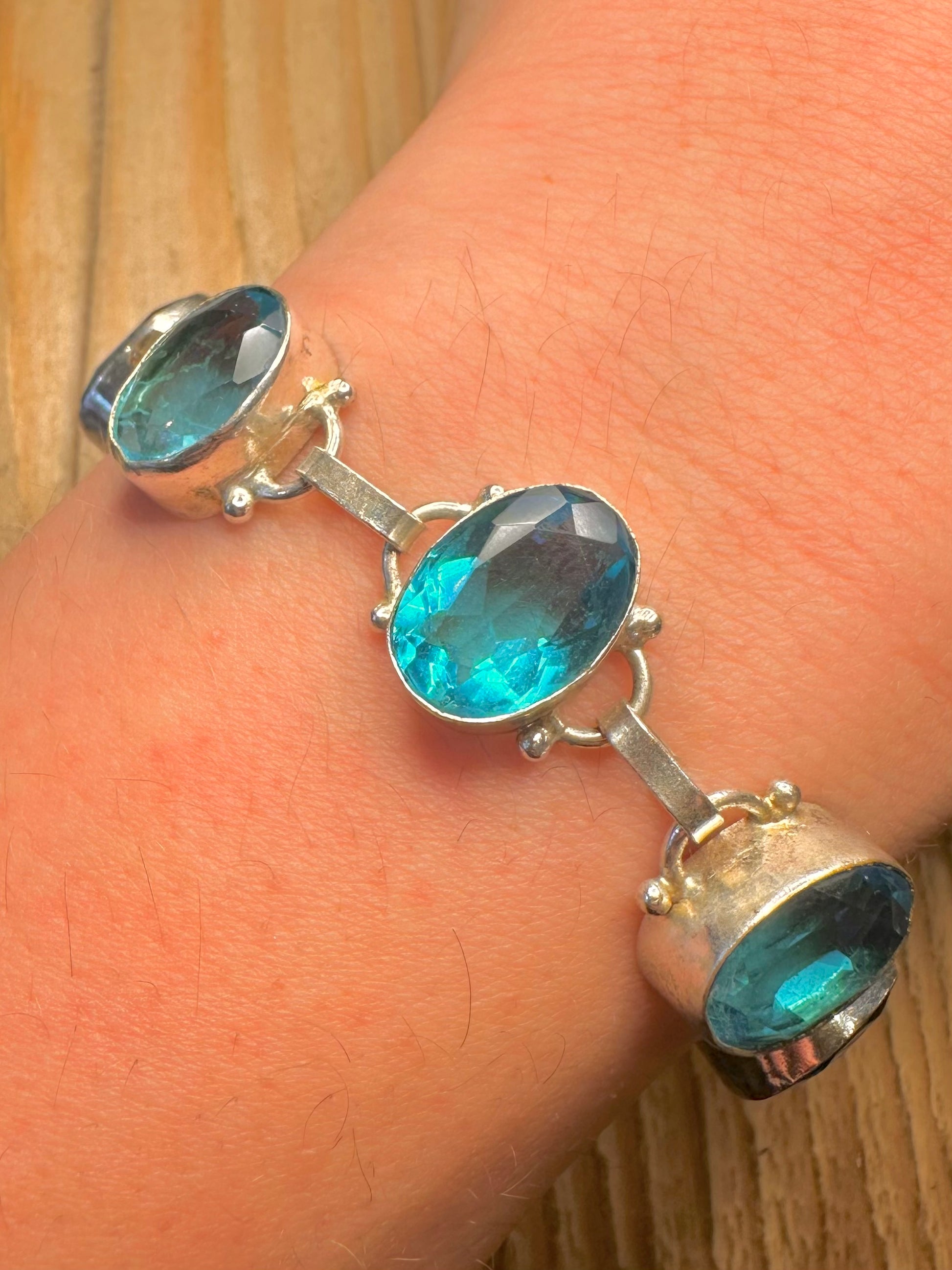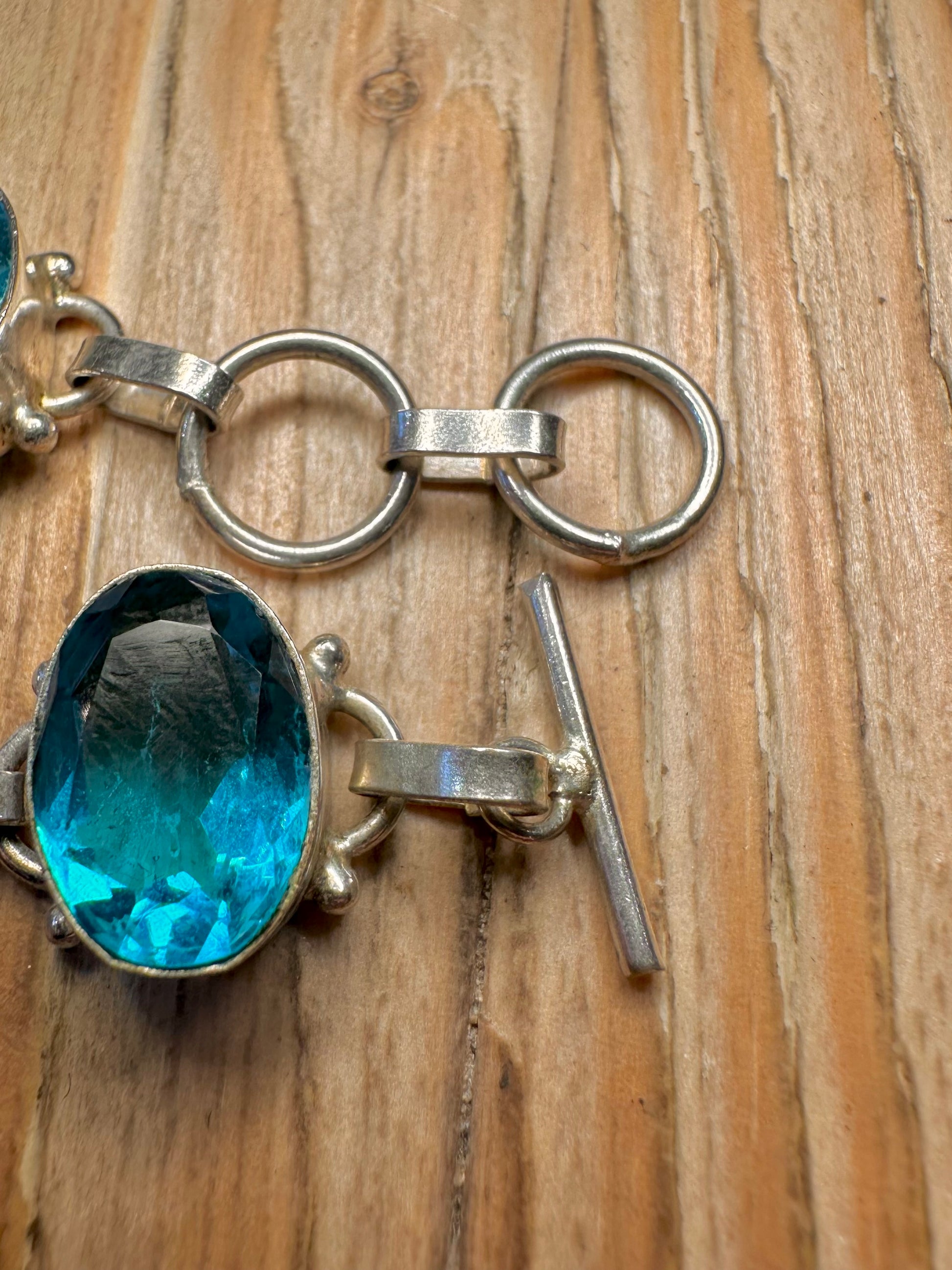 Vintage Blue Topaz Oval Link 925 Sterling Silver 7 to 7.5 inch Bracelet