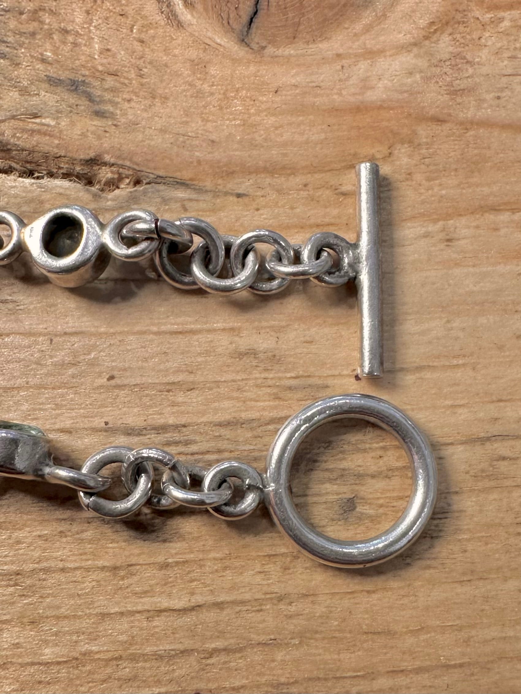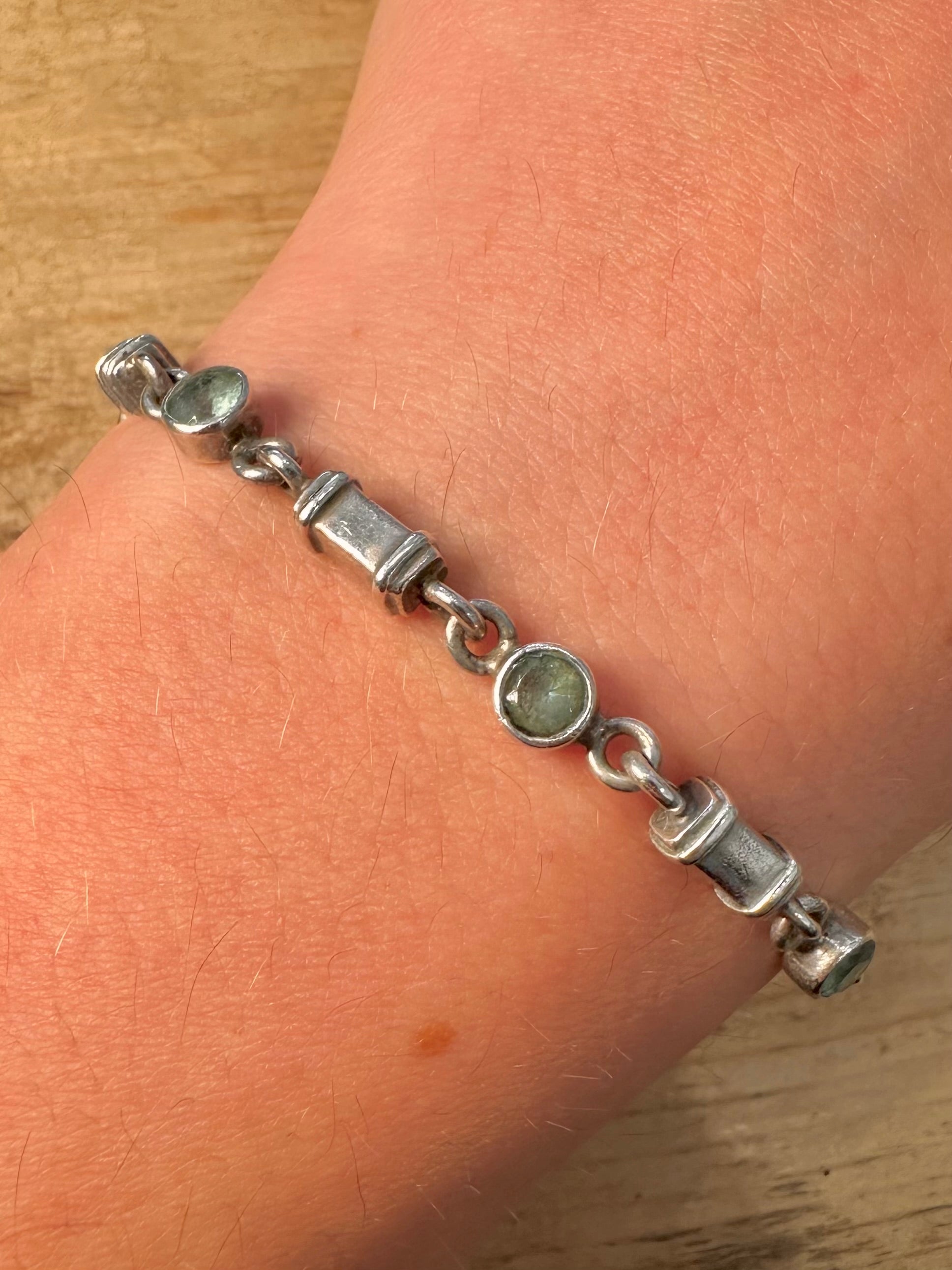 Vintage Blue Topaz Stone Bar Link 925 Silver 7.5 inch Bracelet