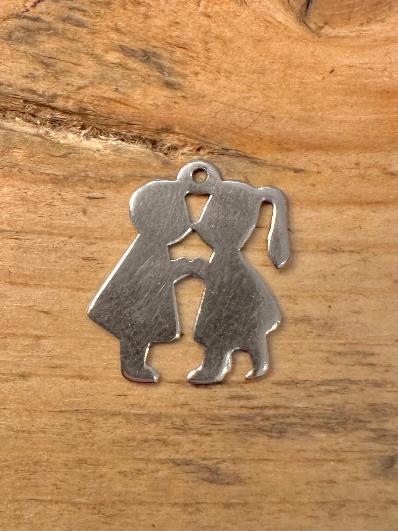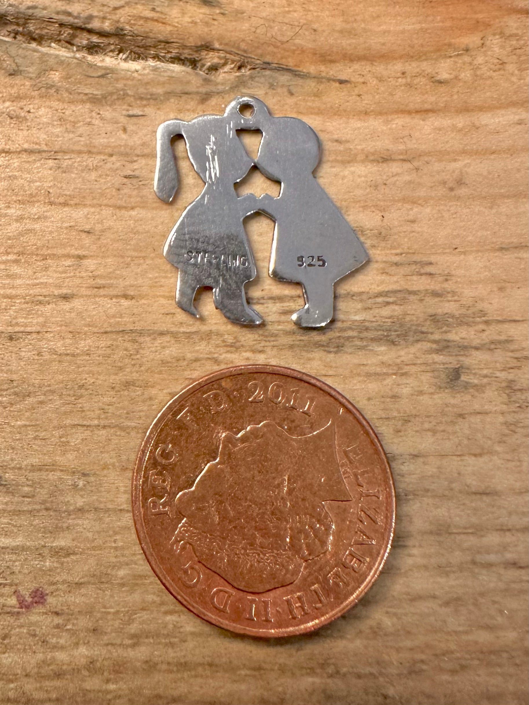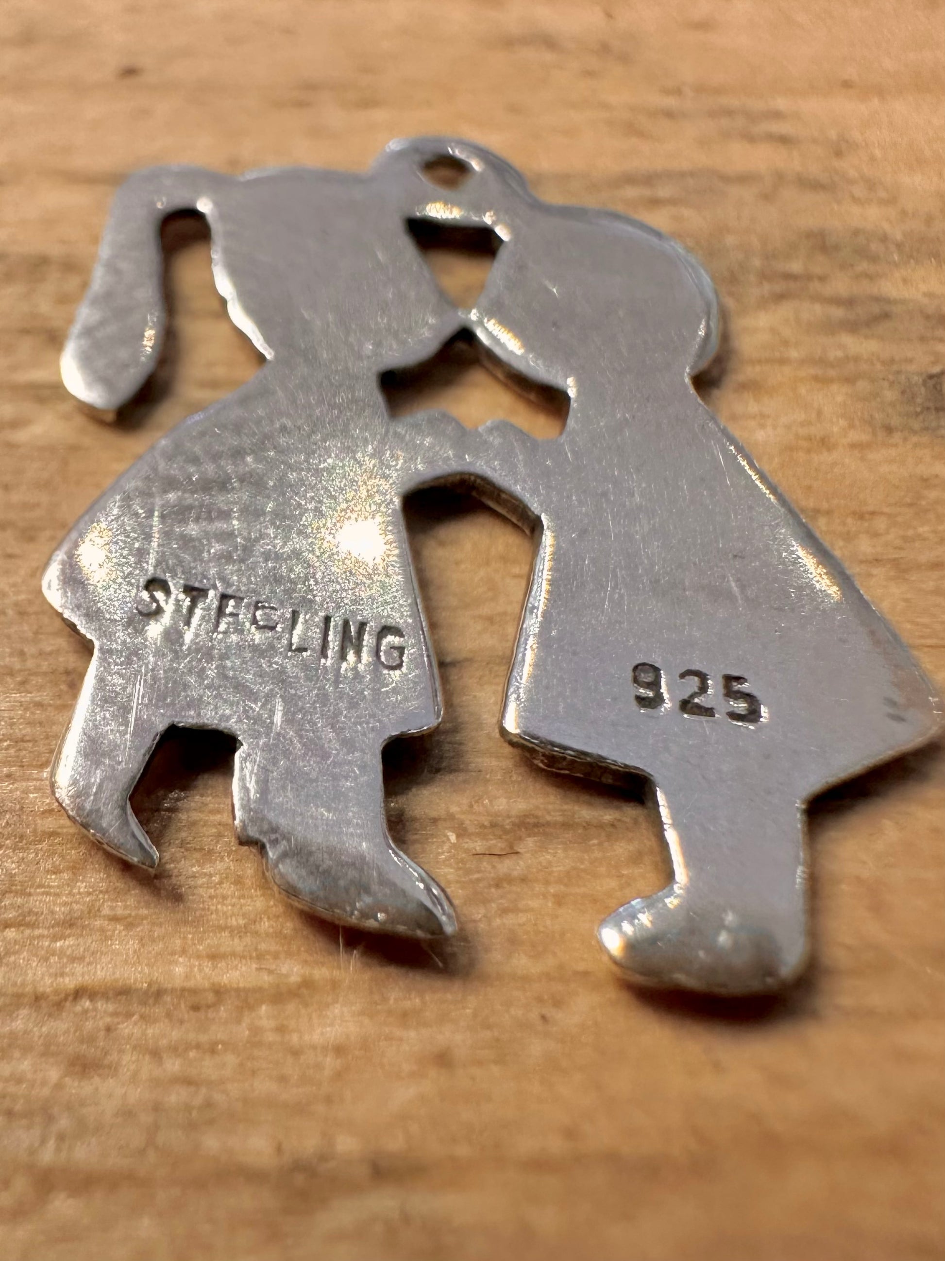 Vintage Boy and Girl Kissing 925 Silver Pendant