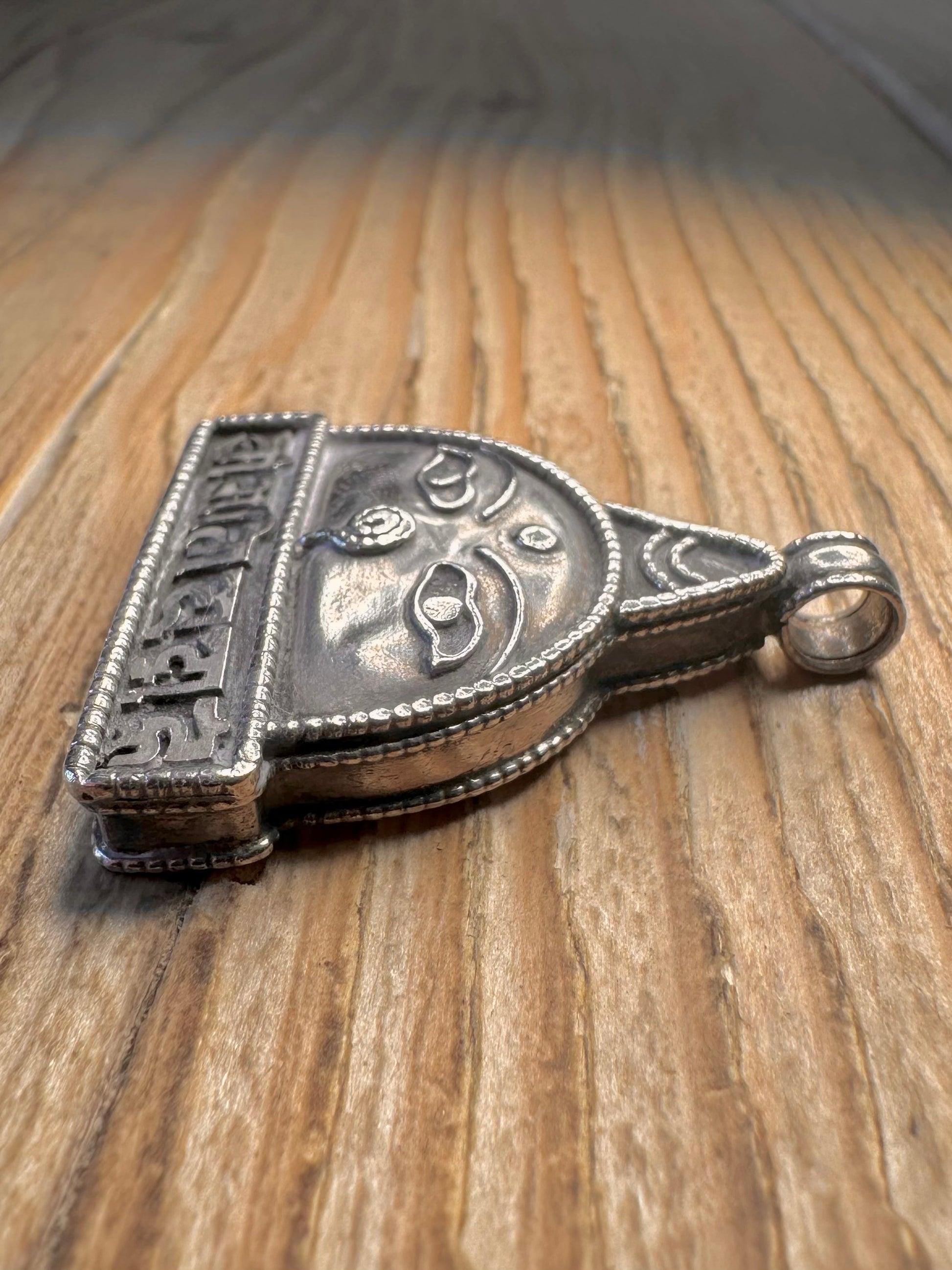 Vintage Buddha Face Triangle 925 Sterling Silver Pendant