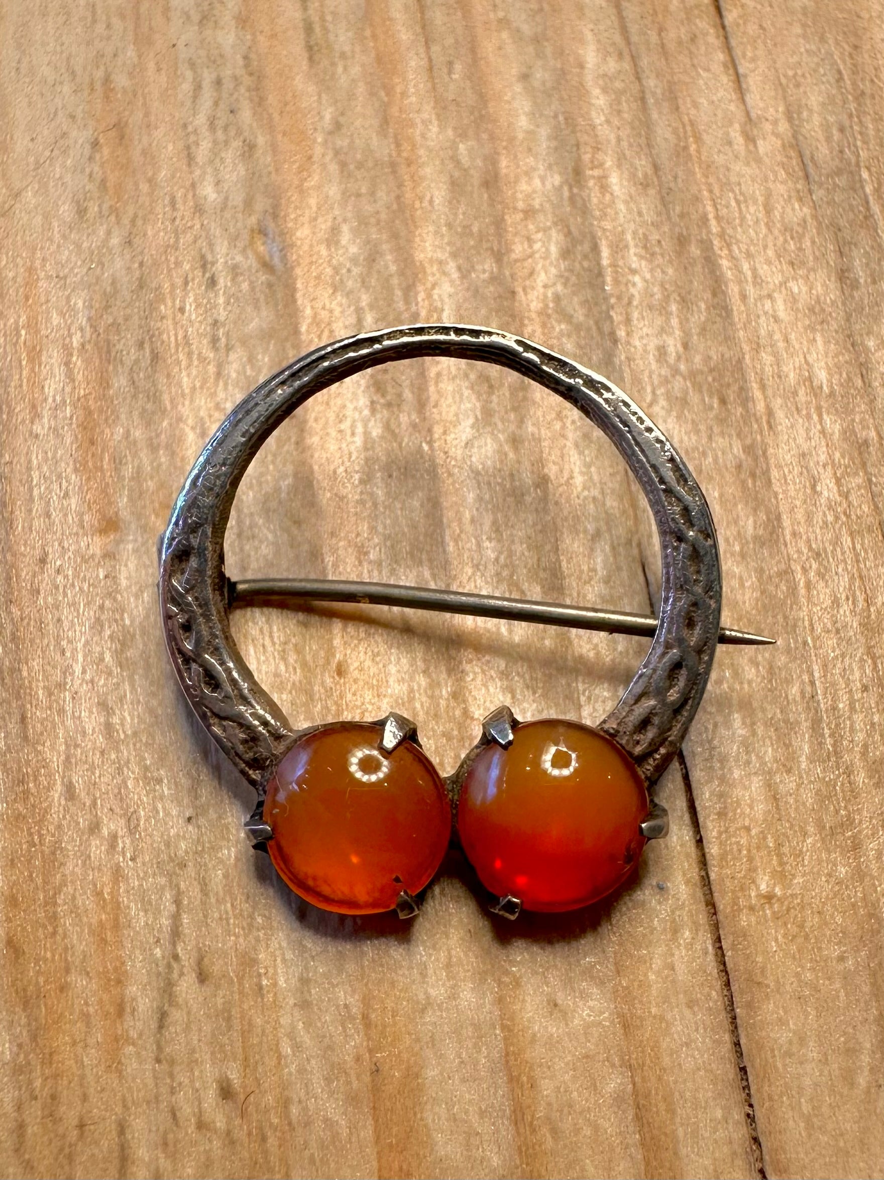 Vintage Celtic Carnelian 925 Sterling Silver Brooch