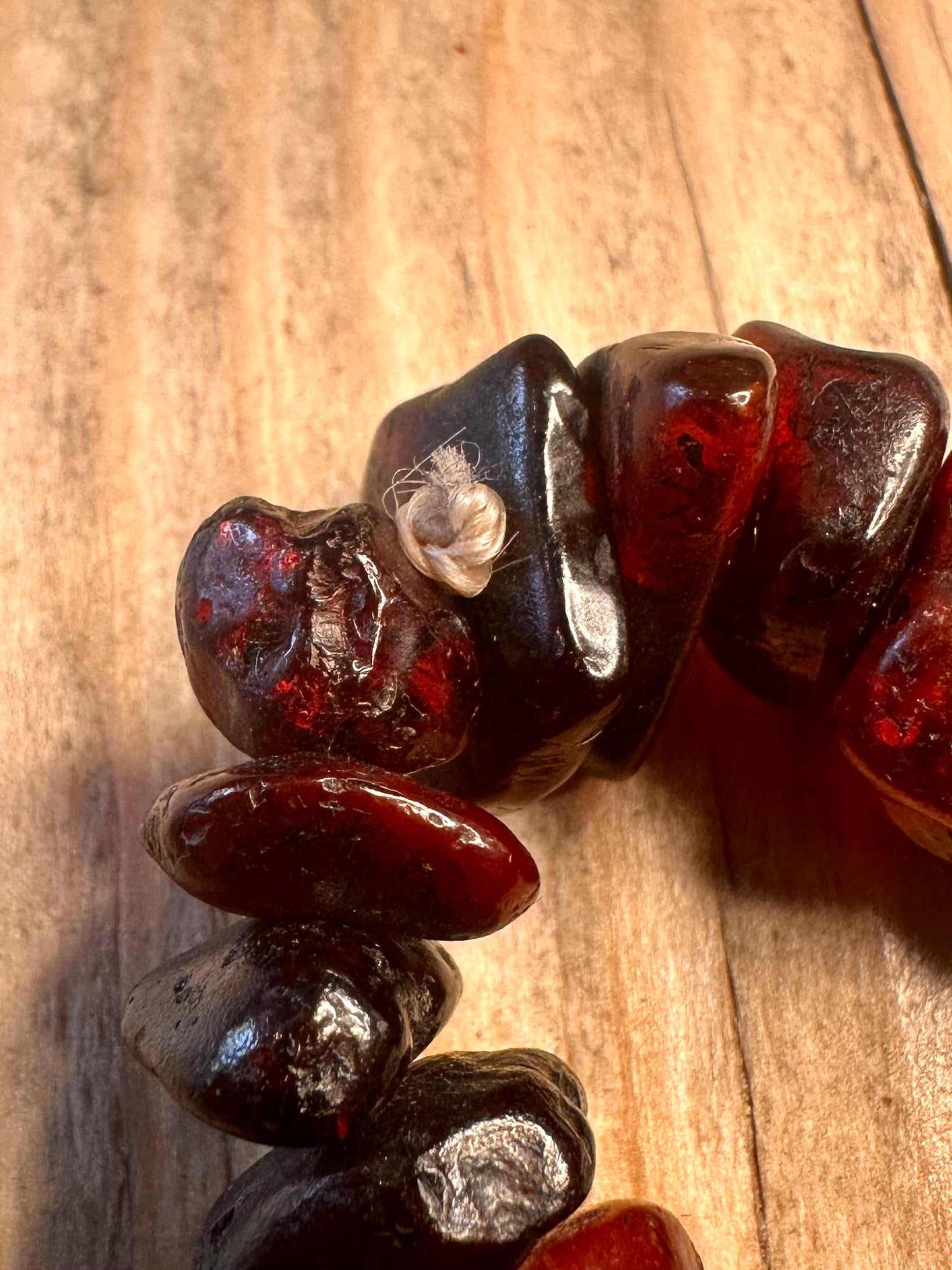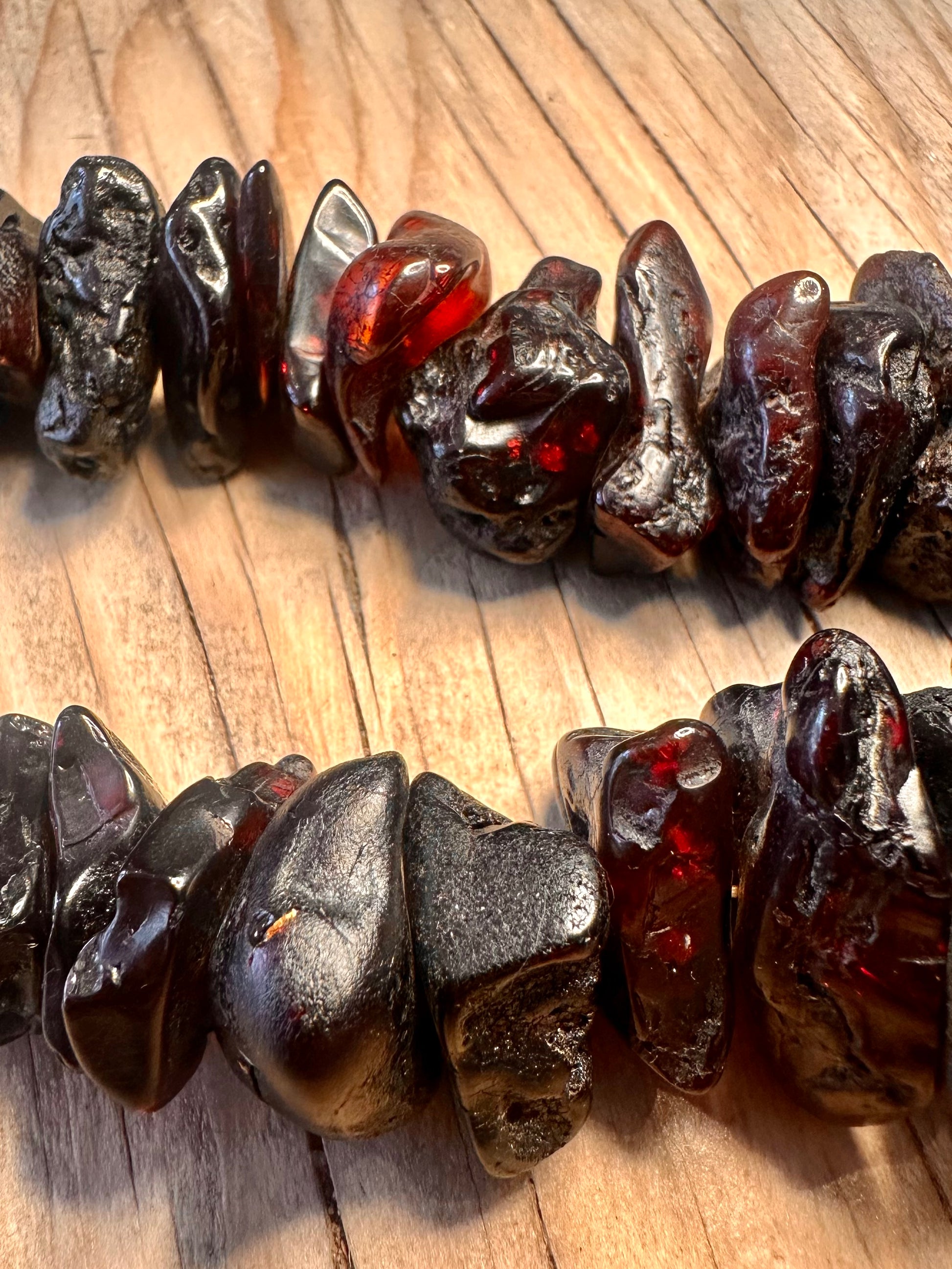 Vintage Chunky Dark Natural Amber String Thread 24 inch Necklace