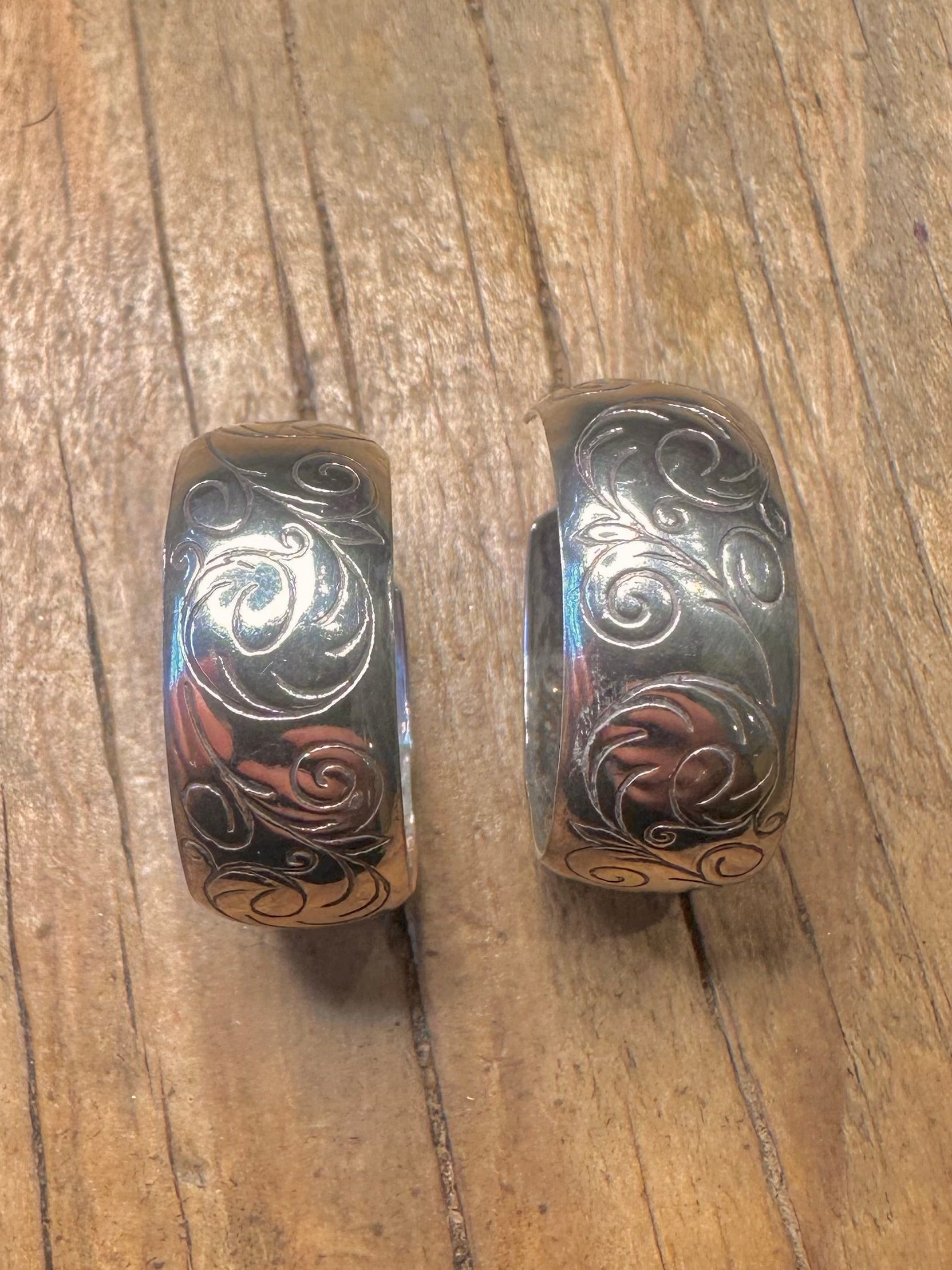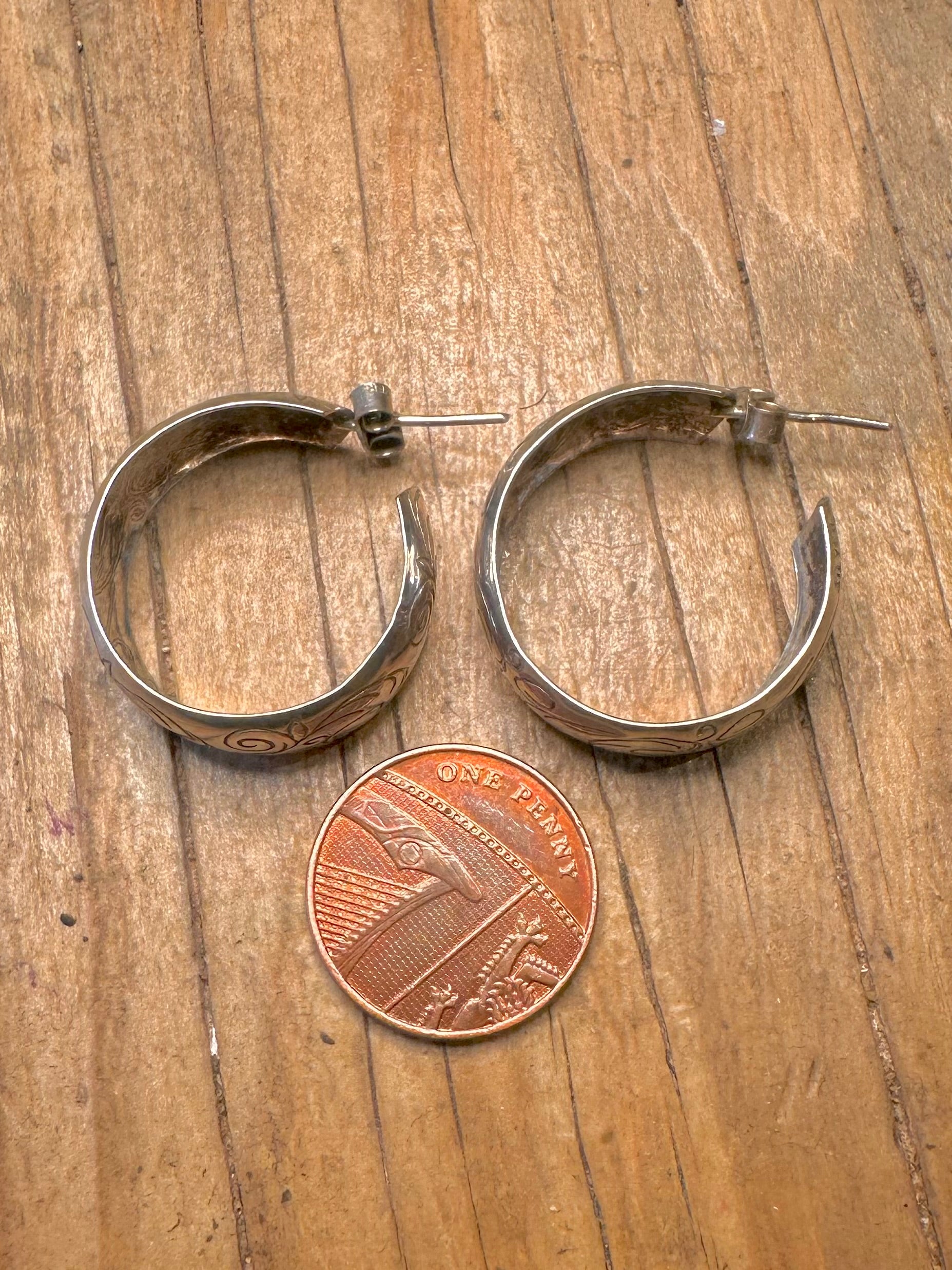 Vintage Chunky Engraved Half Hoops 925 Sterling Silver Earrings